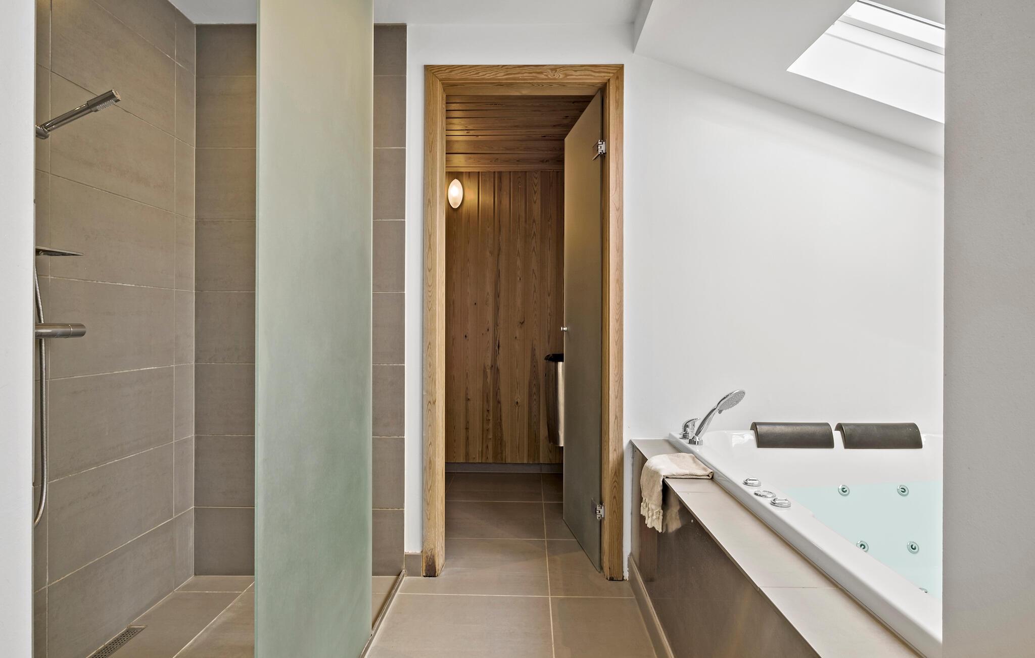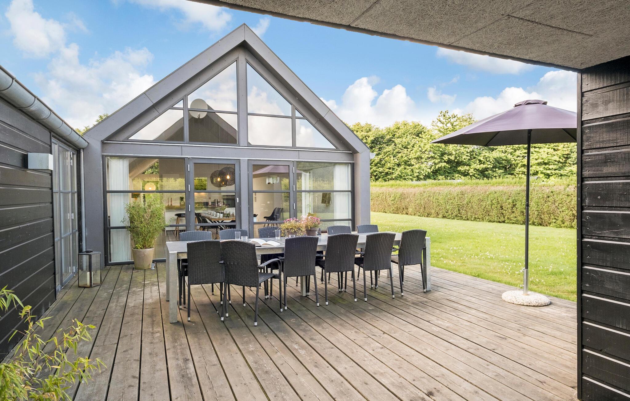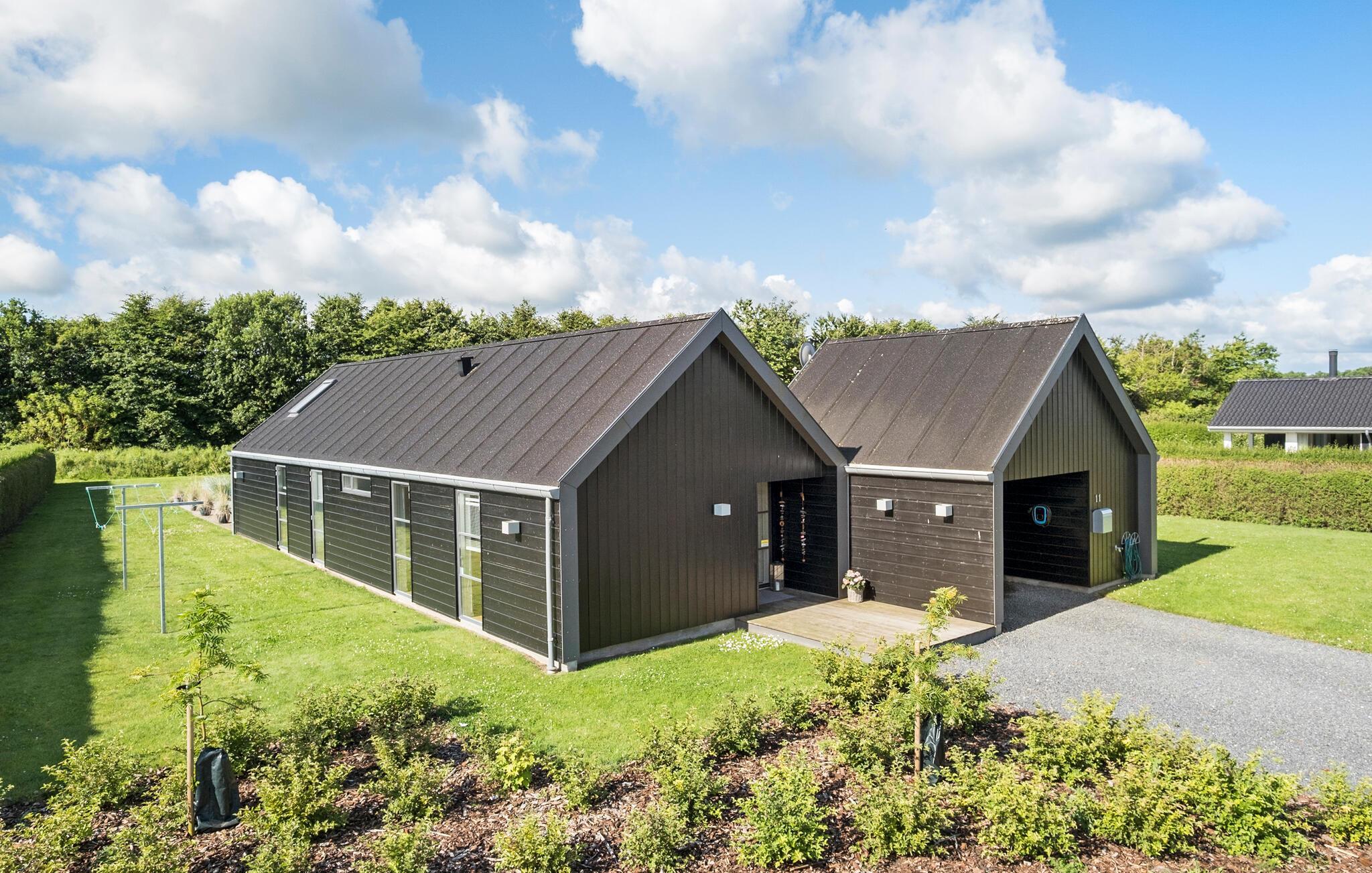 Nyd familieferien i dette rummelige og moderne sommerhus tæt på stranden og med spabad på terrassen.