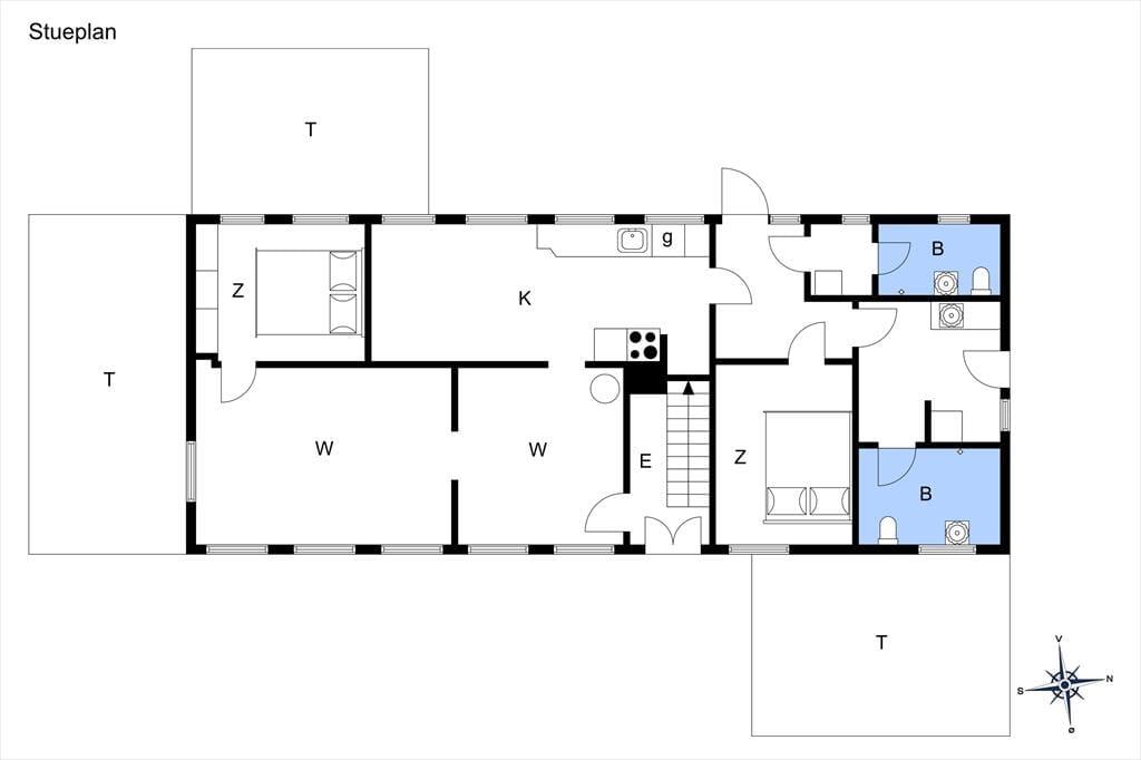 I stueetagen finder du udover køkken og stuer også hele to soveværelser og badeværelser. Soveværelserne er begge indrettet med en dobbeltseng, vinduer ud mod haven og opbevaringsplads. Her kan I altså få en god nats søvn. De to badeværelser, giver en ekstra komfort, når I er op til 8 personer i huset. I bryggerset findes også en ekstra fryser samt køleskab og opbevaringsplads, hvilket hjælper med praktikken på ferien.