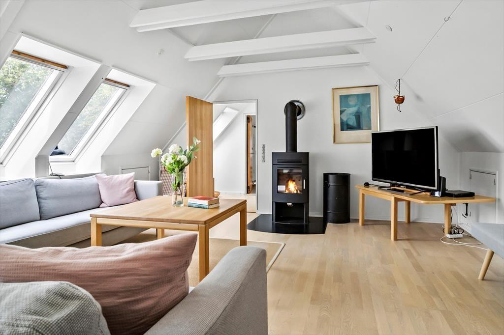 De to stuer giver mulighed for, at I kan hygge jer sammen i de bløde møbler, men du kan også sætte dig i den ene stue foran brændeovnen med en god bog, mens der i den anden stue bliver spillet og leget.