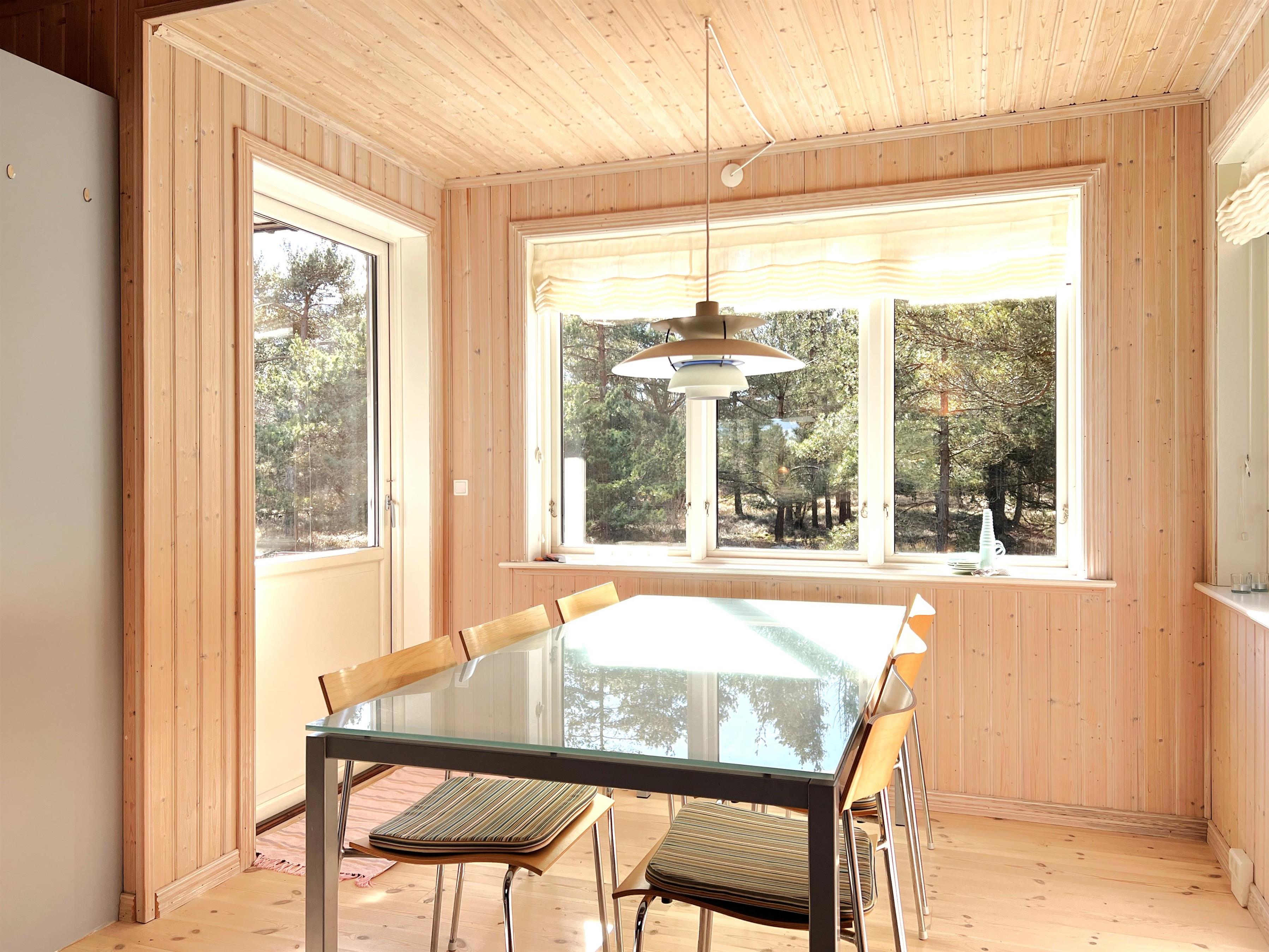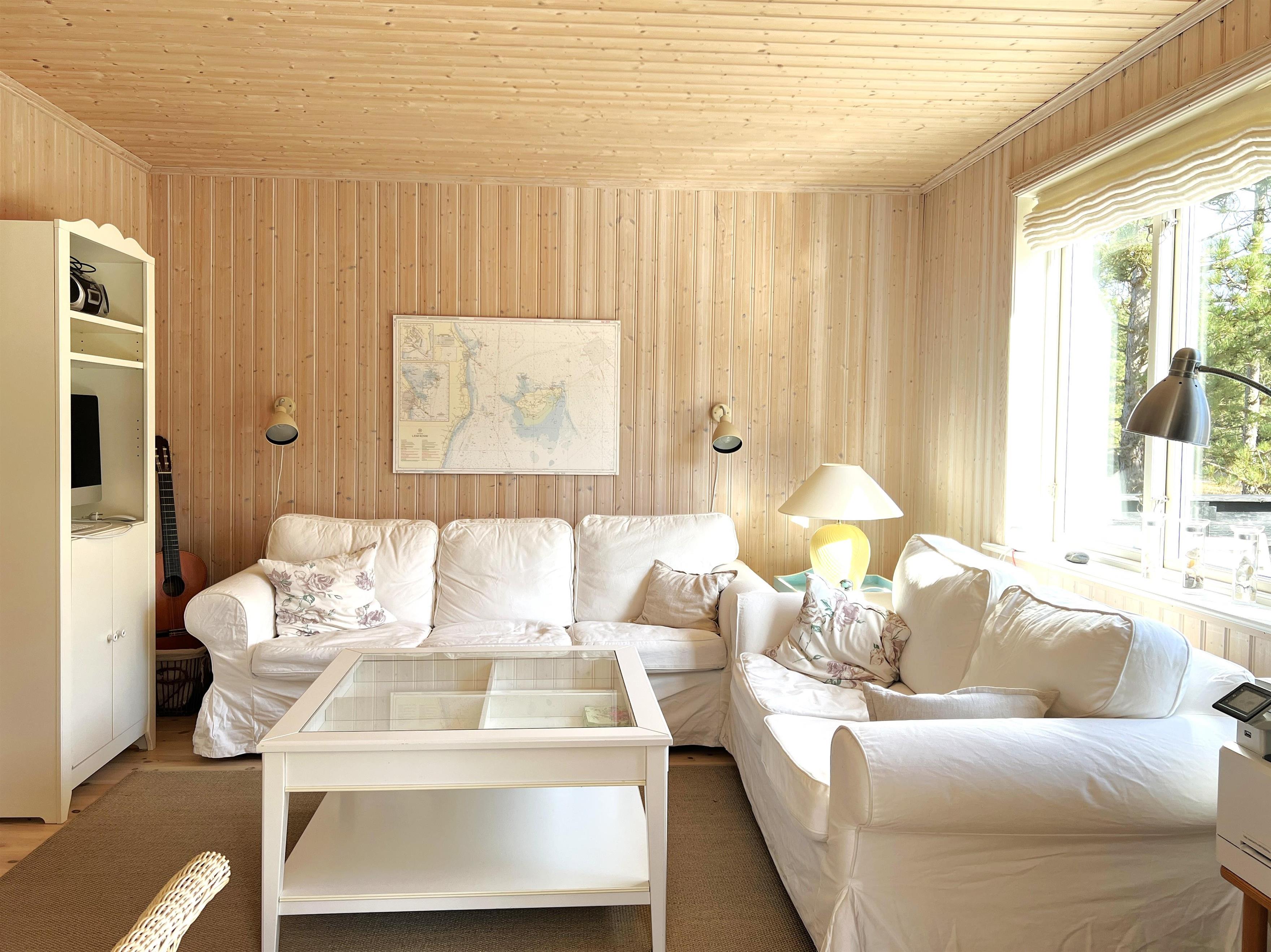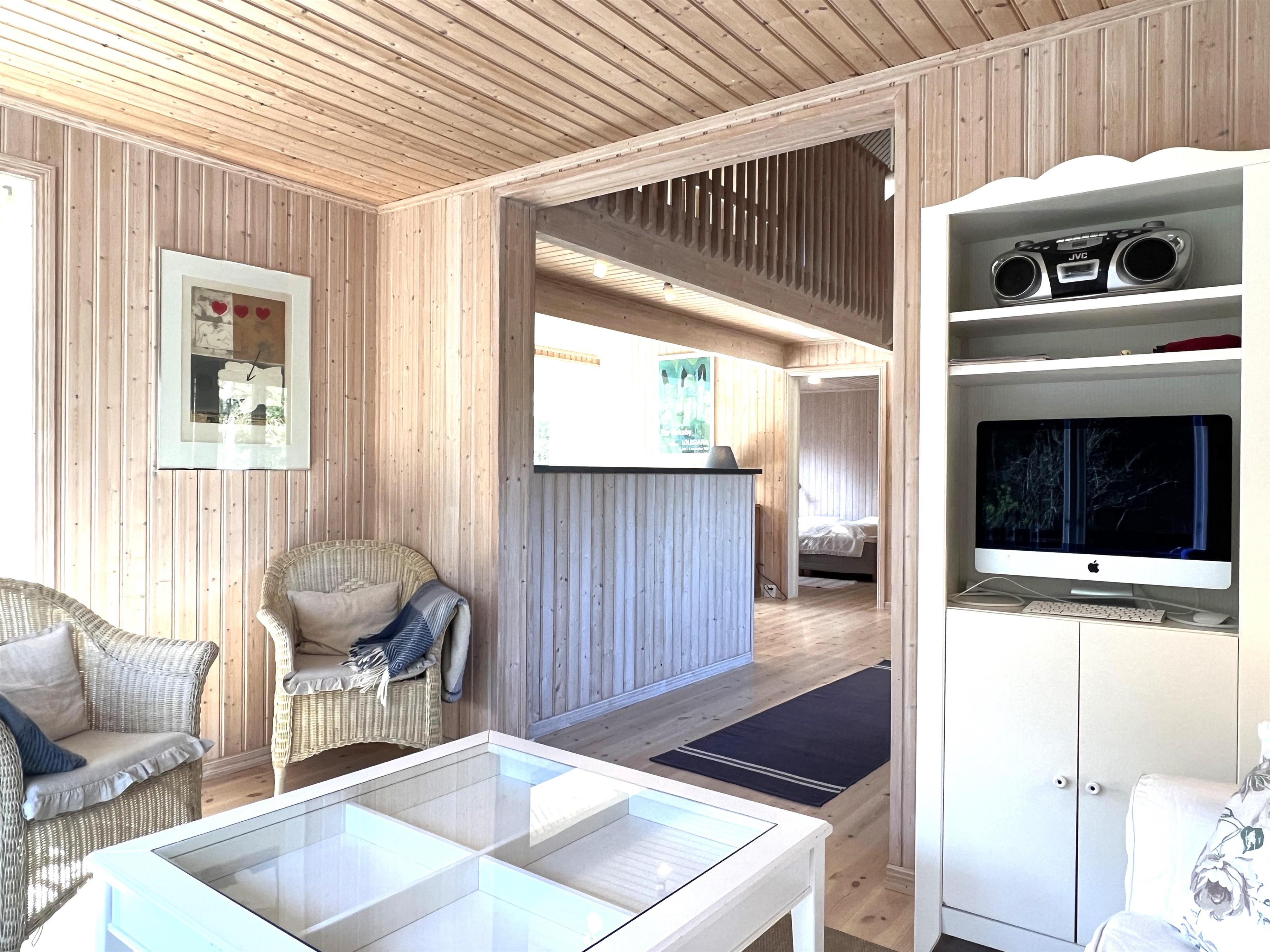Det store hovedhus og anneks er forbundet af træterrasse, så man let kan bevæge sig mellem de to boliger, der indbyder til det skønneste ferieophold - også for to familier. Hovedhuset er bygget med loft til kip og fremstår lyst og indbydende. Fint og veludstyret køkken i åben forbindelse med spisestue med udgang til den imponerende store terrasse. Huset har en fin stue med behagelige møbler og TV, hvorfra der også er udgang til træterrassen. Desuden er der et soveværelse med dobbeltseng og et flot badeværelse med sauna. På 1. salen findes yderligere to fine soveværelser med henholdsvis dobbeltseng og to enkeltsenge. Alle værelser er meget rummelige og med god opbevaringsplads. I annekset er der et stort, flot soveværelse med dobbeltseng og et fint badeværelse med brus . Annekset har et smukt lysindfald fra det dobbelte vinduesparti med terrassedør. Huset har stærkt fibernet indlagt og er generelt meget veludstyret. Rundt huset er der flere dejlige solkroge og mange flotte havemøbler til rådighed. Her kan husets grill også benyttes. Sammen med udsigten over den smukke grund og den fredfyldte beliggenhed, fornemmer man virkelig den særlige Læsø-ro.