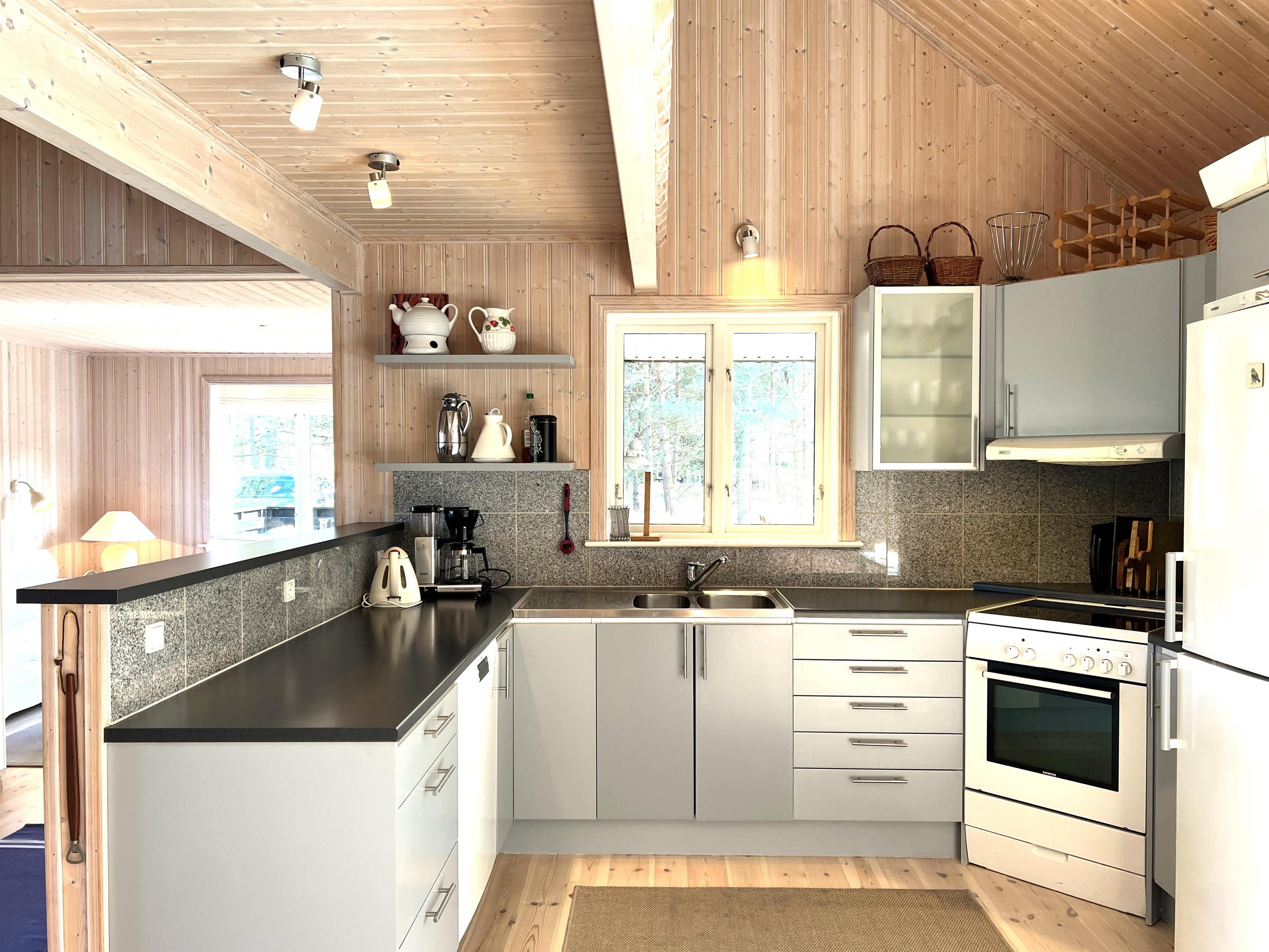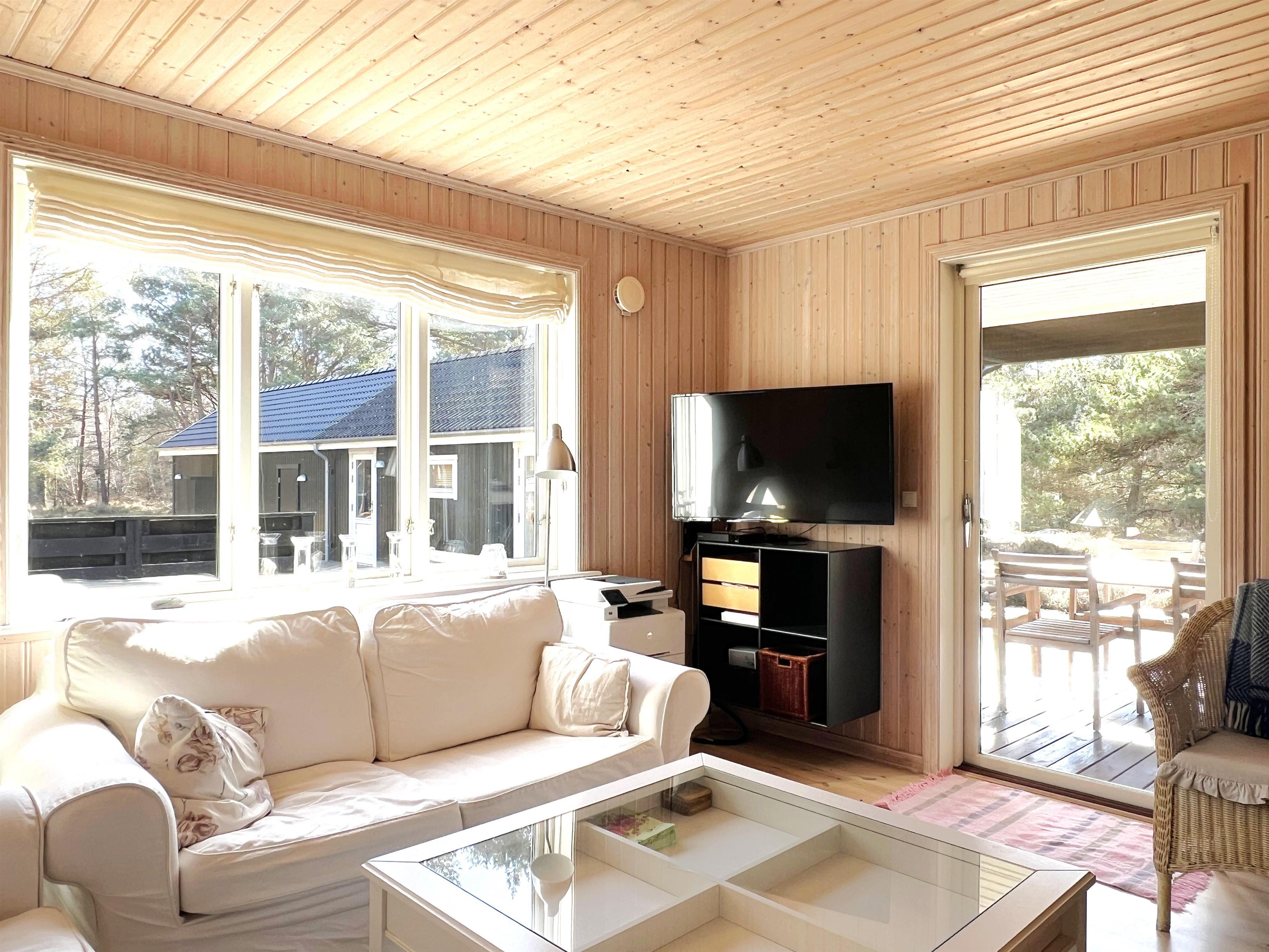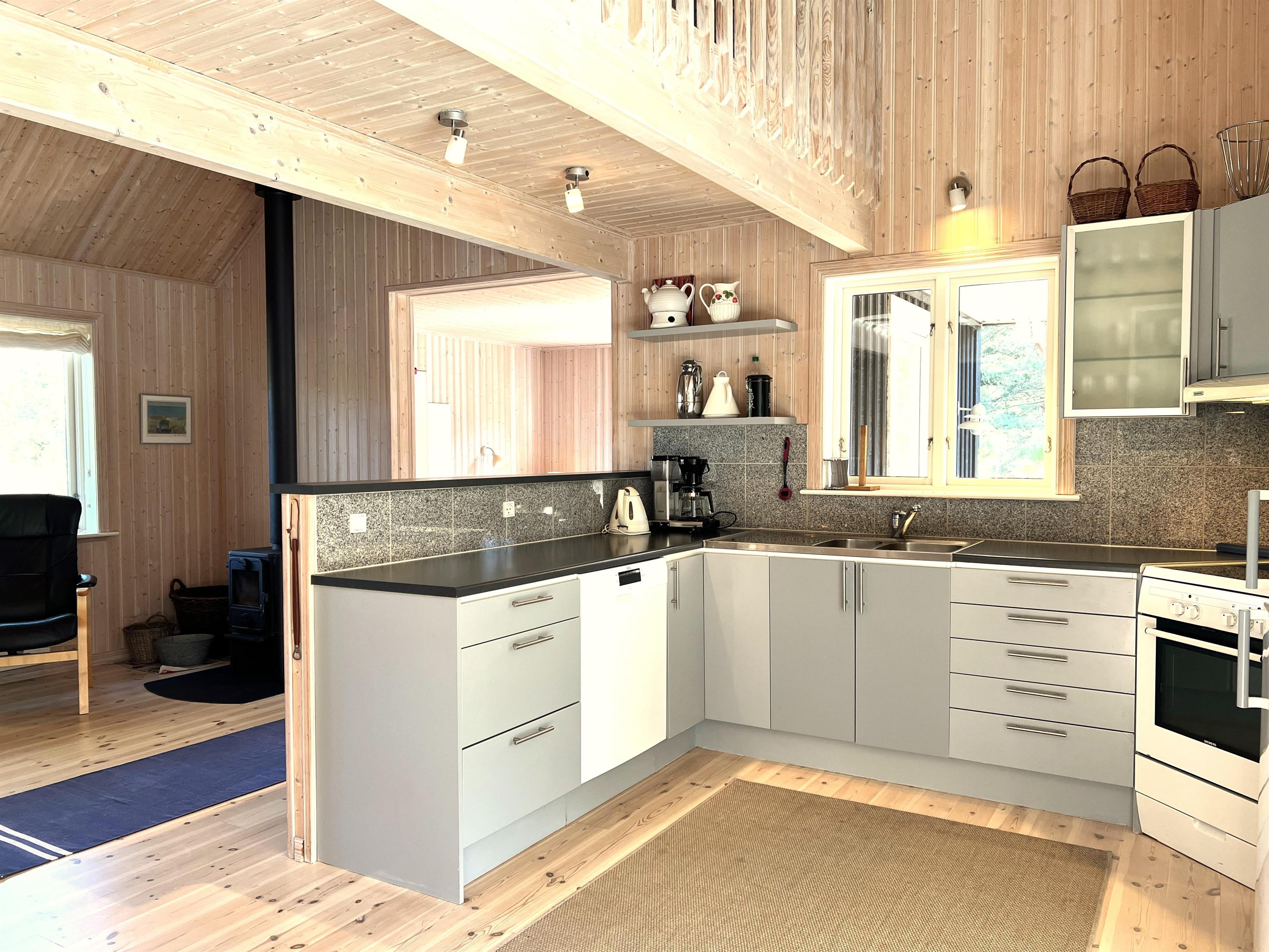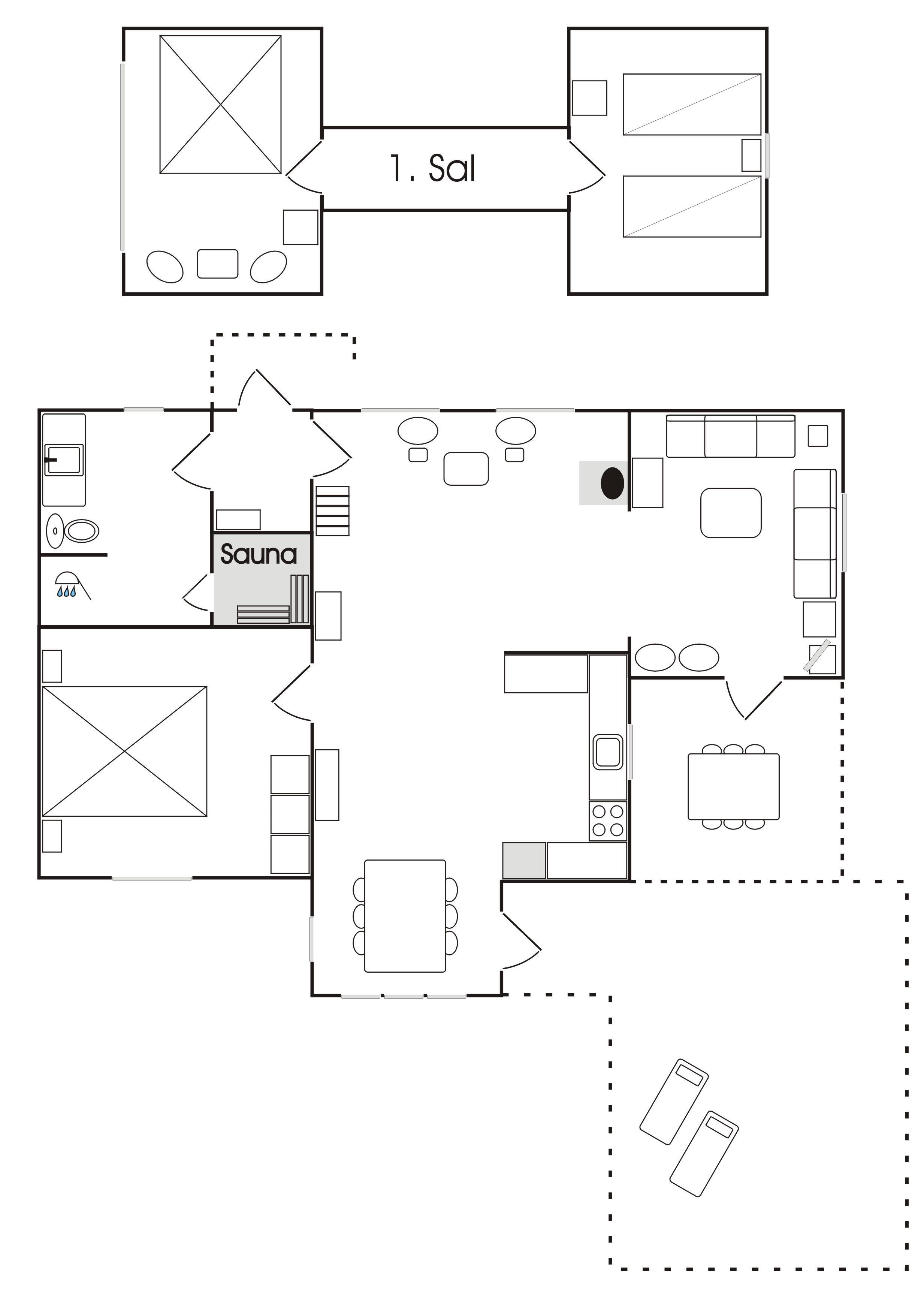 Det store hovedhus og anneks er forbundet af træterrasse, så man let kan bevæge sig mellem de to boliger, der indbyder til det skønneste ferieophold - også for to familier. Hovedhuset er bygget med loft til kip og fremstår lyst og indbydende. Fint og veludstyret køkken i åben forbindelse med spisestue med udgang til den imponerende store terrasse. Huset har en fin stue med behagelige møbler og TV, hvorfra der også er udgang til træterrassen. Desuden er der et soveværelse med dobbeltseng og et flot badeværelse med sauna. På 1. salen findes yderligere to fine soveværelser med henholdsvis dobbeltseng og to enkeltsenge. Alle værelser er meget rummelige og med god opbevaringsplads. I annekset er der et stort, flot soveværelse med dobbeltseng og et fint badeværelse med brus . Annekset har et smukt lysindfald fra det dobbelte vinduesparti med terrassedør. Huset har stærkt fibernet indlagt og er generelt meget veludstyret. Rundt huset er der flere dejlige solkroge og mange flotte havemøbler til rådighed. Her kan husets grill også benyttes. Sammen med udsigten over den smukke grund og den fredfyldte beliggenhed, fornemmer man virkelig den særlige Læsø-ro.