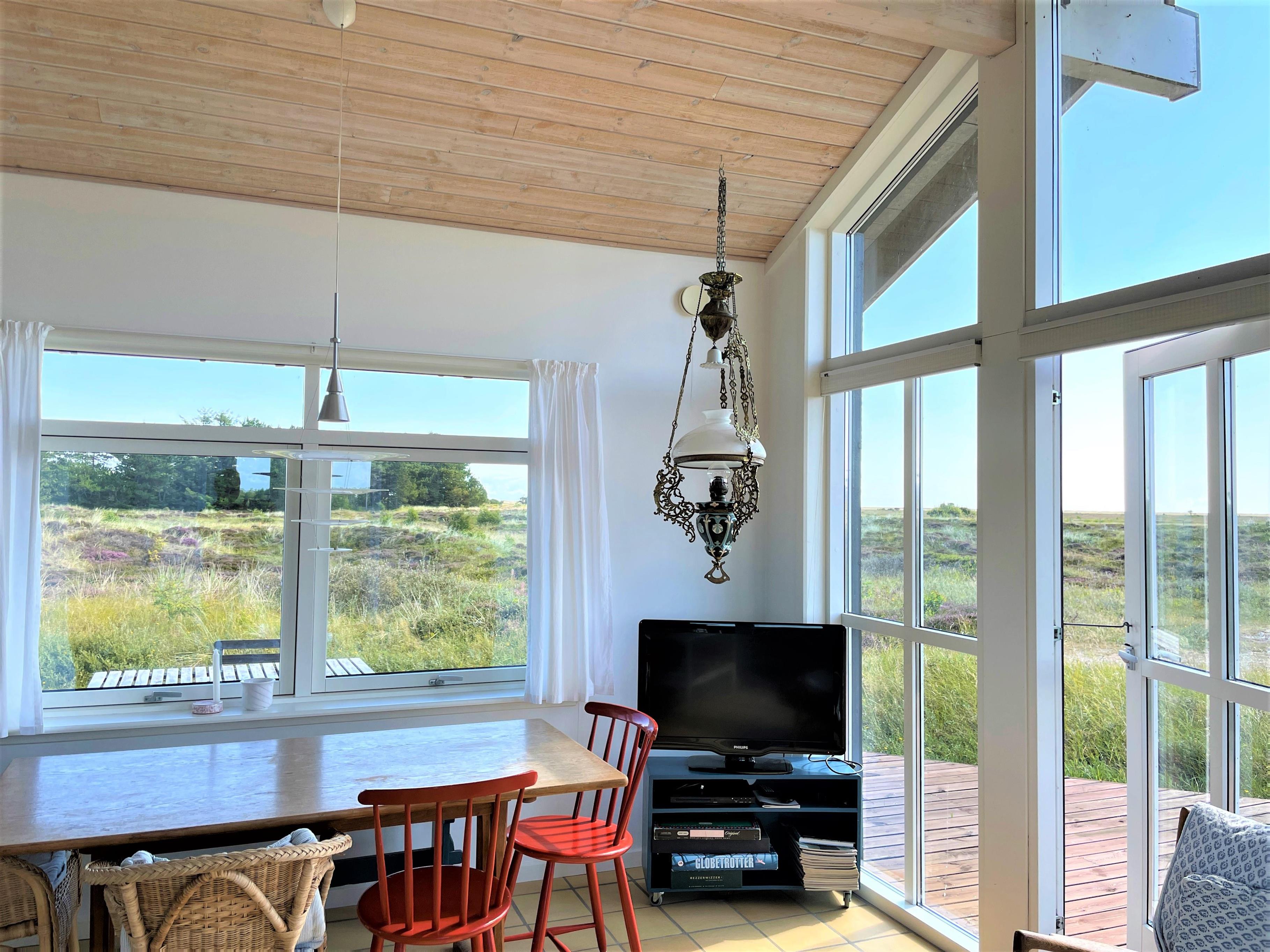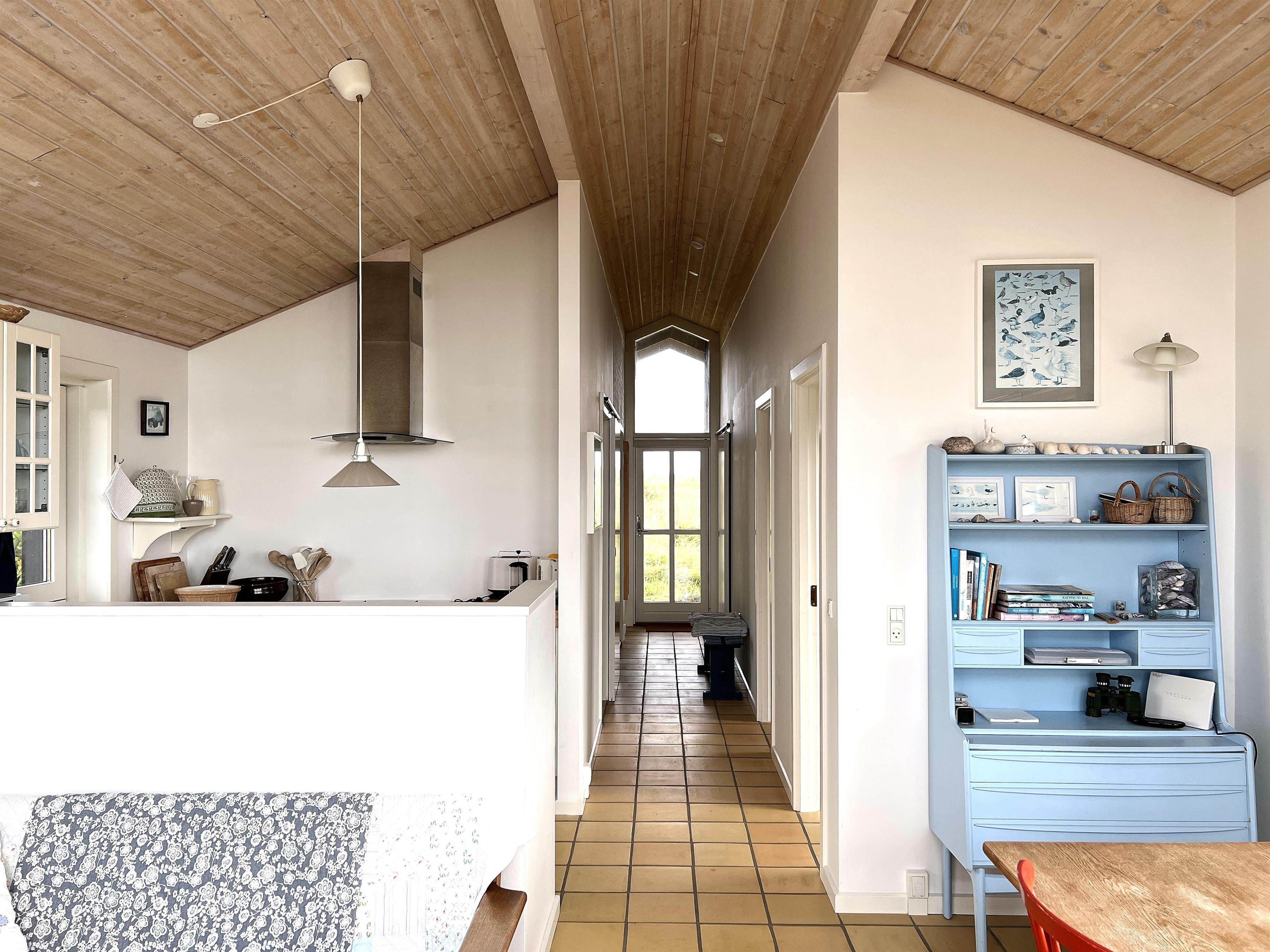 Unik beliggenhed. Fantastisk smukt beliggende i læ af Danzigmann's høje klitter findes dette charmerende feriehus med privat sti til stranden. Lyst og dejligt indrettet med fint køkken/alrum, hyggelig stue med tv via ChromeCast og brændeovn. Tre soverum med gode senge - et med dobbeltseng, ét med to enkeltsenge og et med én enkeltseng. Der er udgang fra alle soveværelser. Et fint badeværelse med brus. Udebruser på vestsiden af huset. 2.5 km. til Østerby Havn med marina, restauranter, fiskehandel og gode indkøbsmuligheder. Her finder man Læsøroen og stilheden, der kun afbrydes af fuglesang og havets brusen.