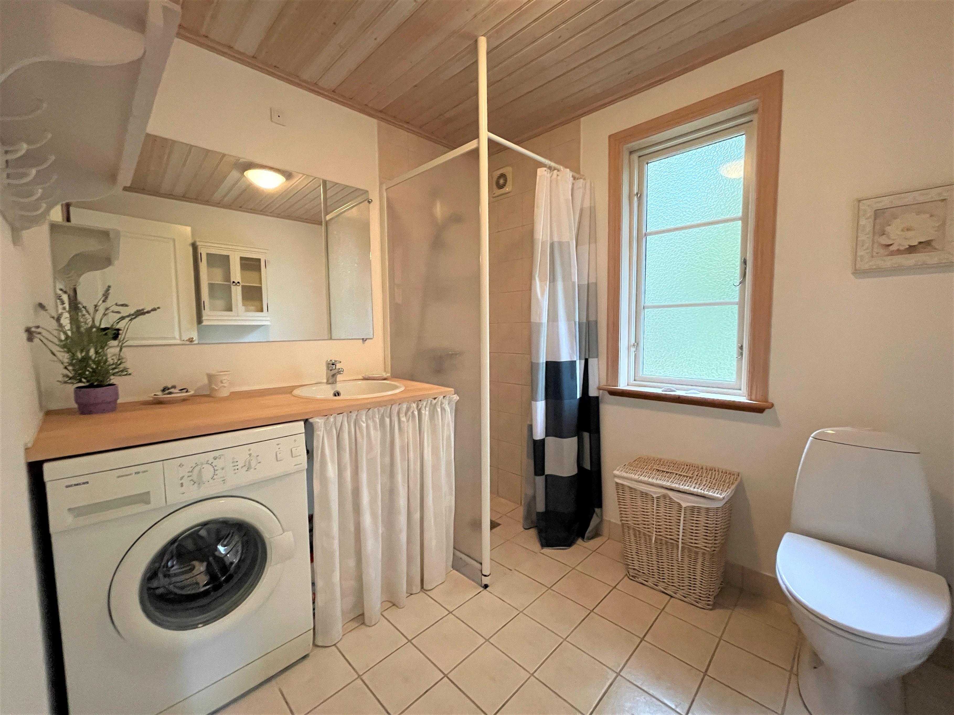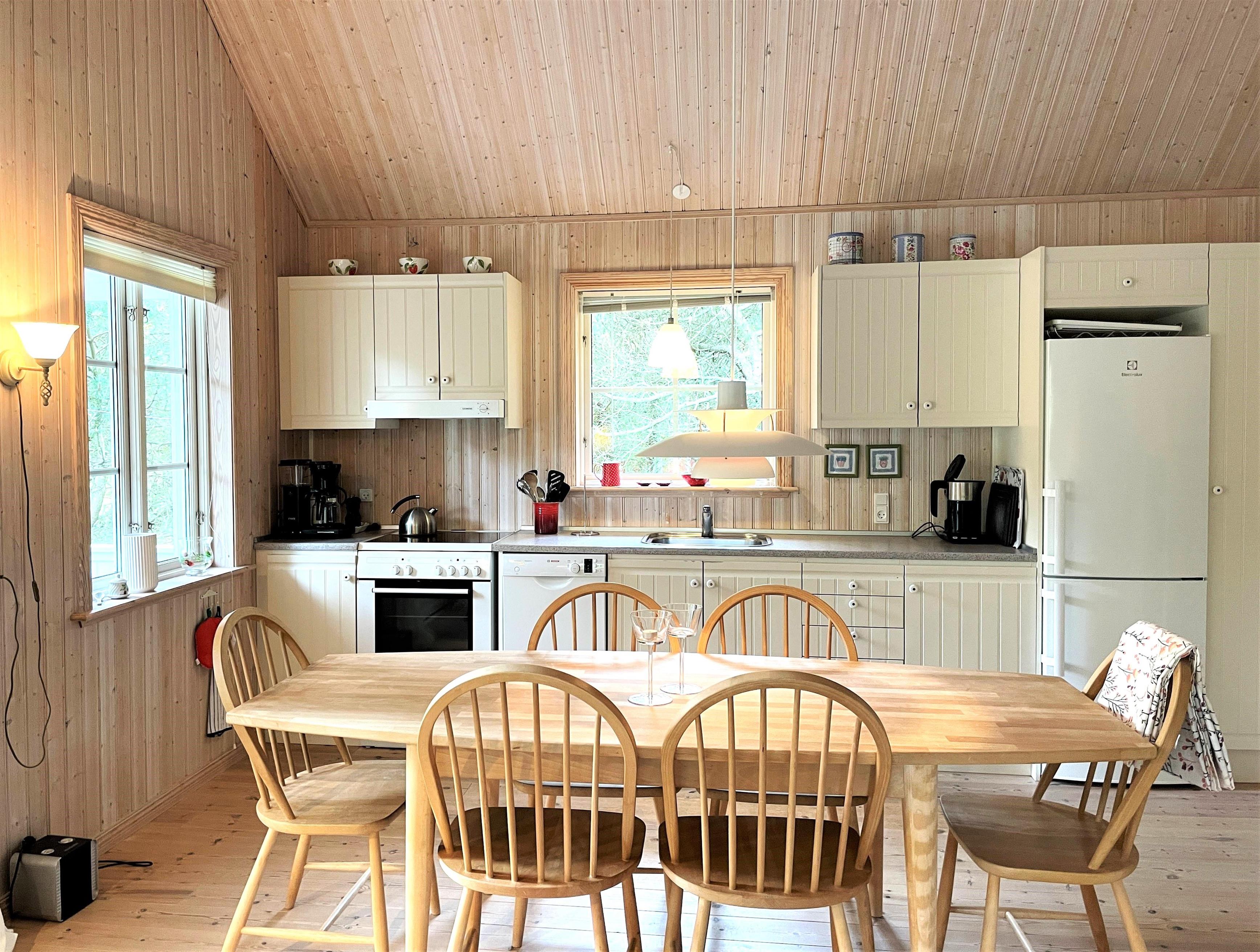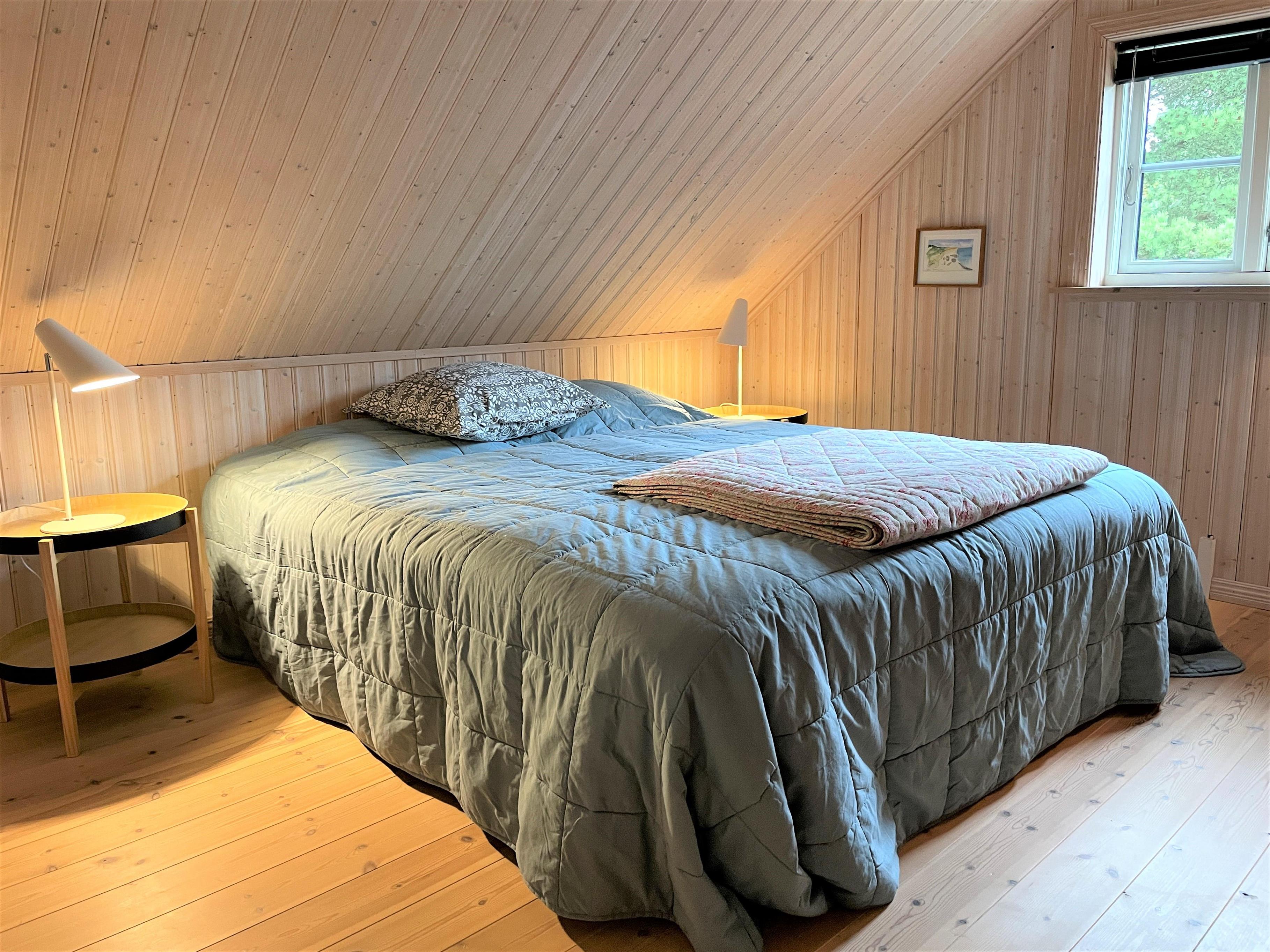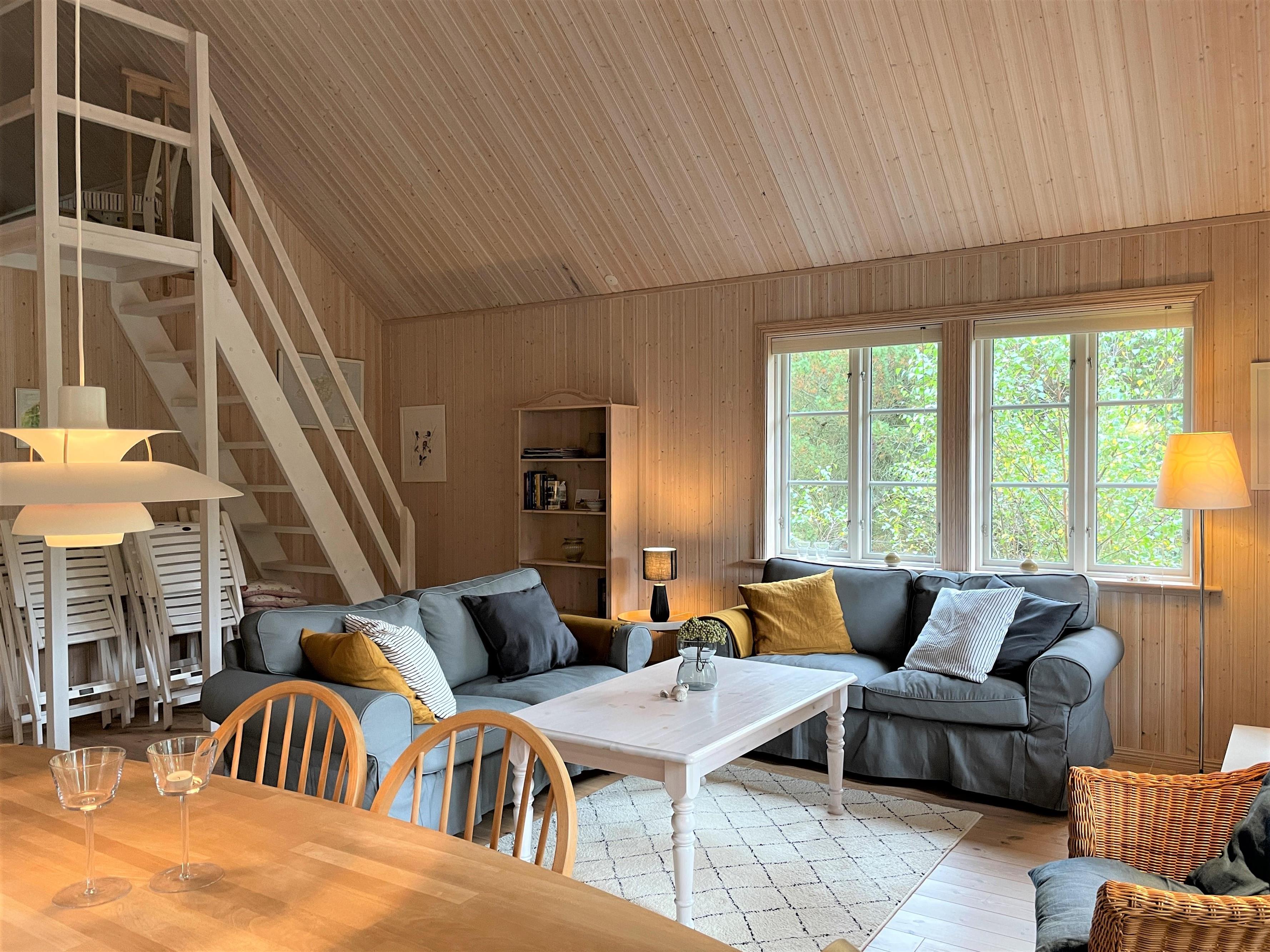 Rigtig lækker indretning med dejlige lyse moderne møbler. Tre soverum; to med dobbeltsenge (et i hems) og et med en enkeltseng. Fint badeværelse med brus.
