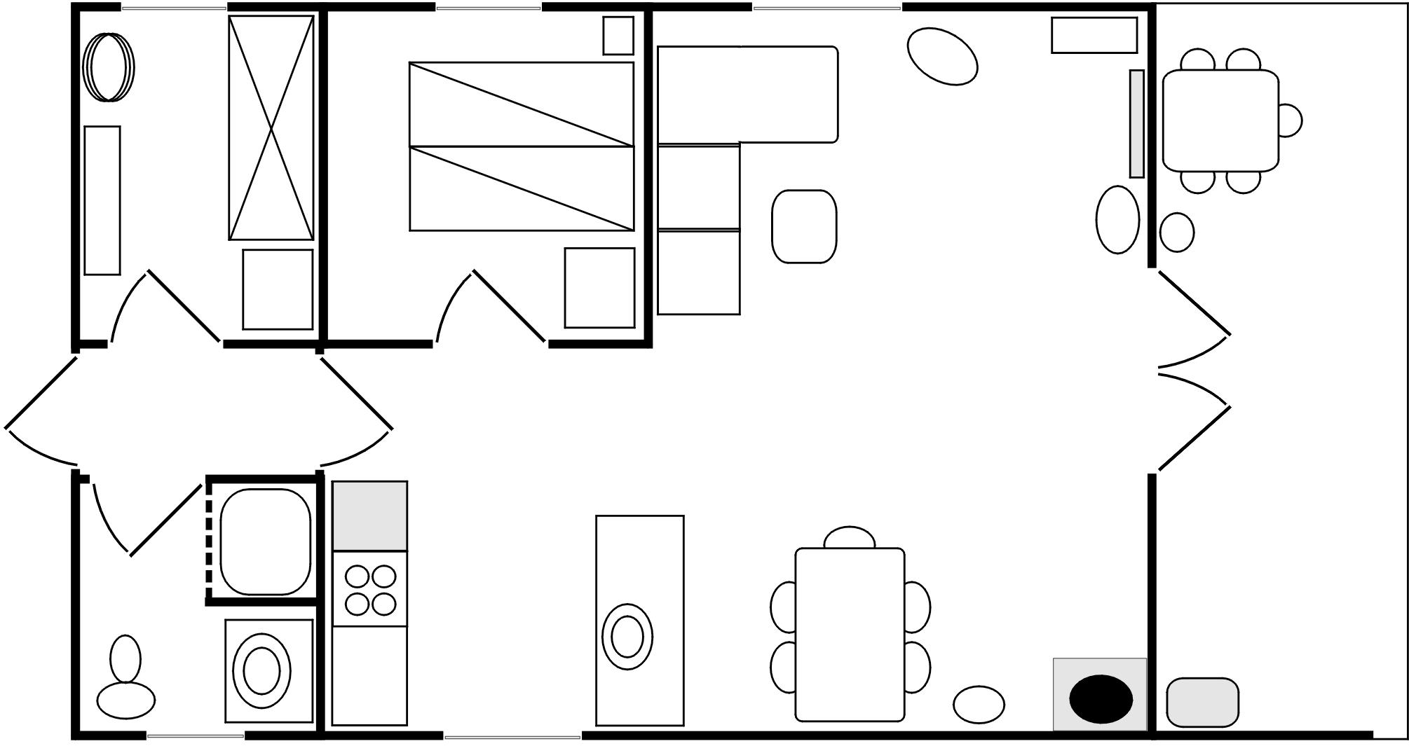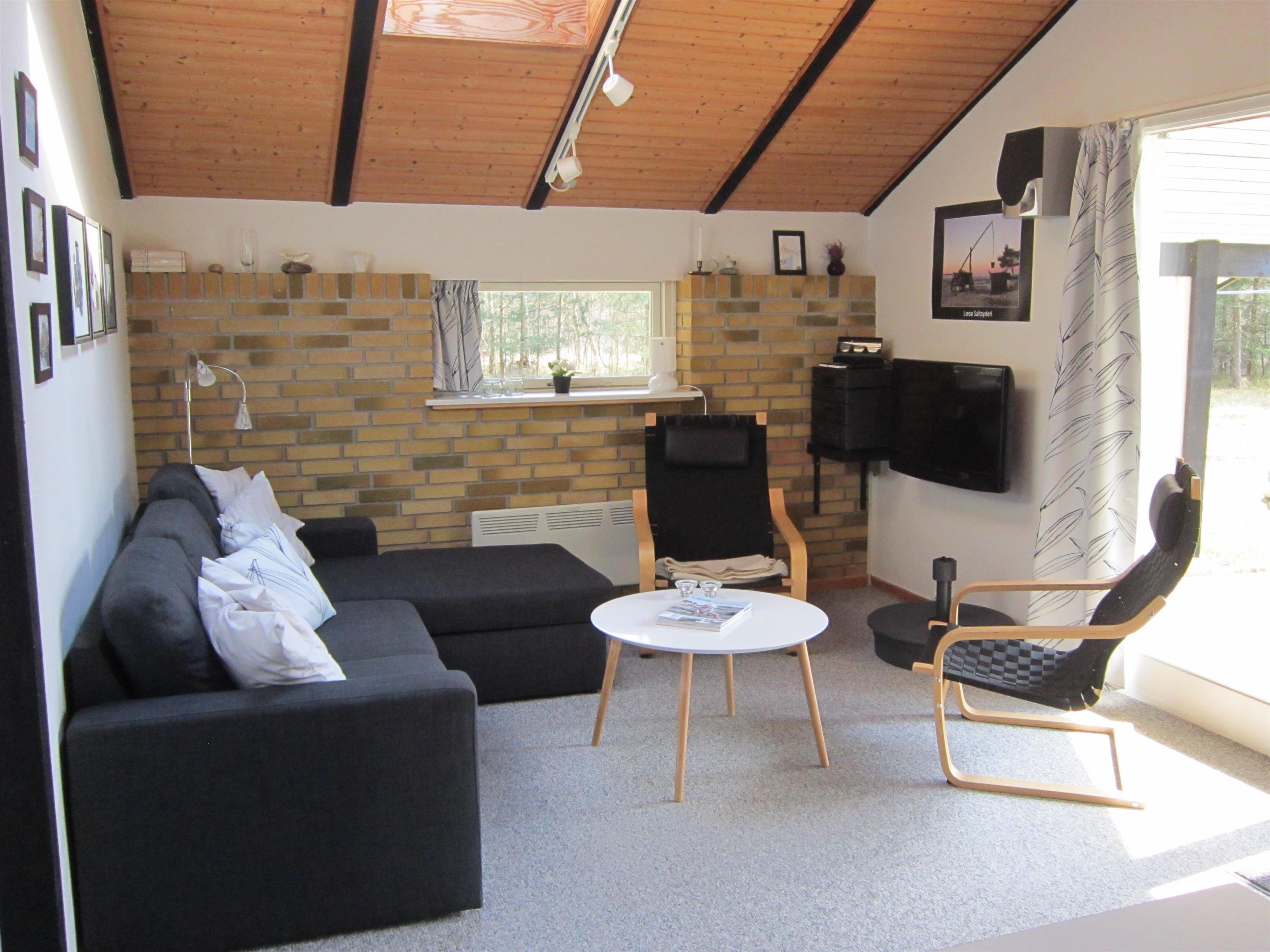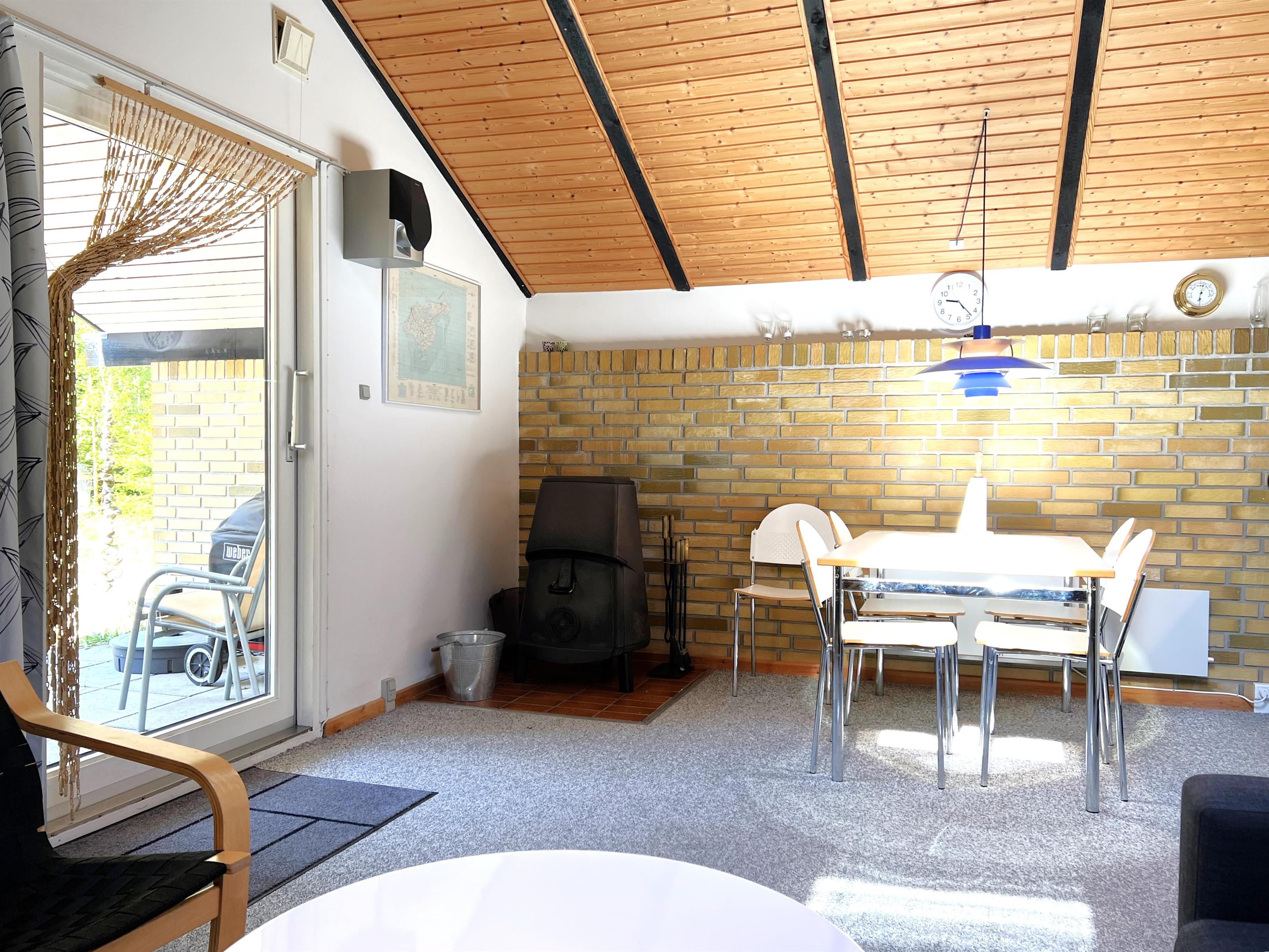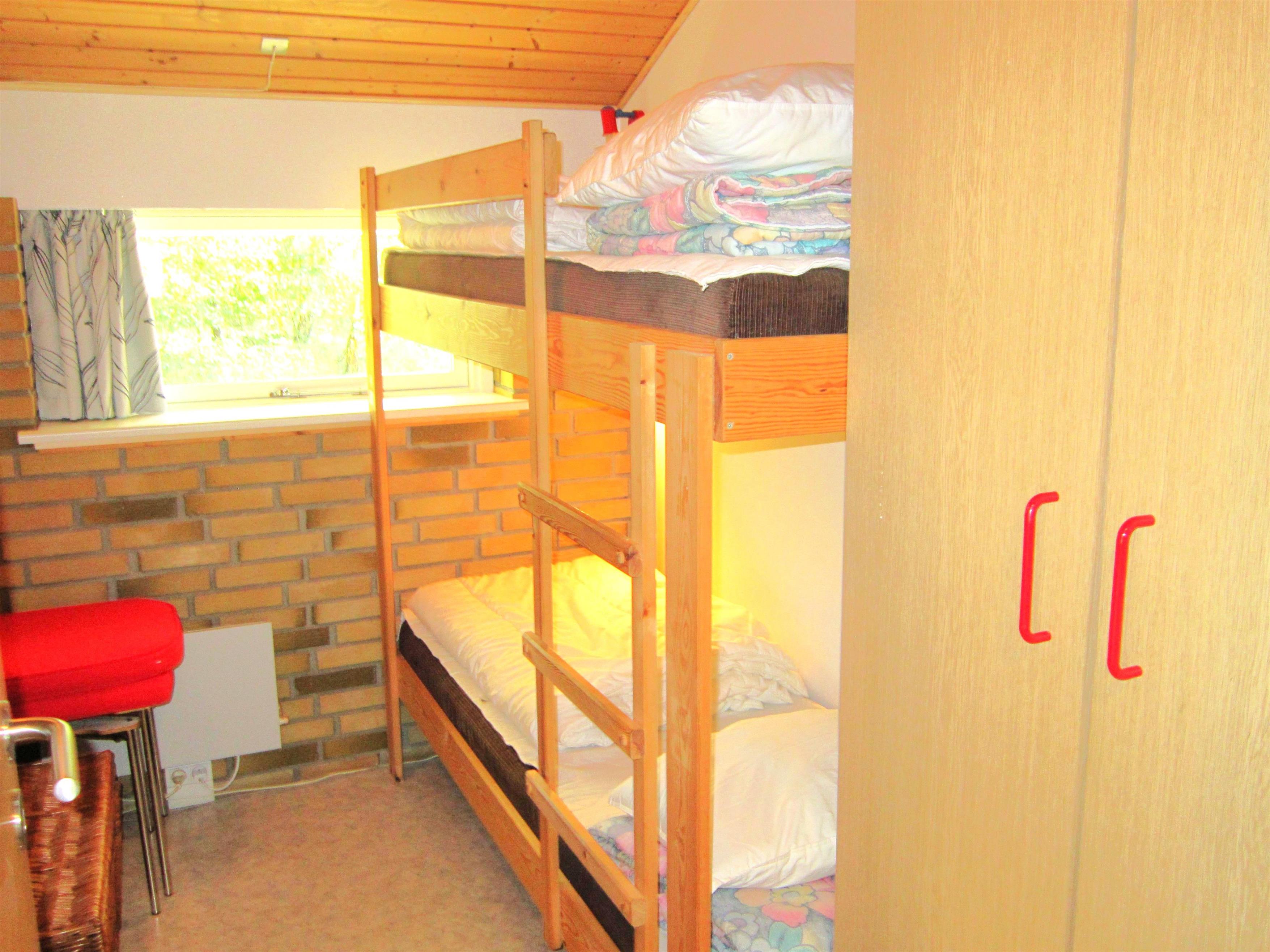 Huset indeholder stue med brændeovn, køkken/alrum, 2 soveværelser, hvoraf det ene med dobbeltseng og det andet med køjeseng.