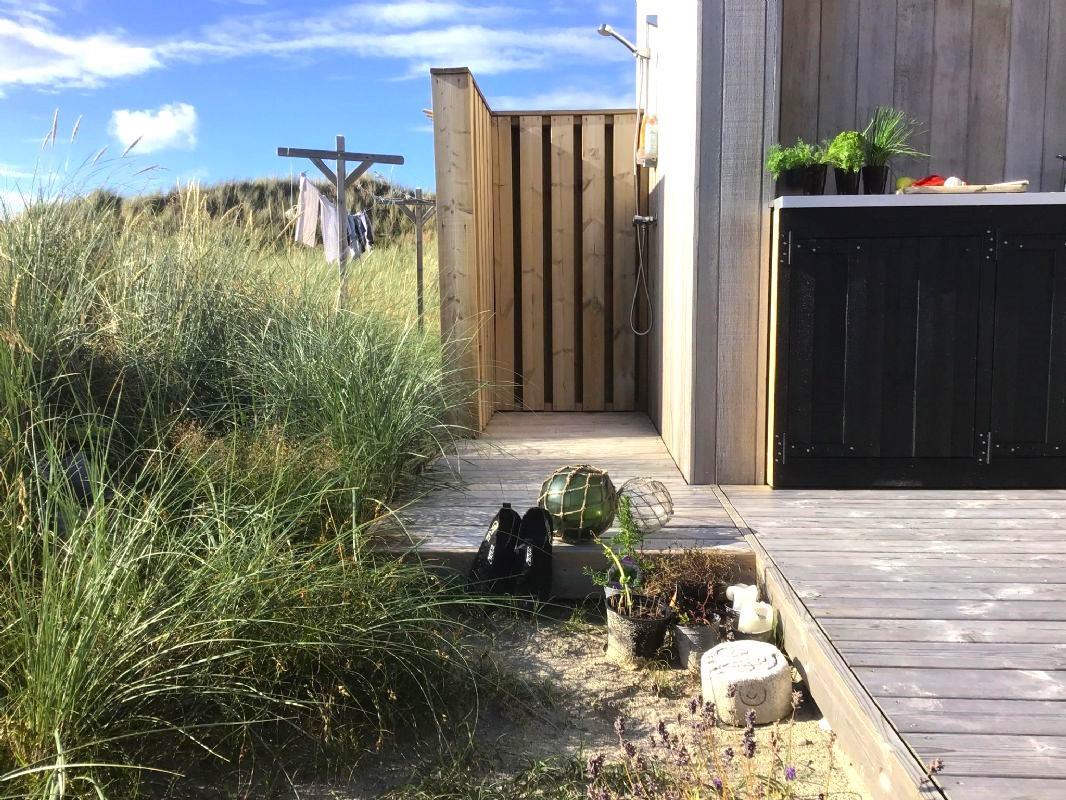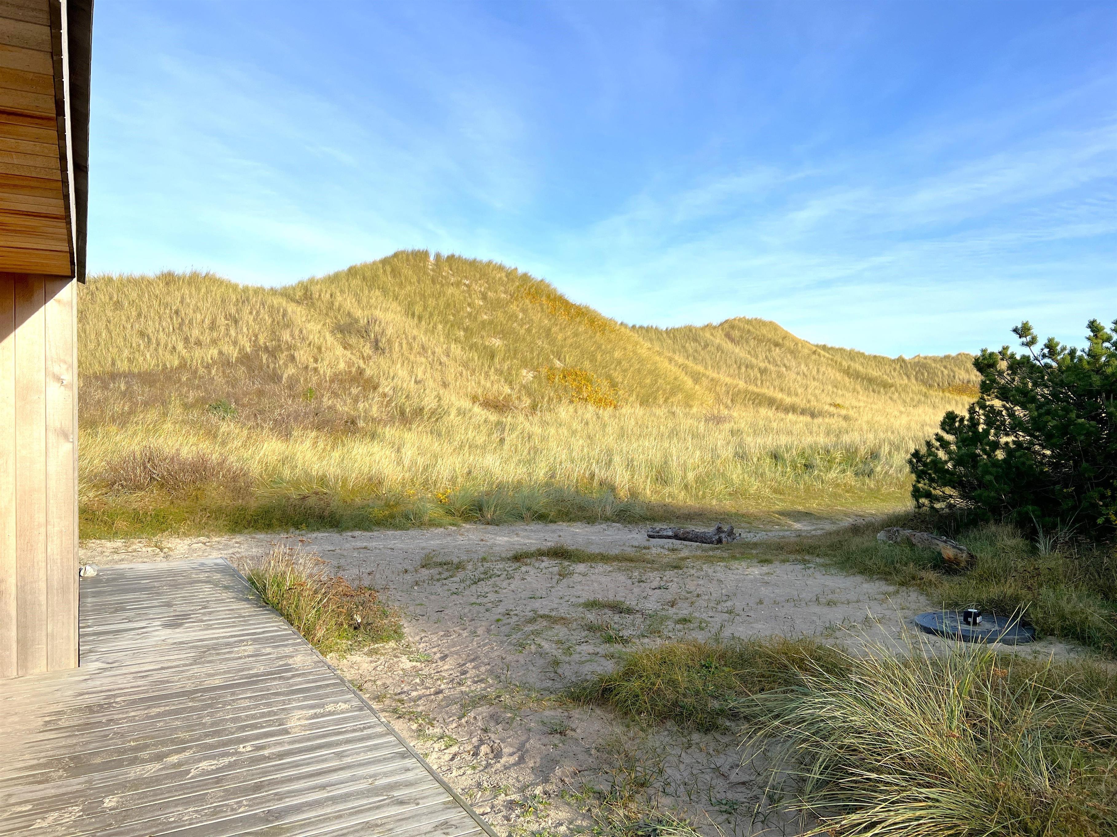Der er store træterrasser på tre sider af huset med fine solkroge, hvor både morgen- og aftensol kan nydes. Endvidere ekstra faciliteter, som udekøkken, vildmarksbad og udebruser på vestsiden af huset. Der er privat sti til stranden, som lokker med noget af Danmarks klareste vand og hvideste sand blot 50m fra huset.