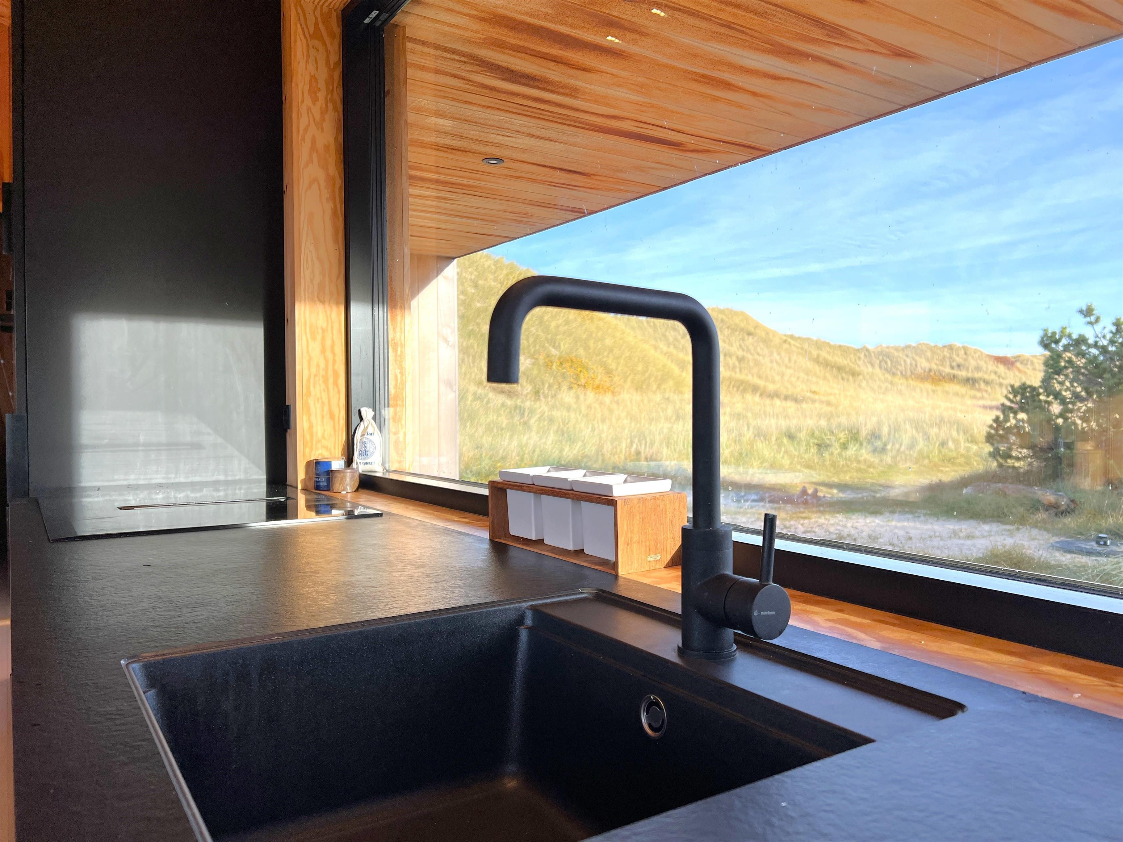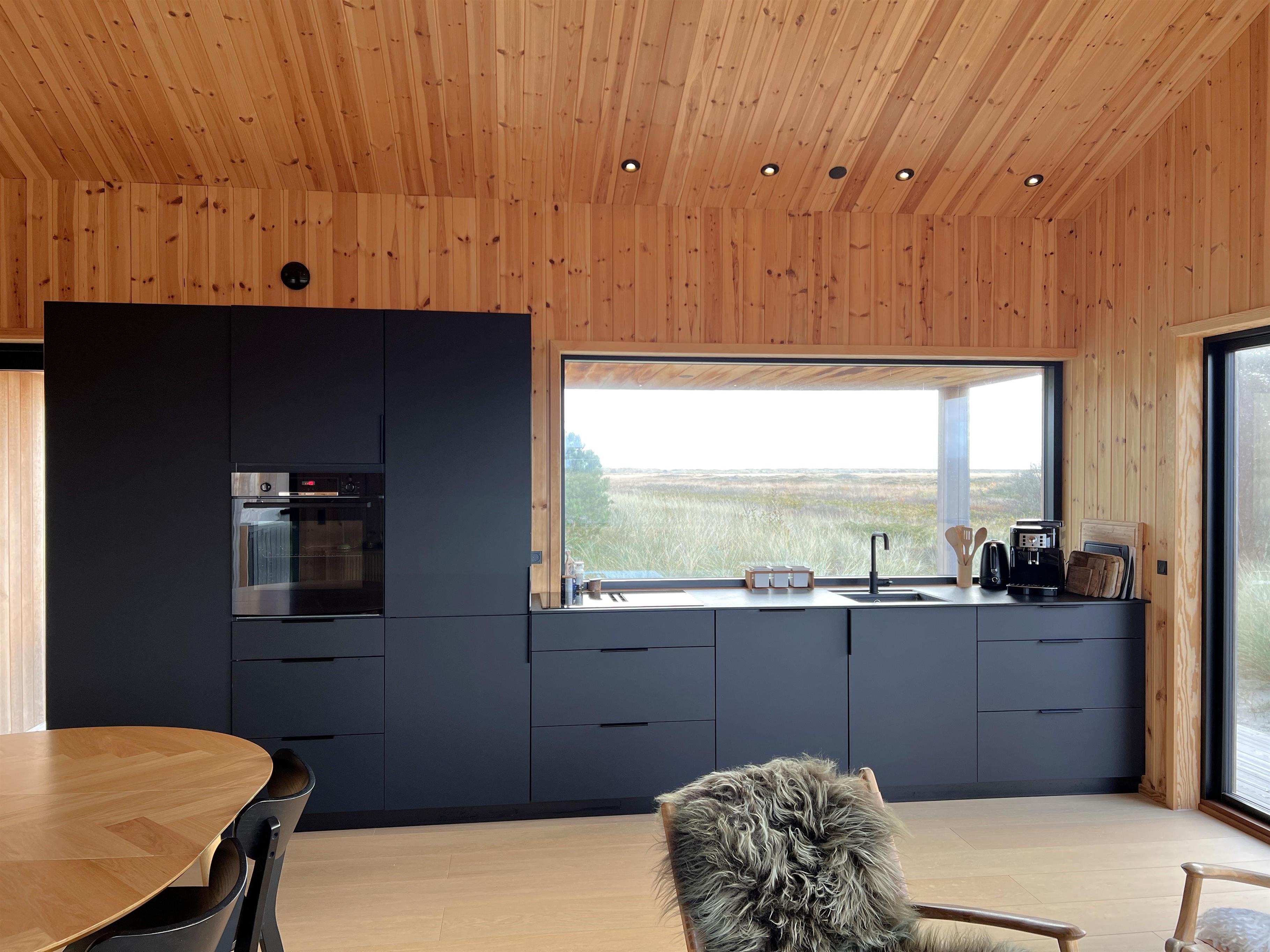Fra husets store køkken-alrum er der panoramaudsigt til de imponerende klitter og den vidtstrakte uberørte Læsø-natur.
