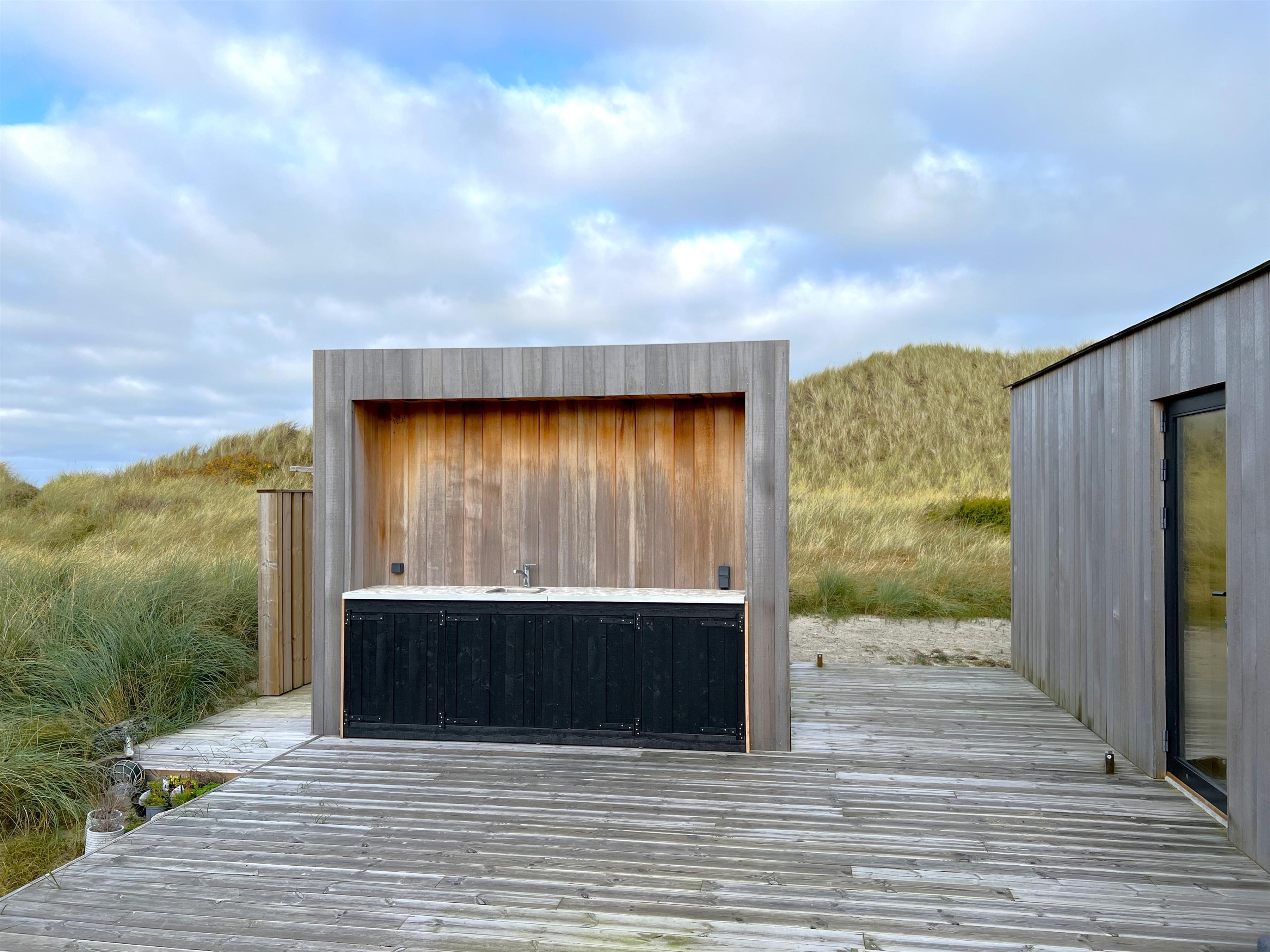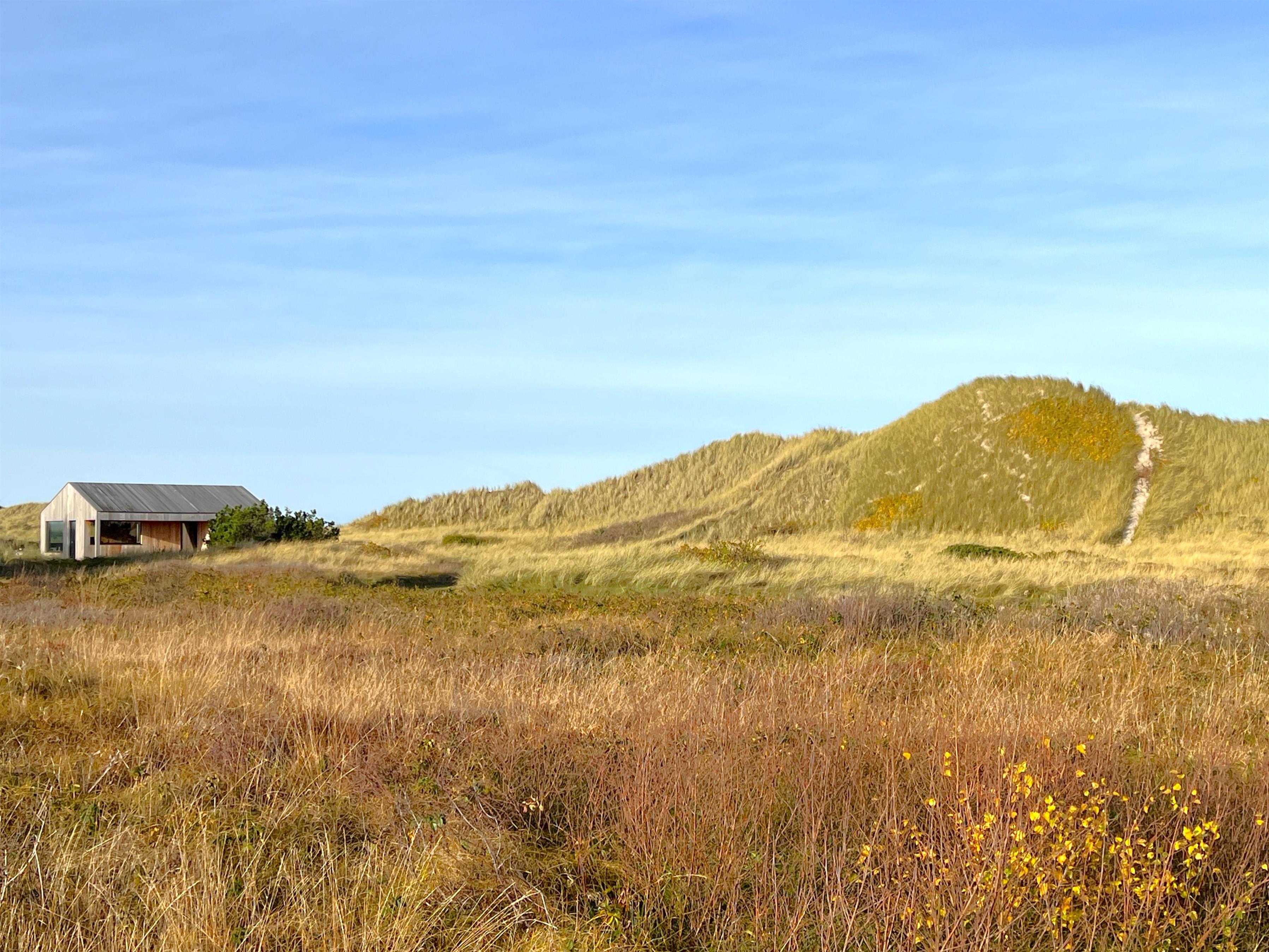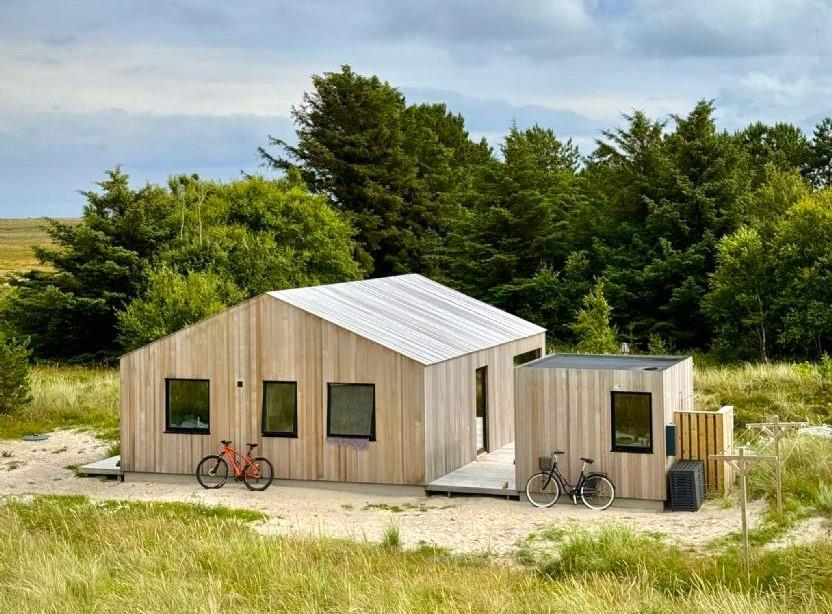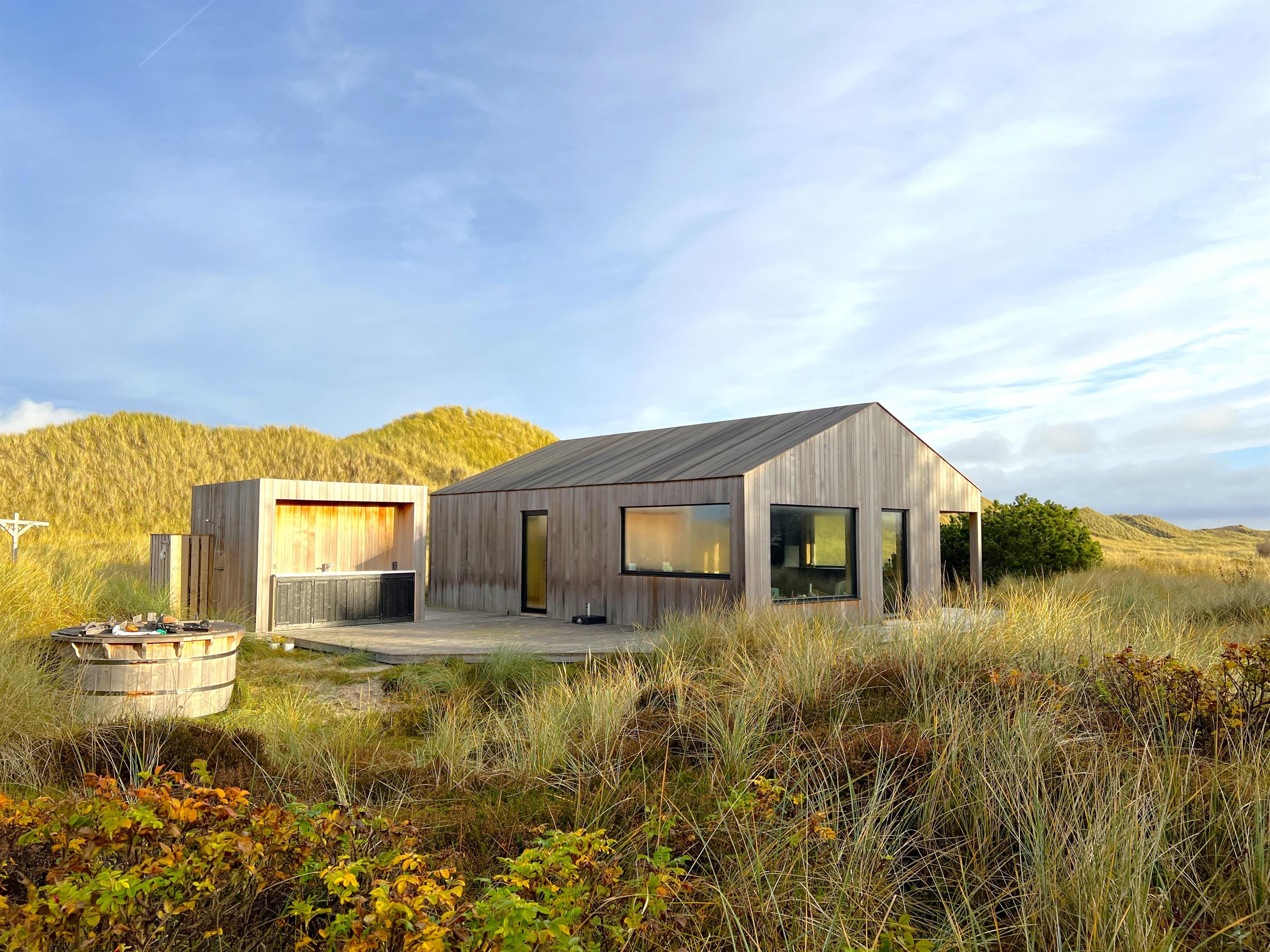 Nyt hos Team Læsø. Unikt, fantastisk smukt beliggende, og i læ af Danzigmann’s høje klitter findes dette lækre nybyggede feriehus fra 2023.