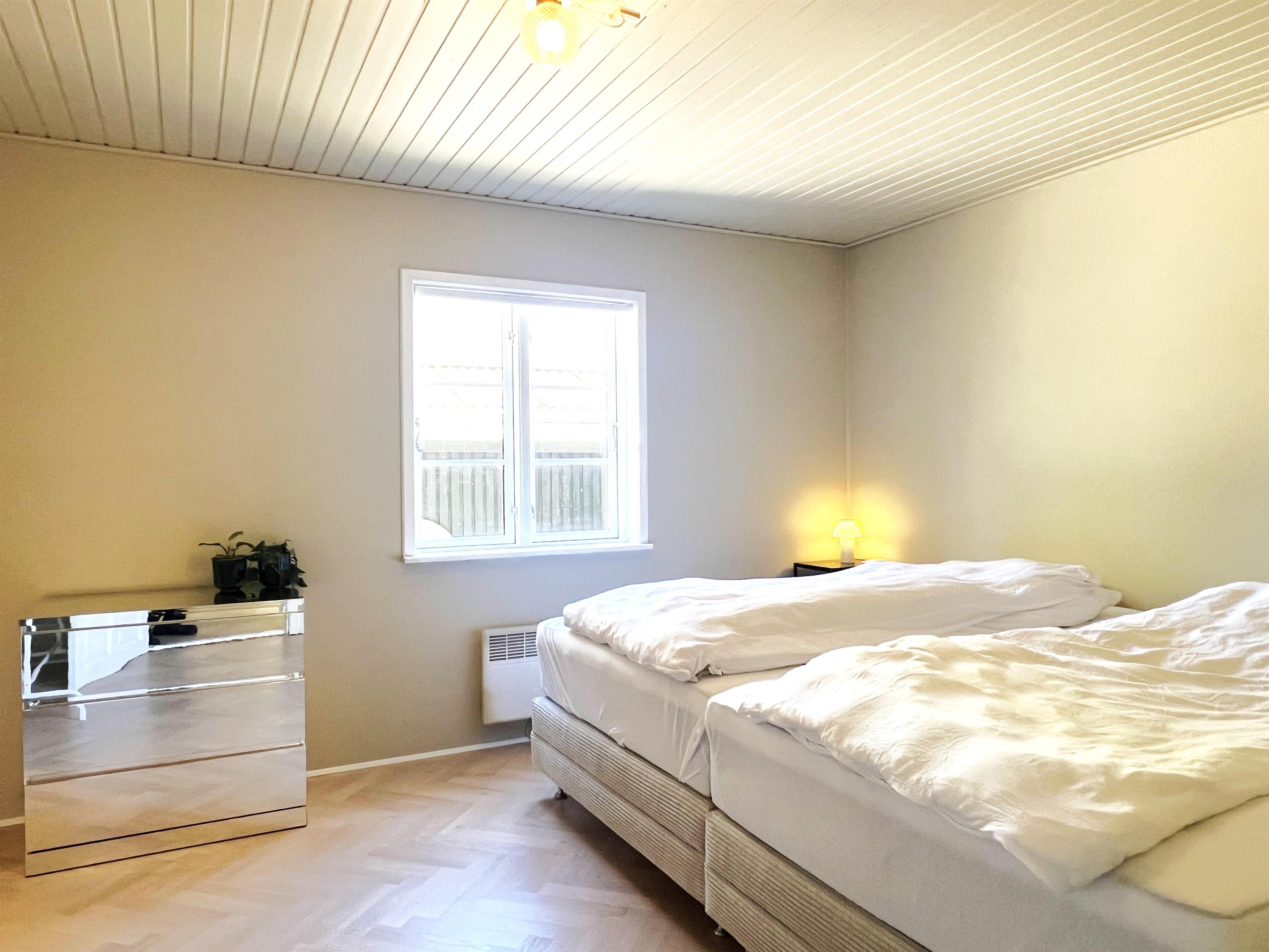 Der er desuden to gode, rummelige soveværelser med fine store, komfortable dobbeltsenge. Det tredje soveværelse med en mindre dobbeltseng egner sig måske bedst til en person, men to er også muligt. Fra et af de store soveværelser er der direkte adgang til fint badeværelse. Huset har hele to flotte badeværelser med brus og smagfuld indretning med bl.a. vandhaner og brusehoveder i messing. Der er yderligere bryggers med vaskemaskine og tørretumbler. I forlængelse af hovedhuset er der et fint anneks med endnu en stor dobbeltseng og en rigtig hyggelig havestue, der forlænger de lune sommeraftener.