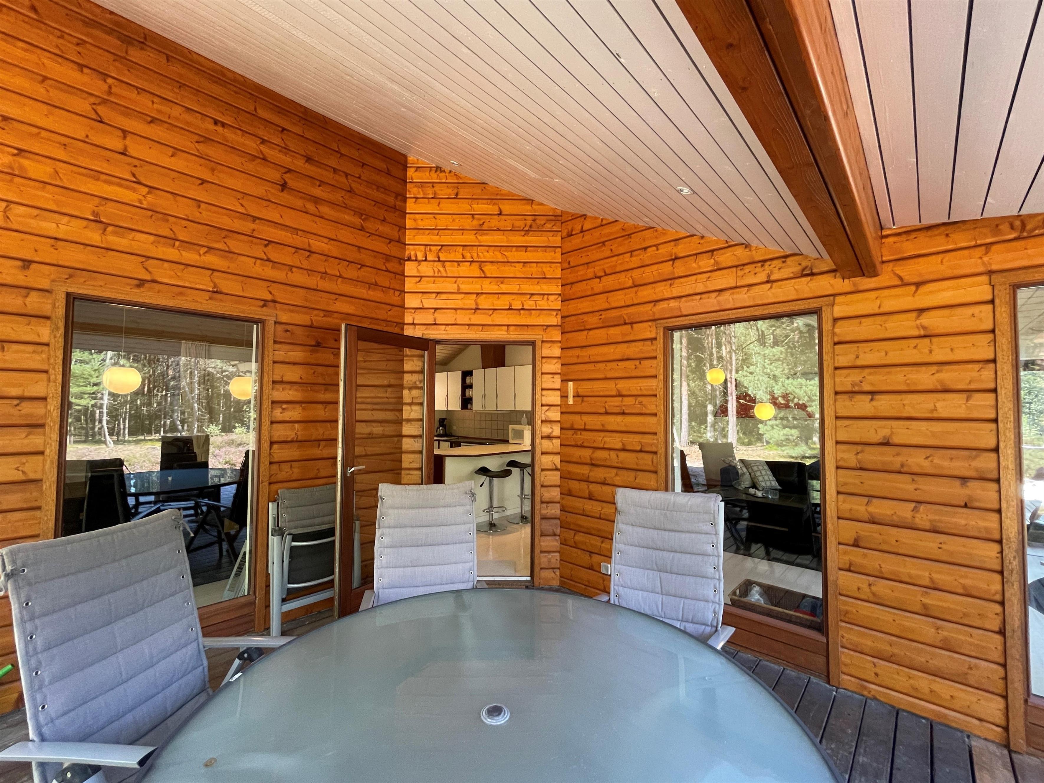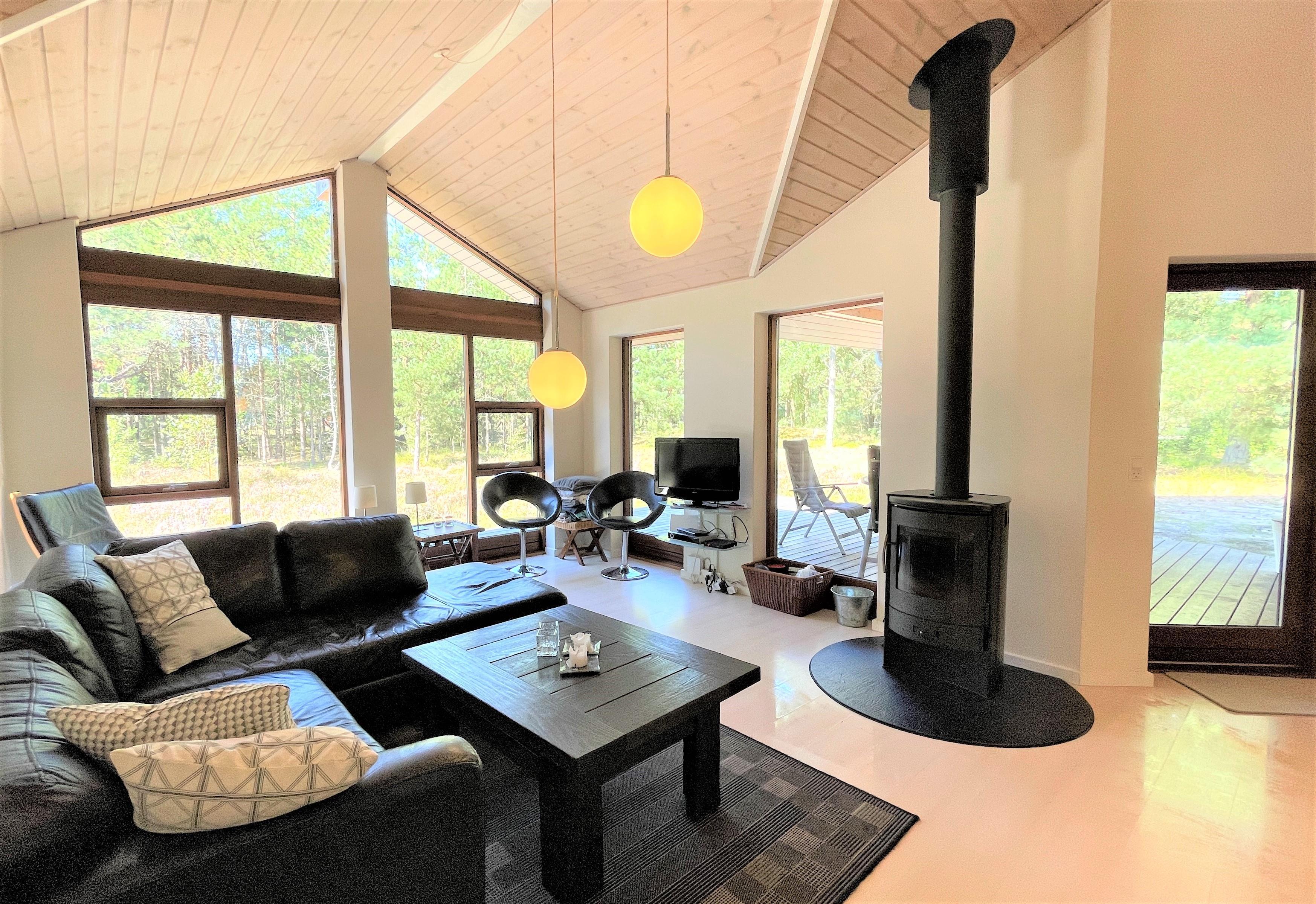 Dejligt rummeligt kvalitetshus med skøn overdækket terrasse. Beliggende på naturgrund med hedelyng og ca. 800 meter til strand og indkøbsmuligheder.