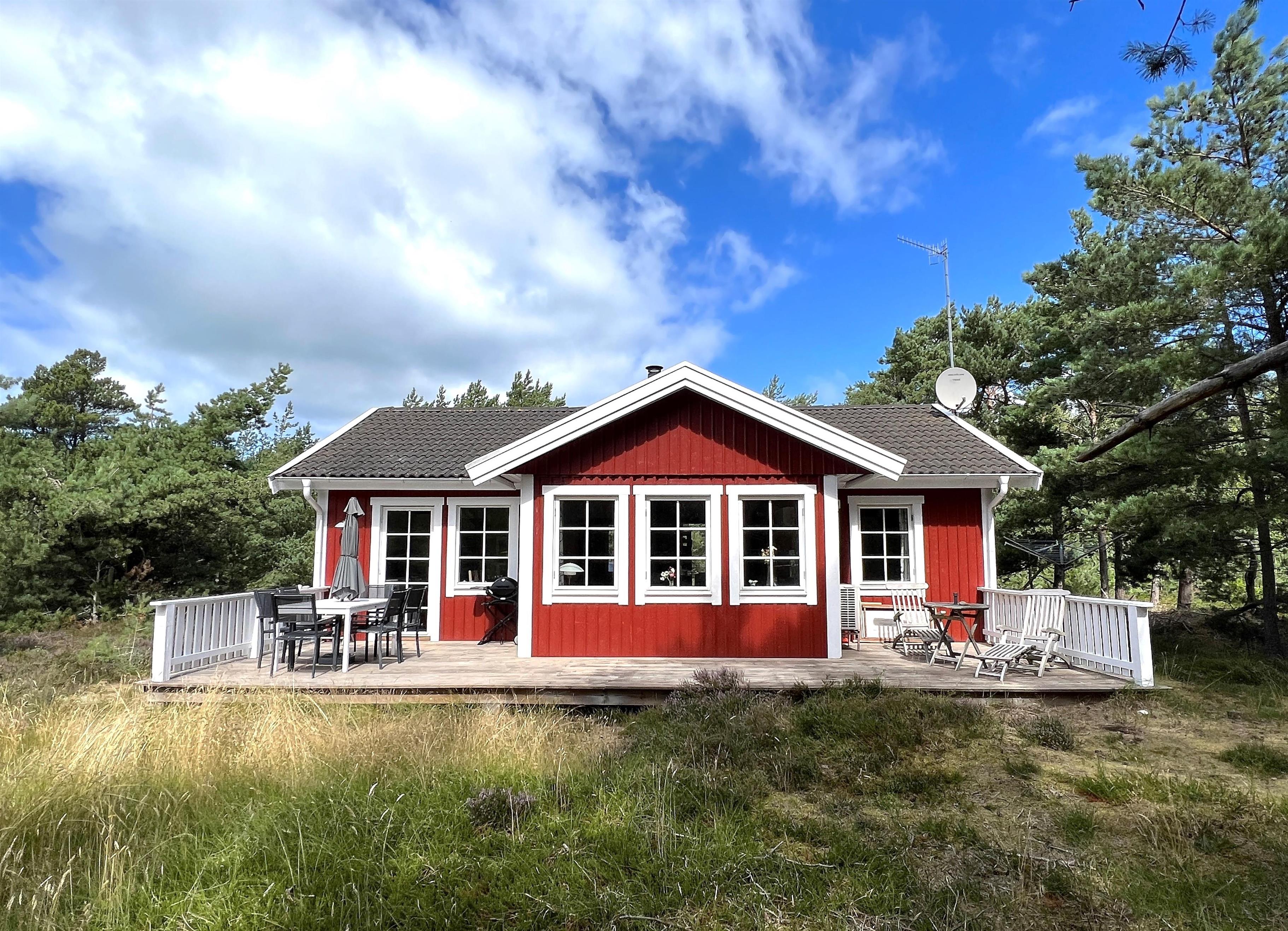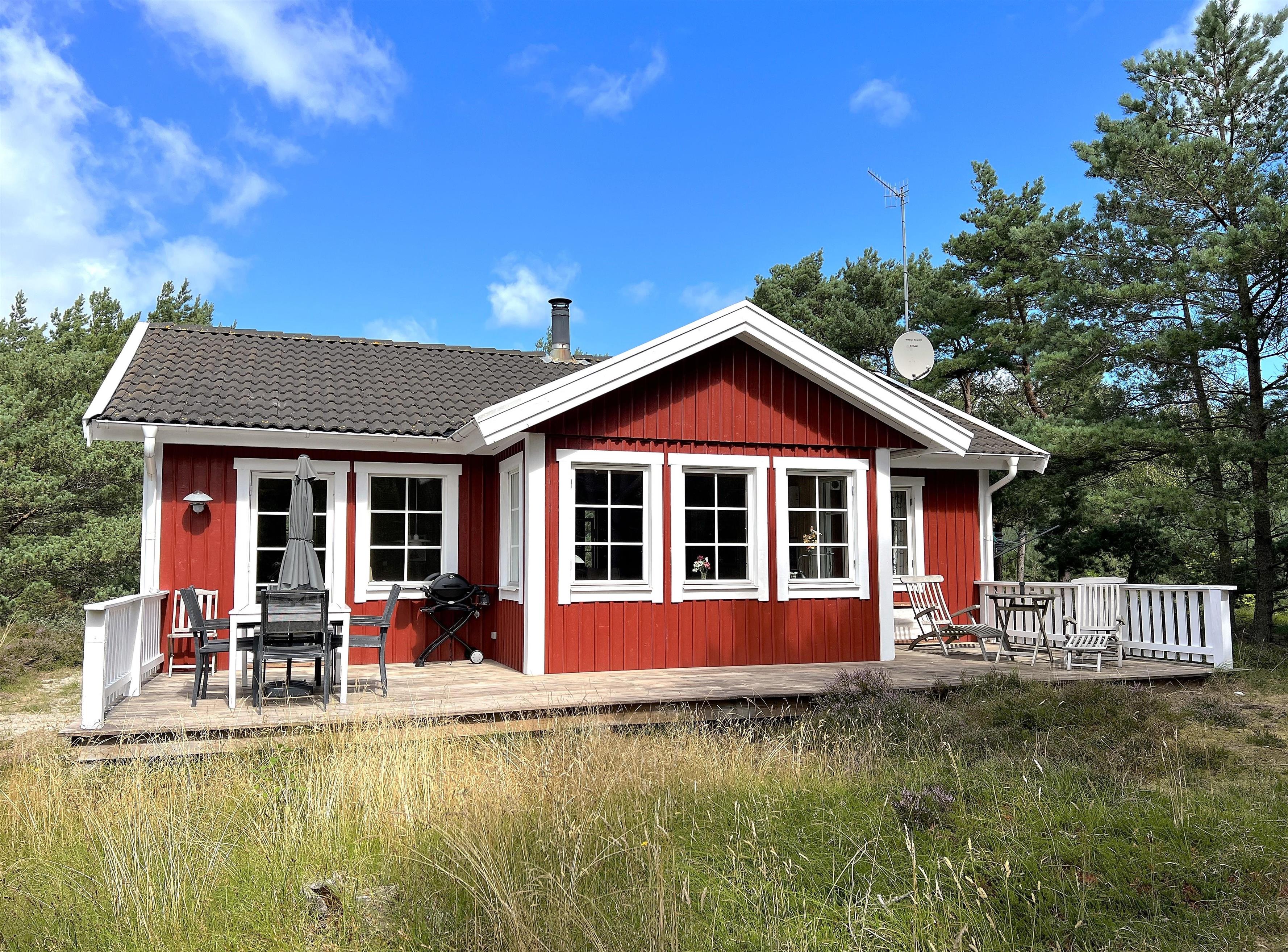 Hyggeligt feriehus tæt på strand og Østerby med skøn terrasse og brændeovn.