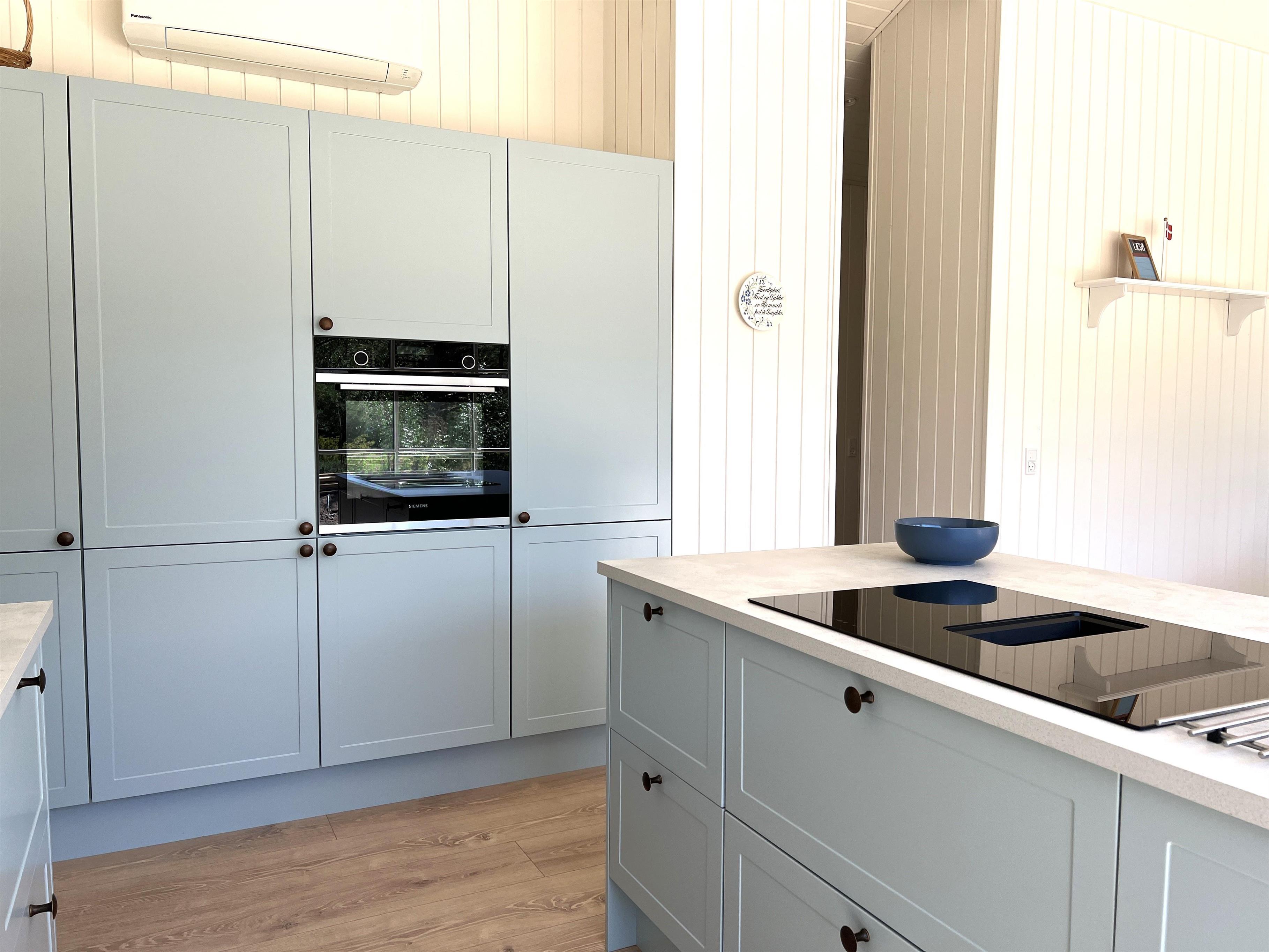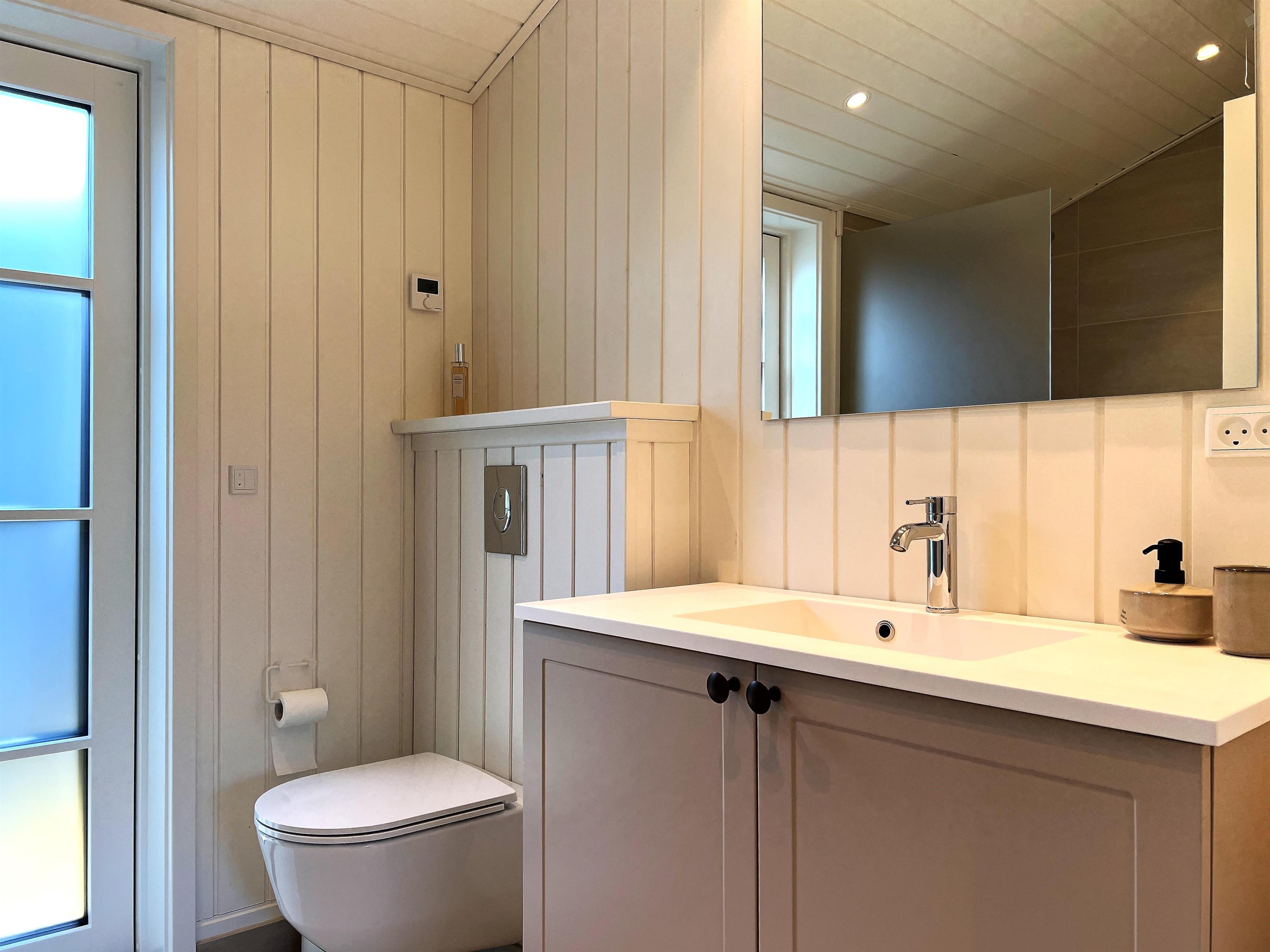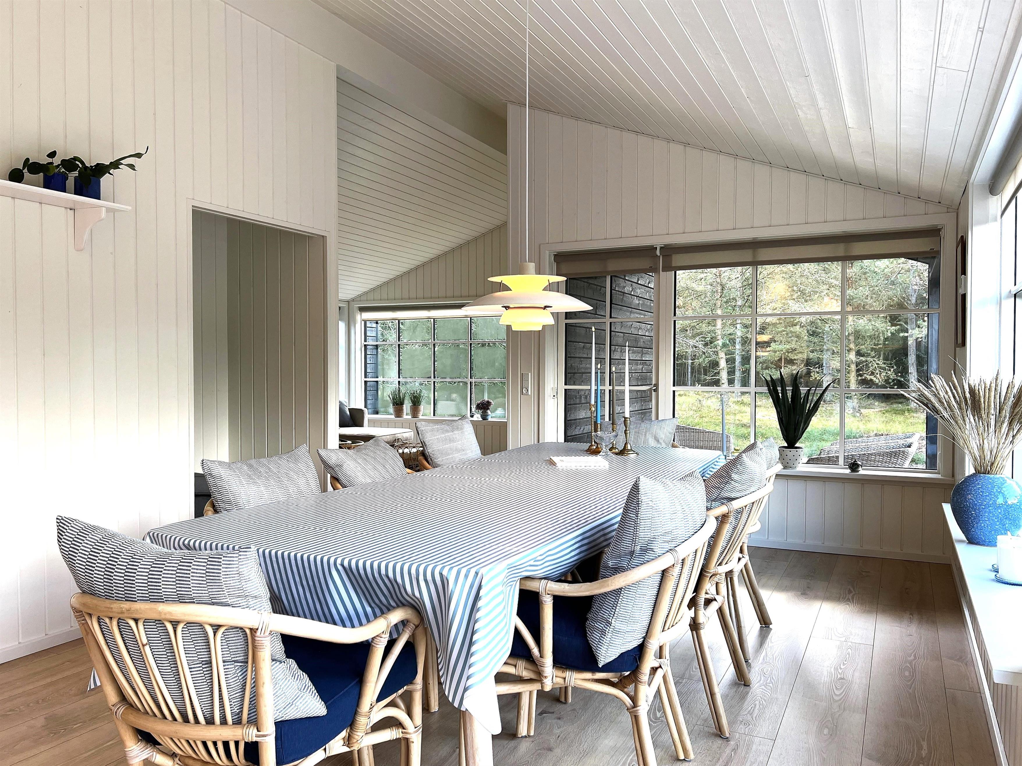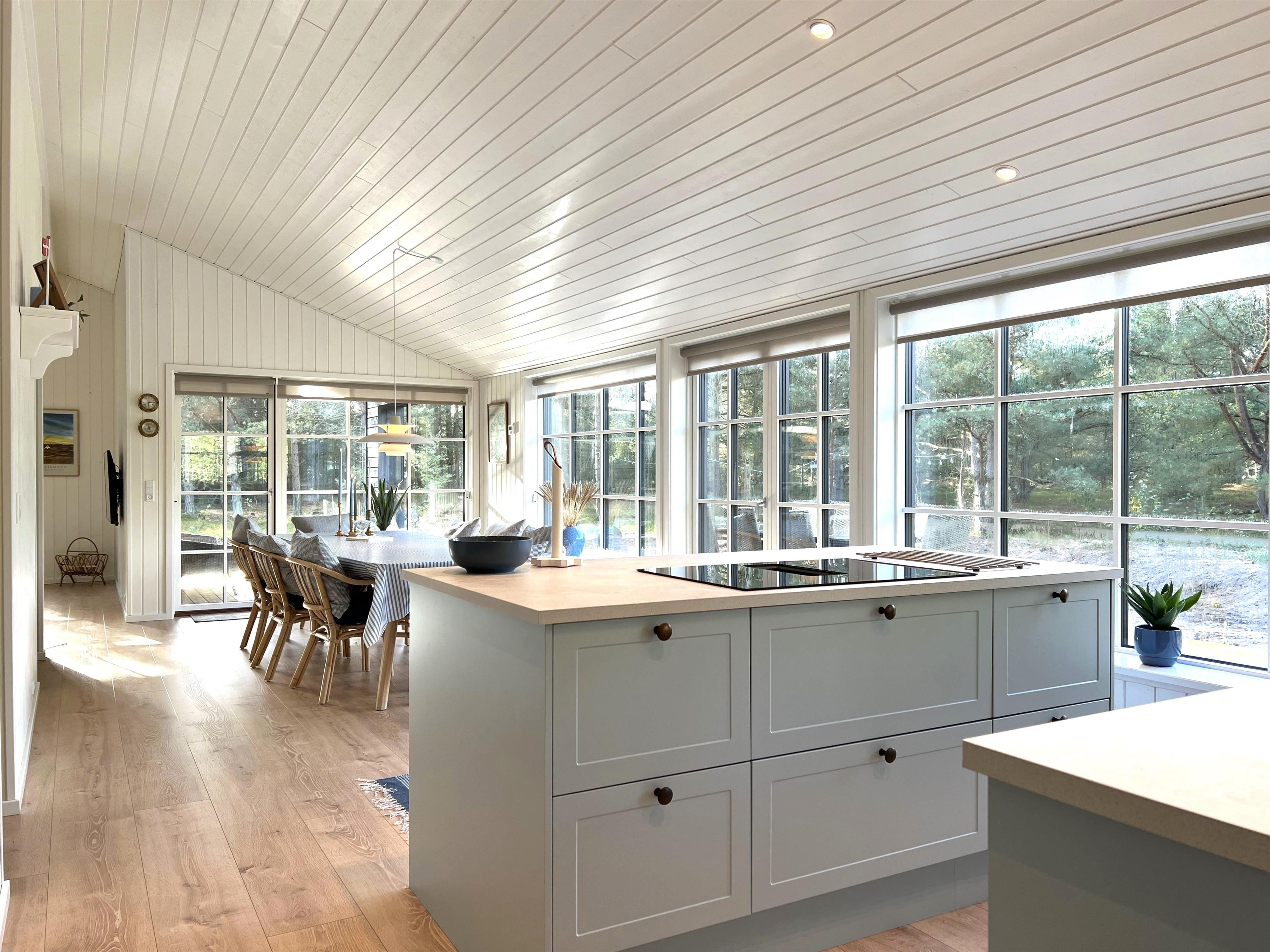 Feriehuset fremstår særdeles indbydende, og der er rigtig mange moderne detaljer. Lysindfaldet fra de flotte store vinduespartier er smukt og bringer nærmest naturen indenfor. Alle rum er forsynet med moderne variabelt lys/spot og opvarmes med moderne energivenligt varmeanlæg med luft/vand over hele huset. I stuen kan man endvidere benytte brændeovnen.