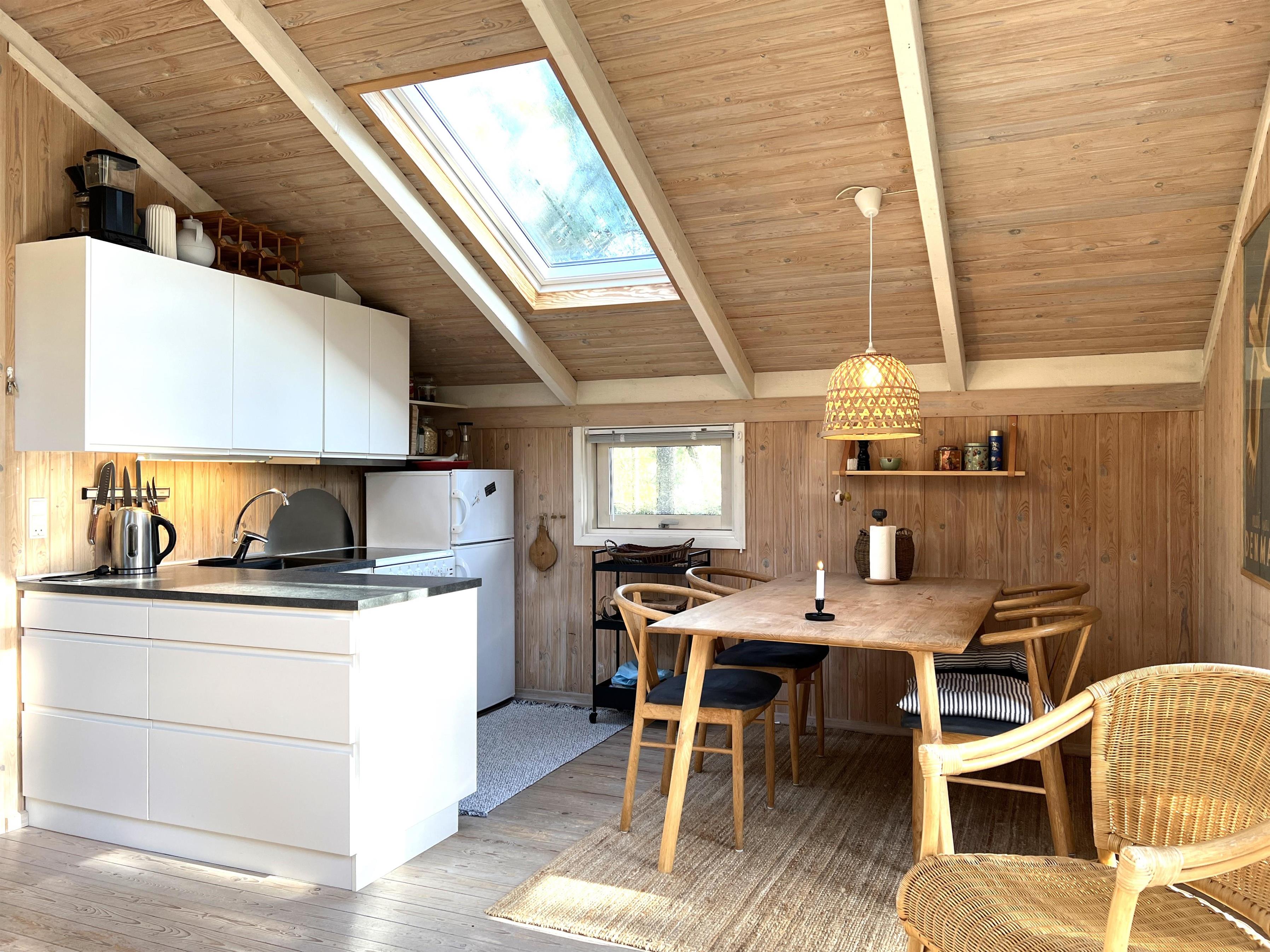 Virkelig dejligt sommerhus i Østerby, beliggende på fin naturgrund med fyrretræer, hede og lyng. Komfortabel moderne indretning.