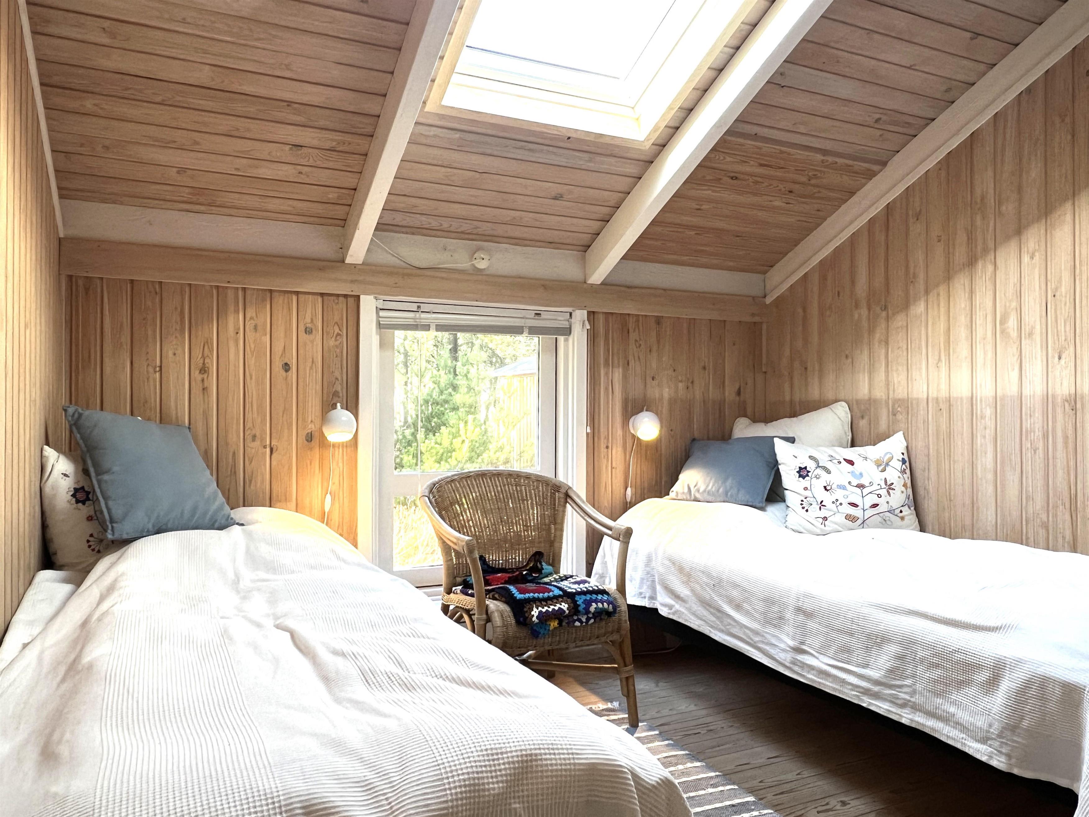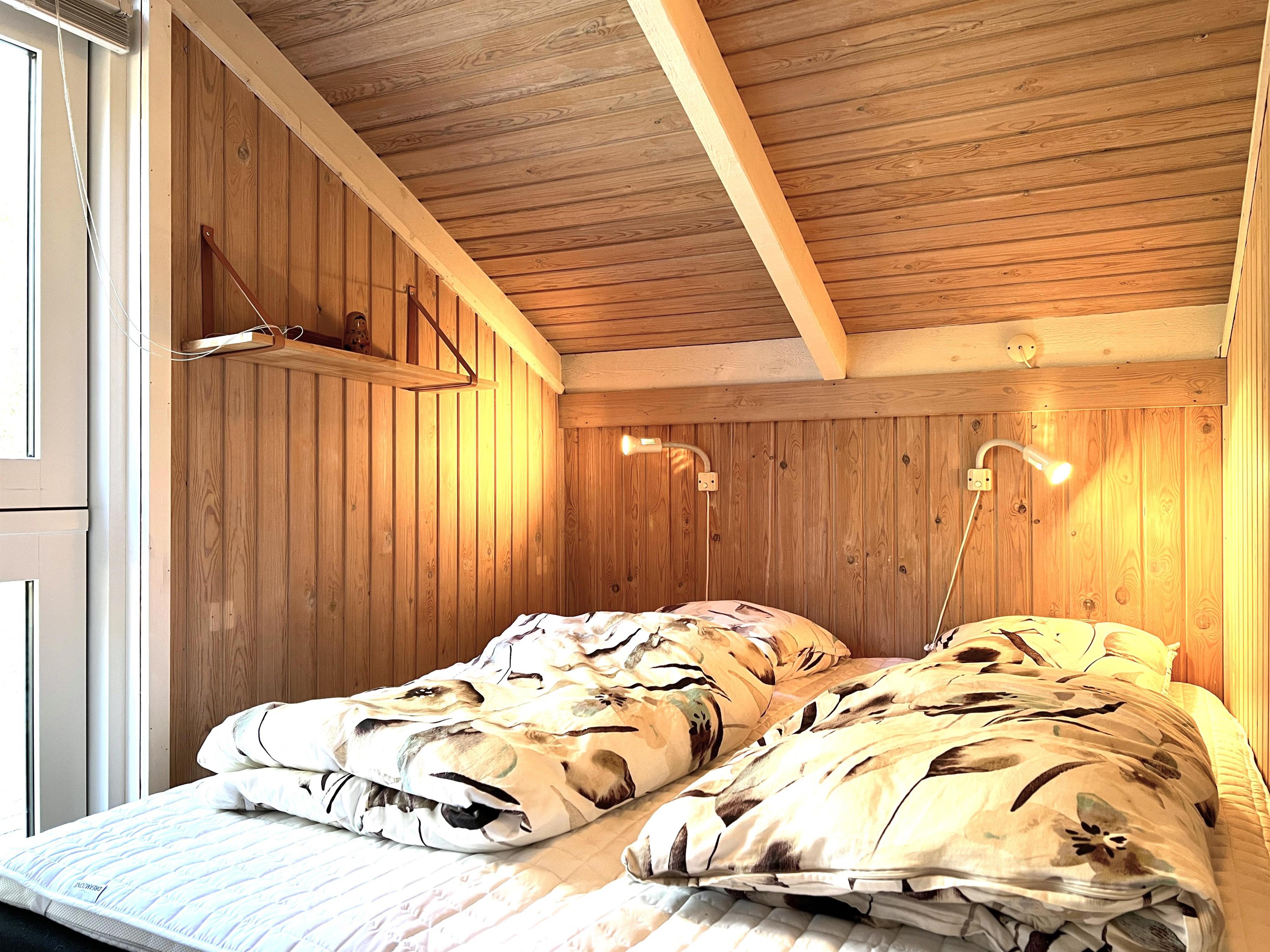 Perfekt udstyret køkken/alrum, godt sofaarrangement, samt varmepumpe. Badeværelse med brus. To soveværelser; det ene er med dobbeltseng samt et med to enkelsenge.