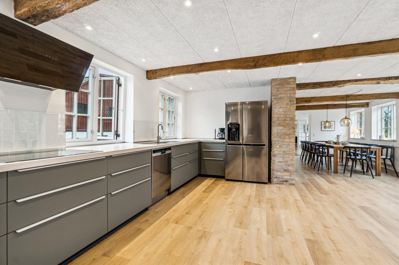 Køkkenet er udstyret med 1 køleskab. Der er 4 induktionskogeplader, varmluftovn, mikrobølgeovn samt opvaskemaskine.