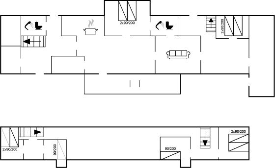 Der er i alt 6 soveværelser. Sovepladserne fordeler sig på: 6 sovepladser i dobbeltsenge. 4 sovepladser i enkeltsenge. Derudover er der 1 stk. barneseng.