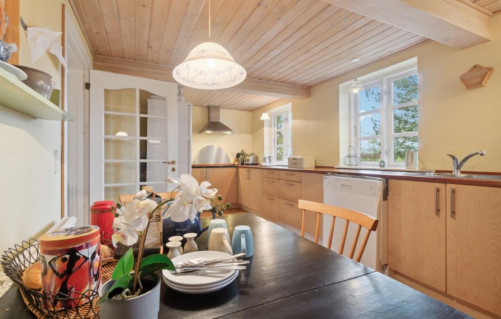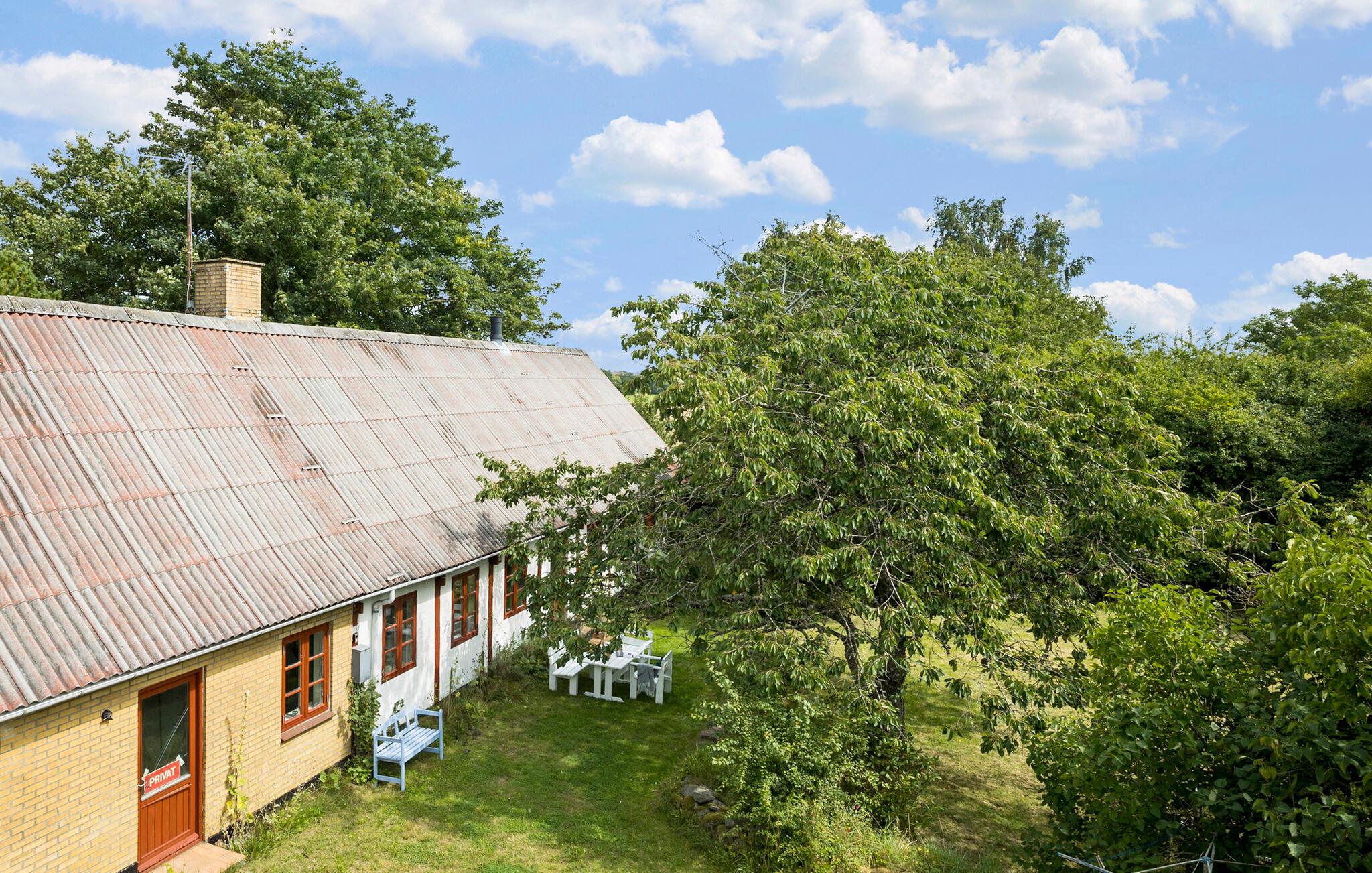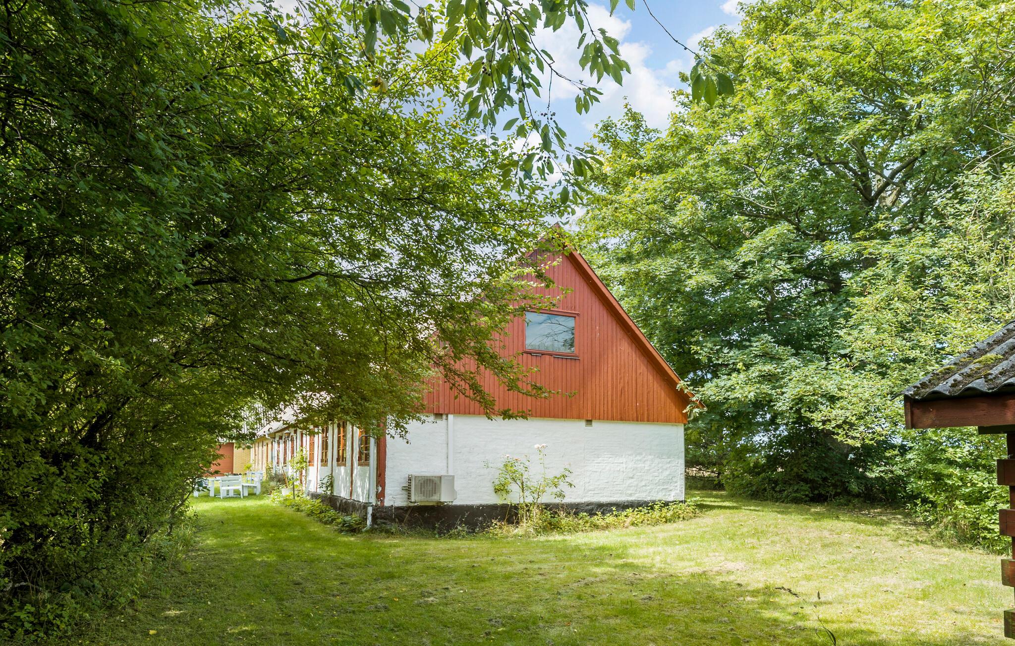 Velkommen til dette dejlige feriehus med historisk atmosfære. Det byder jer velkommen med en god planløsning og smagfulde rum med en lys indretning og lyse gulve og lofter. Her er nærmest helt hjemligt, og både store og små vil helt sikkert føle sig godt tilpas. Hobbykokke vil elske det store køkken-alrum, hvor der er masser af plads til at lave mad sammen. I er omgivet af natur, og i den grønne have kan I lege med jeres børn.