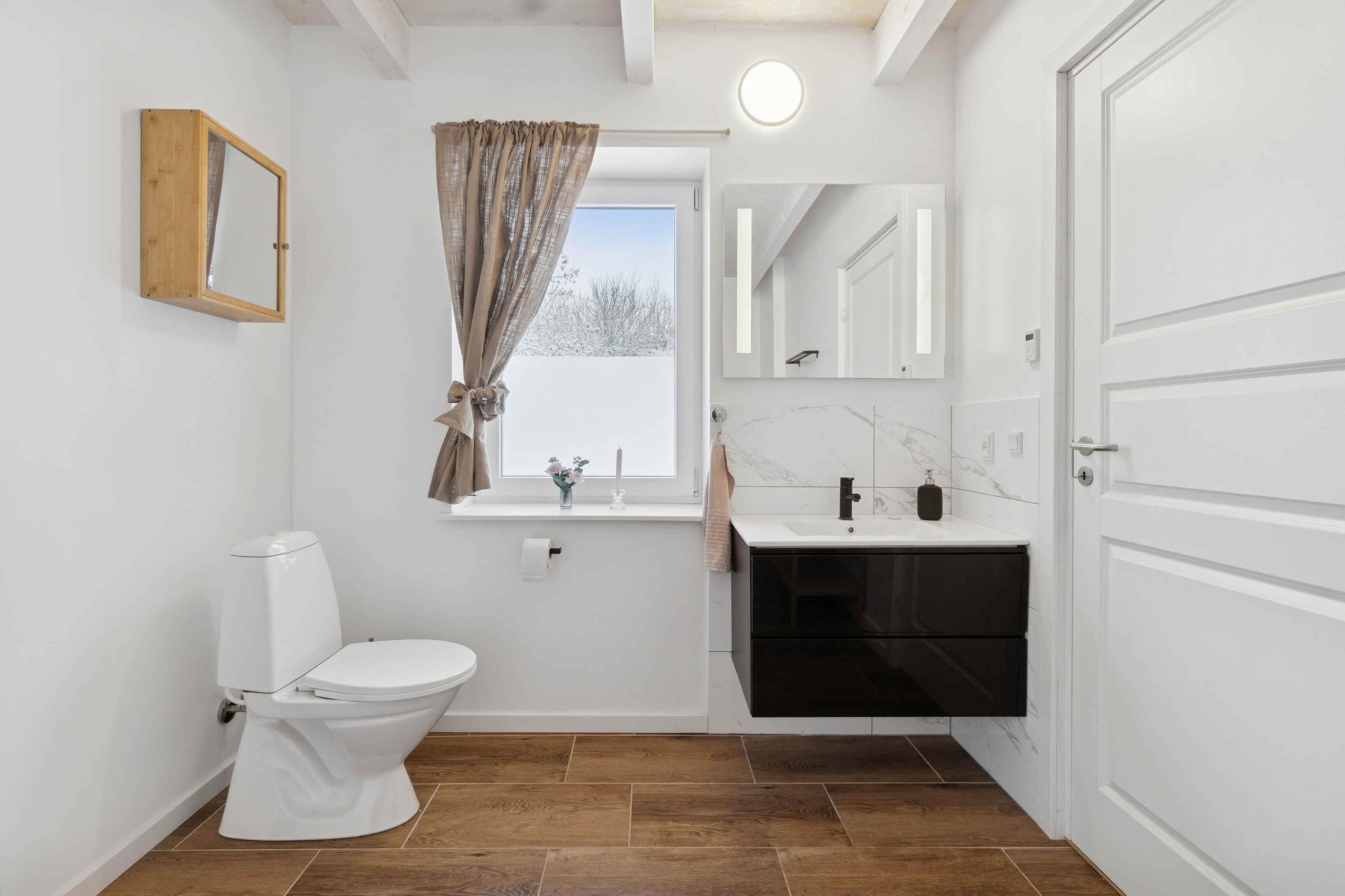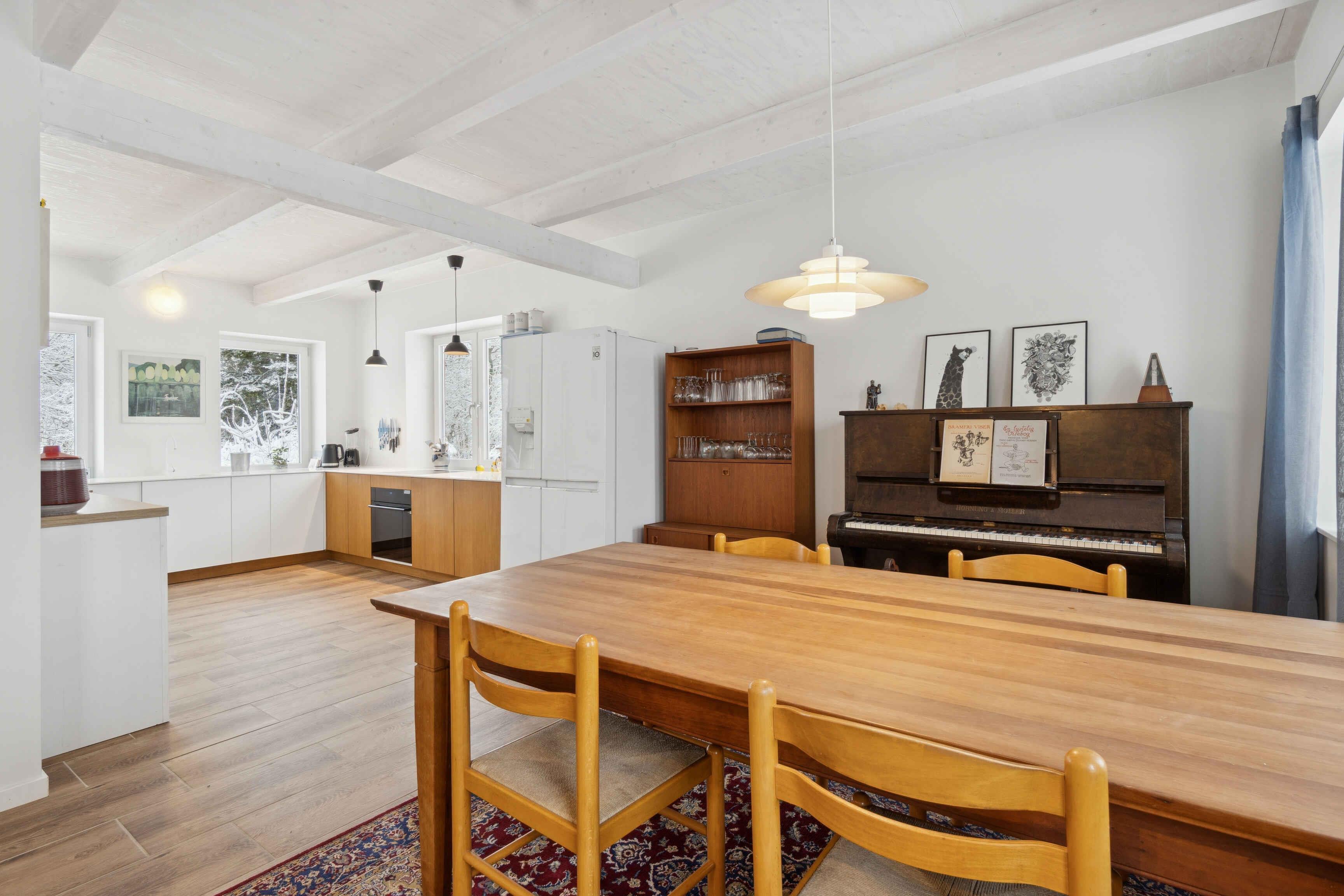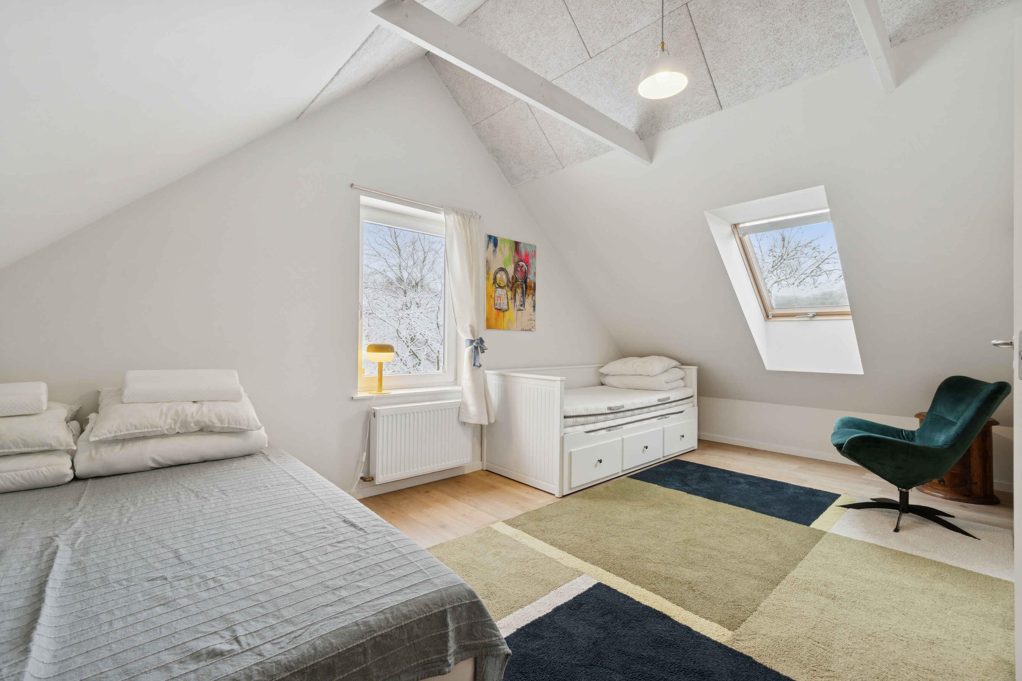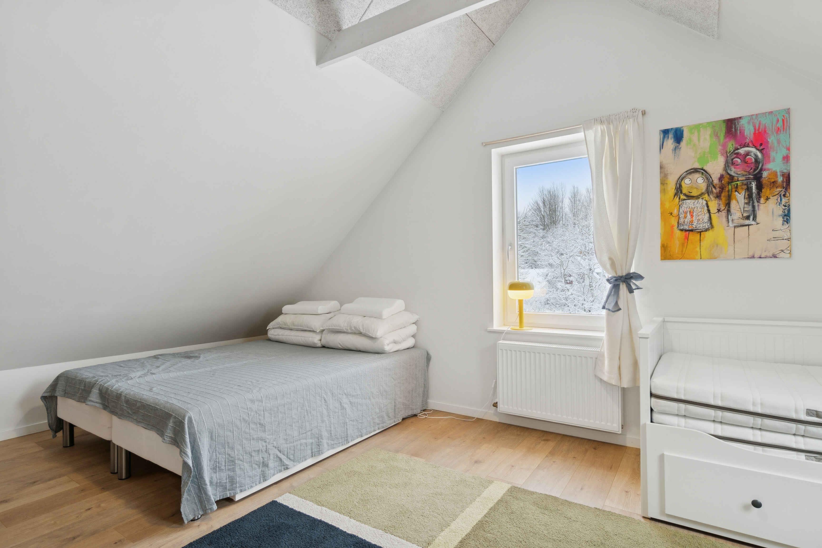 Dette charmerende fritidshus ligger i fredelige omgivelser tæt på Østermarie og er perfekt til familier og større grupper. Huset er på 162 m² fordelt over to plan og ligger på en stor, ugeneret grund på 5.000 m² med både have og skov – ideelt til leg, afslapning og privatliv. Boligen har tre soveværelser med op til 10 sengepladser samt to badeværelser, hvilket gør huset velegnet til flere familier. Bryggerset med vaskemaskine og tørretumbler gør ferien nem, og gulvvarmen i hele huset sikrer behagelig temperatur året rundt. Køkken-alrummet er husets hjerte og et naturligt samlingspunkt for madlavning, brætspil og hyggelige aftener. Stuen byder på legetøj til de mindste, klaver til fællessang og en stor pladesamling, så både børn og voksne kan nyde hyggestunder. Køkkenet er fuldt udstyret med opvaskemaskine og stort amerikansk køle- og fryseskab med isterninger og koldt drikkevand. Husets repos giver ekstra muligheder for afslapning og underholdning – her kan man se DVD, spille på PlayStation eller tilslutte sin computer via HDMI, så alle aldre kan nyde tid for sig selv eller sammen. Udendørs indbyder den store have og de grønne omgivelser til måltider under åben himmel, afslapning i solen eller stille stunder i skovkanten. Ejendommen har grill, bålsted, udendørs legetøj, havestole og solsenge, så udelivet let bliver en del af ferien. Huset ligger i et roligt område med gode vandre- og cykelmuligheder - kun 1 km fra Østermarie, hvor der ligger en velassorteret dagligvareforretning. Trods den landlige beliggenhed er der kun ca. 6 km til badestrande og de charmerende havnebyer Svaneke og Gudhjem med restauranter, kulturhuse, glaspusteri, biograf og svømmehal. Bornholms klipper, gårdbutikker og små kulturoplevelser nås hurtigt, og området byder også på lystfiskeri, naturfotografering og aktive udendørsoplevelser. Huset er røgfrit og husdyr er ikke tilladt, hvilket sikrer et rent og allergivenligt indeklima. Det rolige tempo gør det nemt at finde feriestemningen, samtidig med at øens attraktioner er let tilgængelige. Alt i alt er sommerhuset et oplagt valg for feriegæster, der ønsker rummelige, komfortable rammer i naturskønne omgivelser – en feriebolig med plads til nærvær, ro og oplevelser.