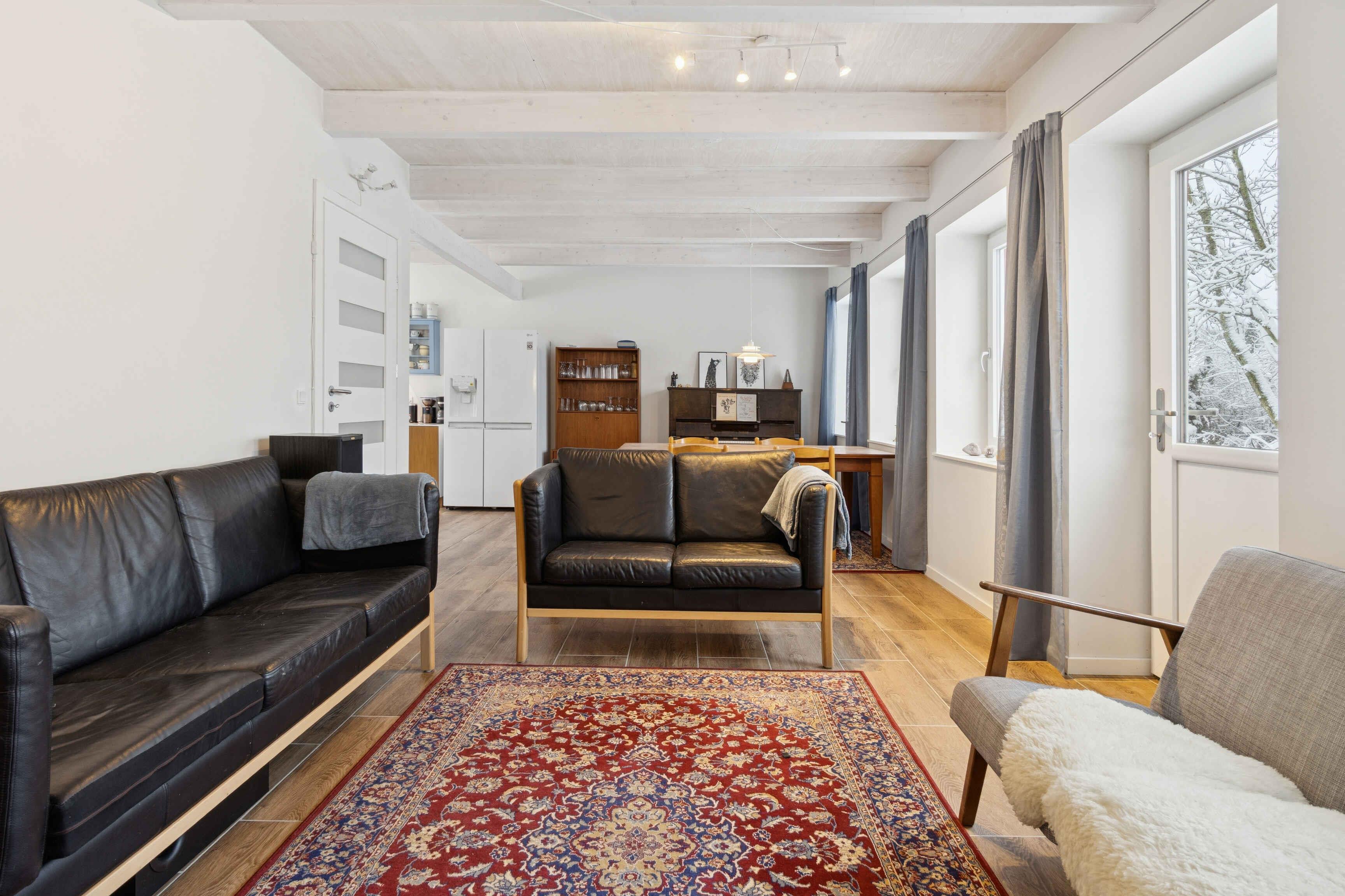 Charmerende fritidshus på 162 m² med stor have og skovgrund nær Østermarie. Tre soveværelser, to badeværelser, gulvvarme og fuldt køkken. Udendørs grill, bålsted og rolige omgivelser – kun 6 km fra strand og Bornholms havnebyer.