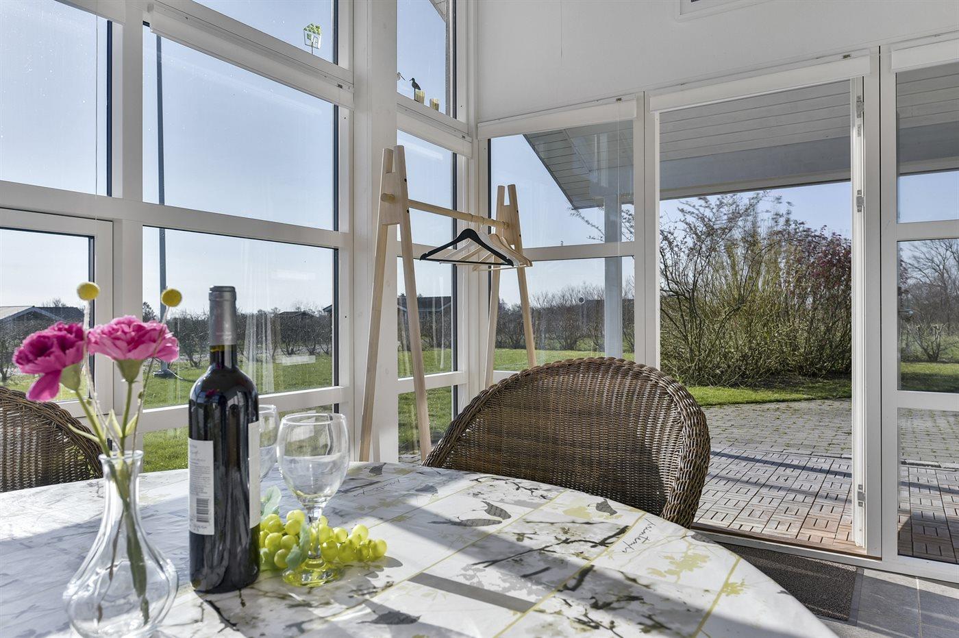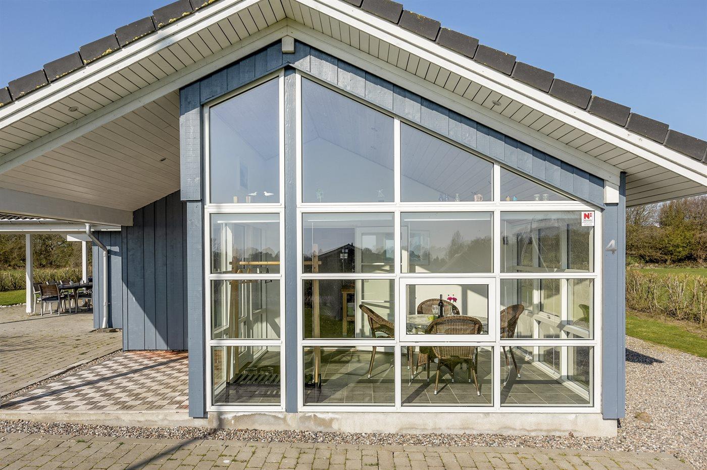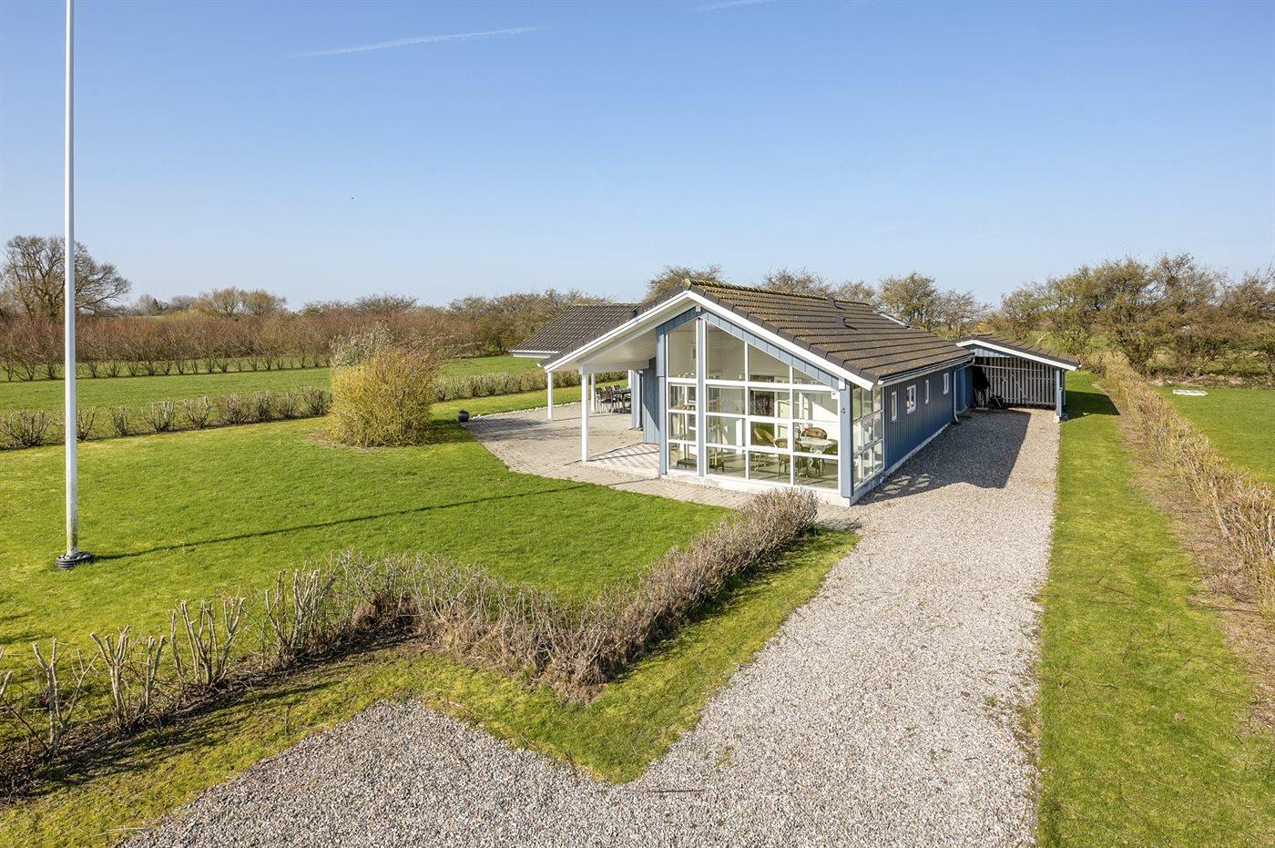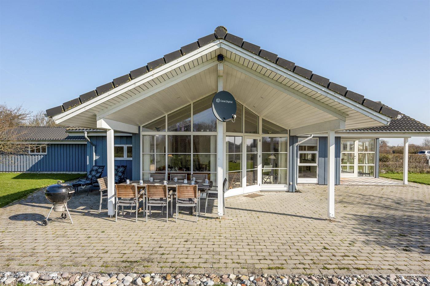 Ferieboligen er beliggende på en 1208 m² stor havegrund. Der er 600 m til havet. Nærmeste forretning er beliggende i en afstand af 6000 m. Der er en golfbane i en afstand af 2000 m. Til ferieboligen hører 50 m² terrasseareal. Desuden er der 20 m² overdækket terrasse. Ligeledes er der adgang til udestue. Gynge. Sandkasse. Grill til rådighed. Udendørs fiskerenseplads med bord og vask. Der er carport til rådighed. Parkering ved ferieboligen.