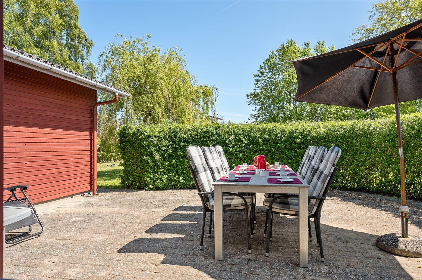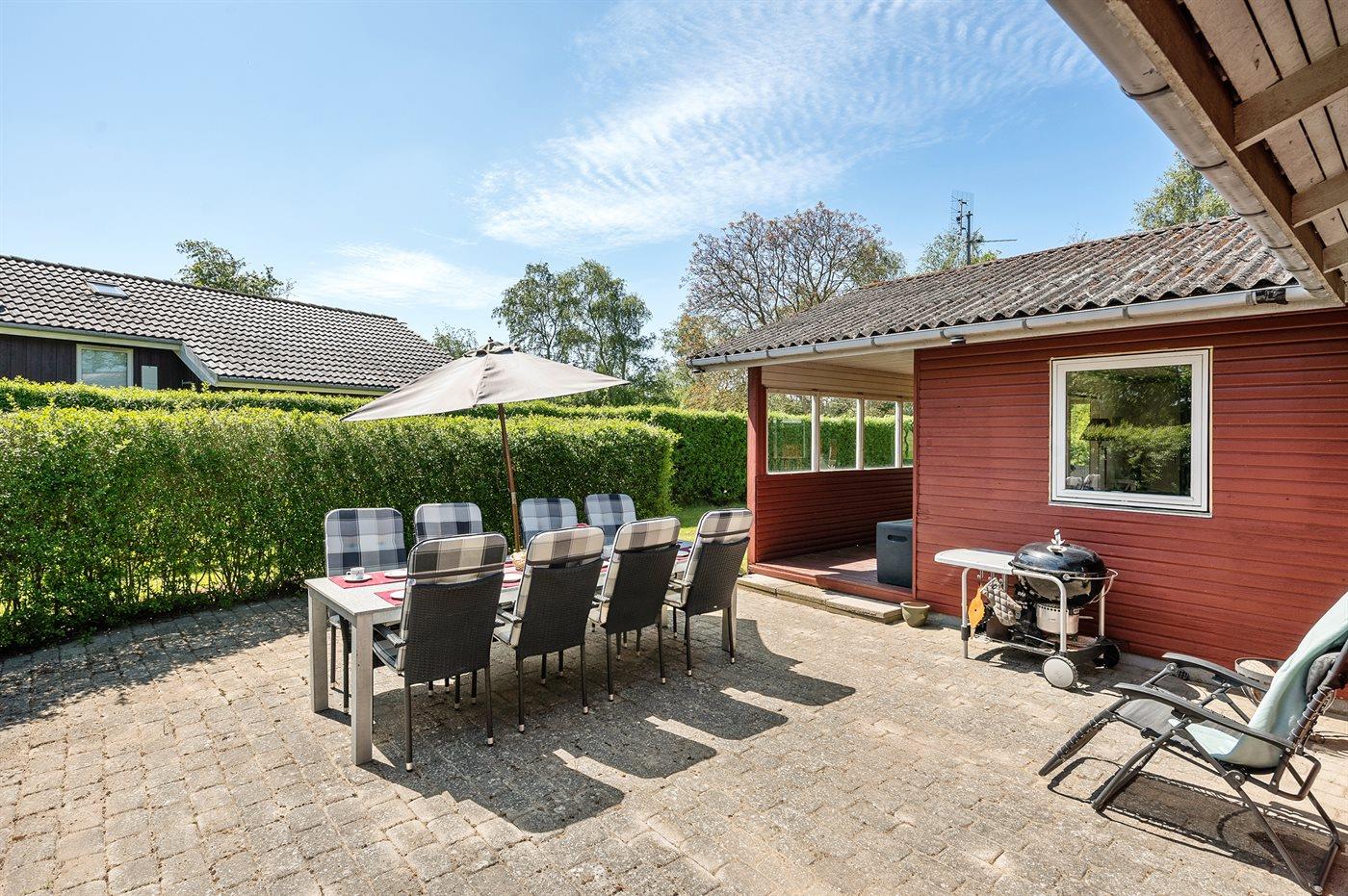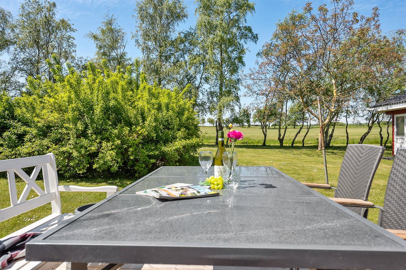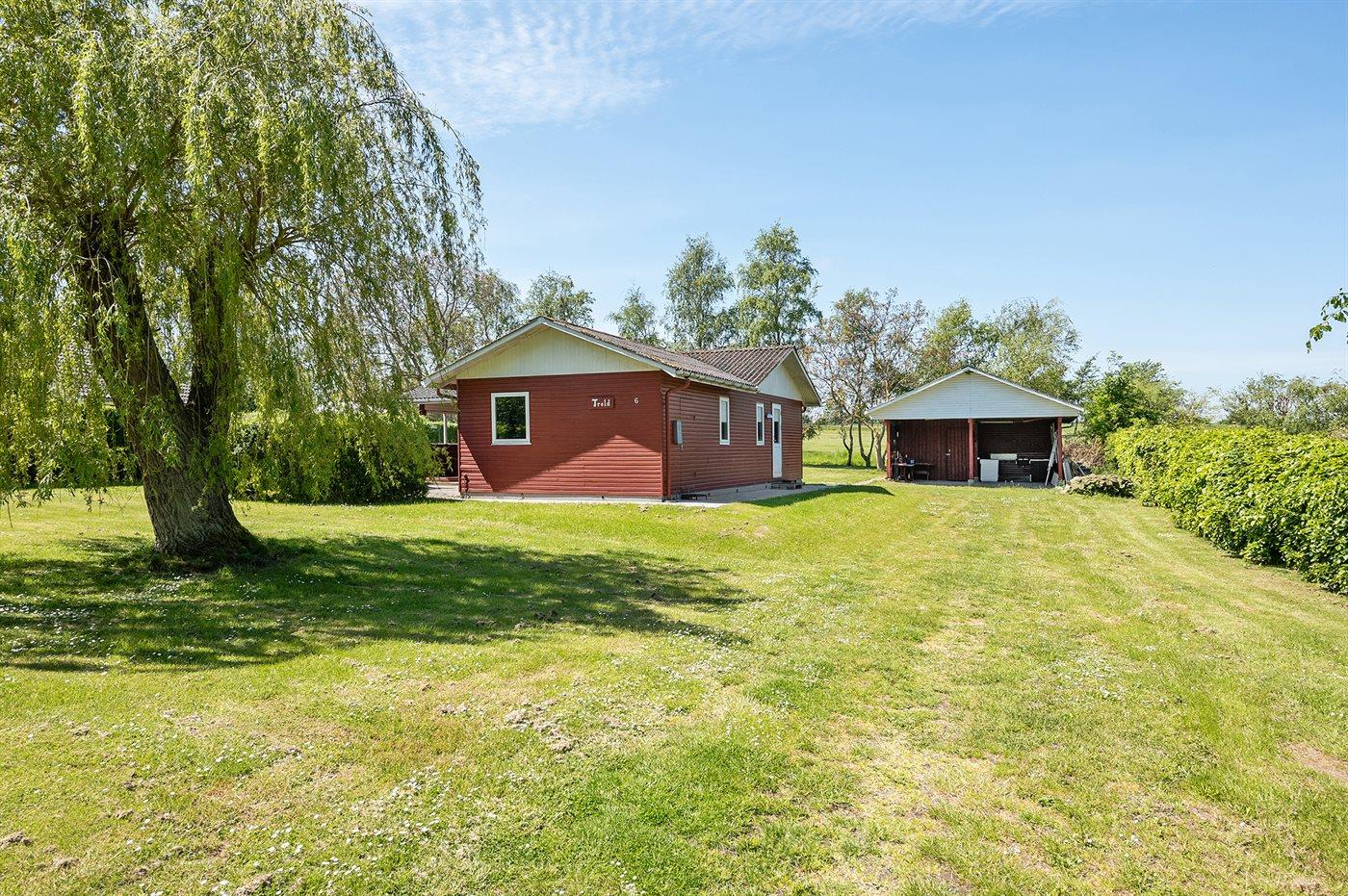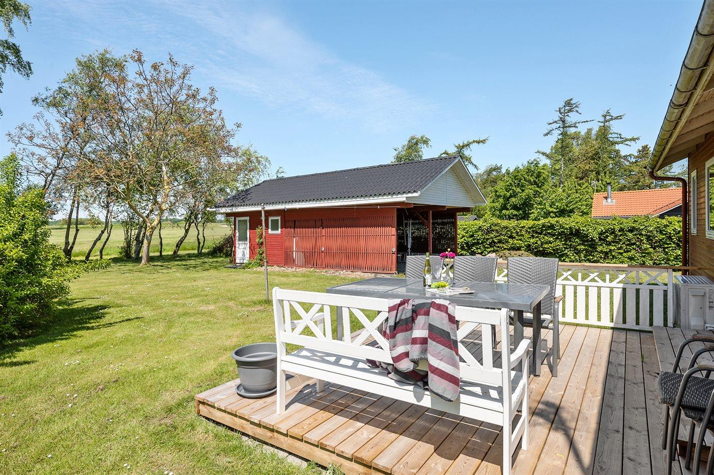 Ferieboligen er beliggende på en 1180 m² stor havegrund. Der er 570 m til havet. Nærmeste forretning er beliggende i en afstand af 4800 m. Der er en golfbane i en afstand af 50 m. Til ferieboligen hører åbent terrasseareal. Desuden er der overdækket terrasse. Grill til rådighed. Der er carport til rådighed. Parkering ved ferieboligen.