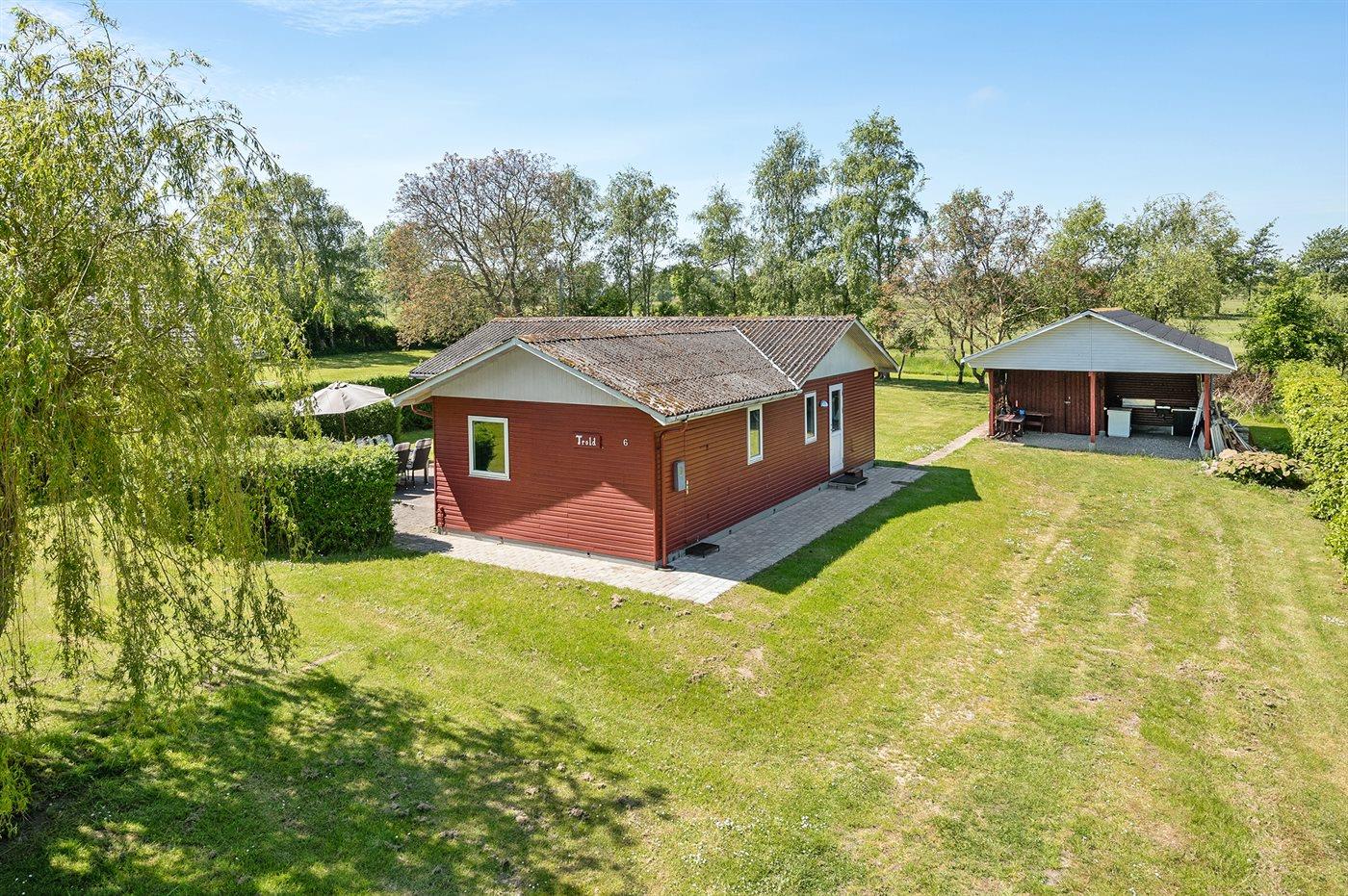 Hyggeligt sommerhus ved golfbane i Humble med stor have og anneks til afslapning.