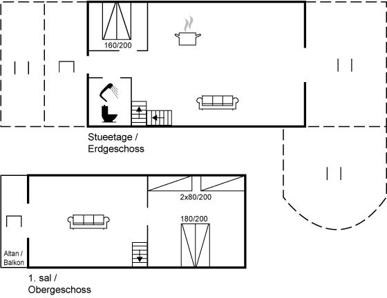 Der er i alt 2 soveværelser. Sovepladserne fordeler sig på: 4 sovepladser i dobbeltsenge. 2 sovepladser i enkeltsenge.