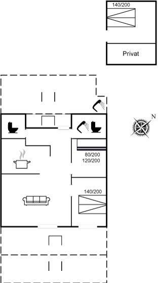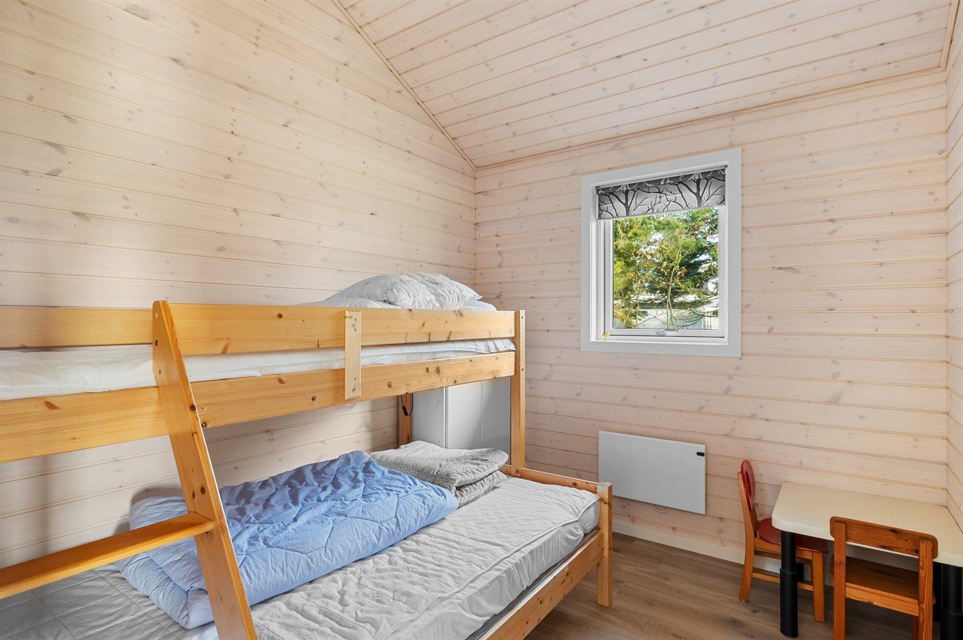 Der er i alt 3 soveværelser. Sovepladserne fordeler sig på: 4 sovepladser i dobbeltsenge. 3 sovepladser i køjesenge. 2 sovepladser på madrasser. 2 af disse sovepladser befinder sig i et anneks og 2 af dem befinder sig på hemsen. Derudover er der 1 stk. barneseng.