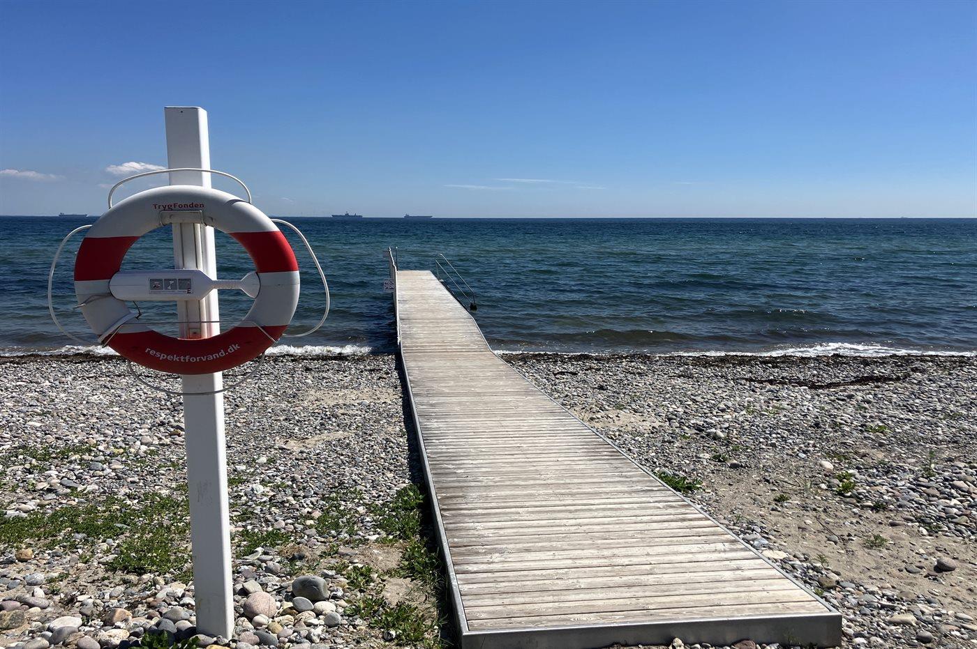 Huset ligger ugenert for enden af lukket vej, og der er fra haven direkte adgang til grønt område og fællesområde med bl.a. legeplads og borde/bænke ved stranden. Ved stranden er der i sommerhalvåret opsat både badebro og flydebro til både. Der er ved stranden mulighed for at sætte båd i vandet via rampe.