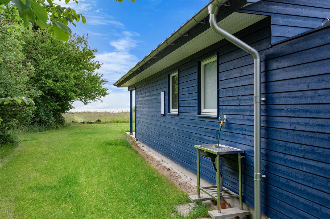 Flot nybygget sommerhus (2024) med en skøn beliggenhed lige ud til grønt område og stranden. Fra både huset og terrassen er der udsigt ud over Langelandsbæltet.