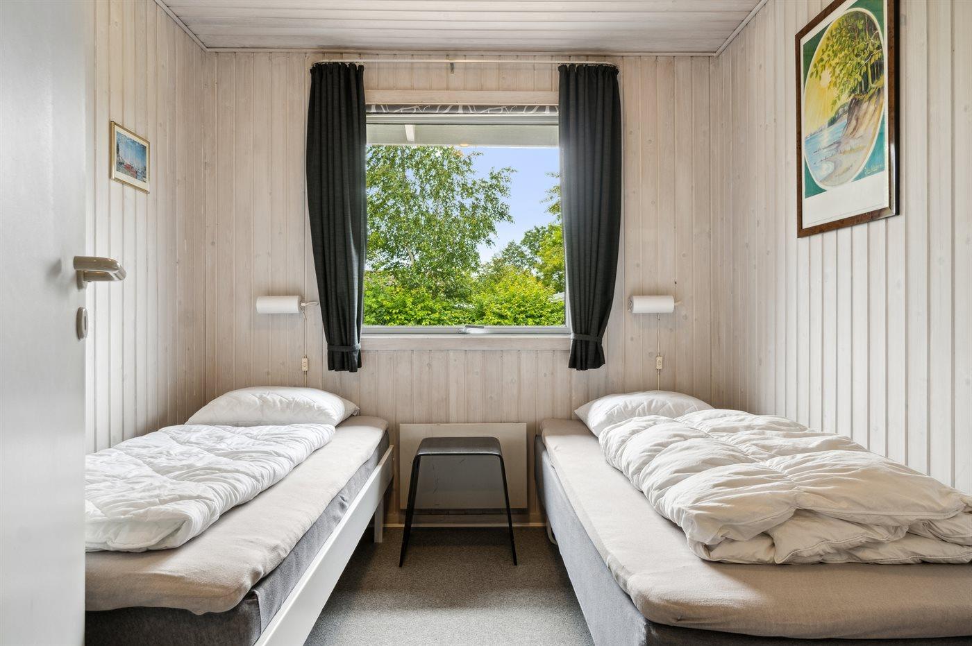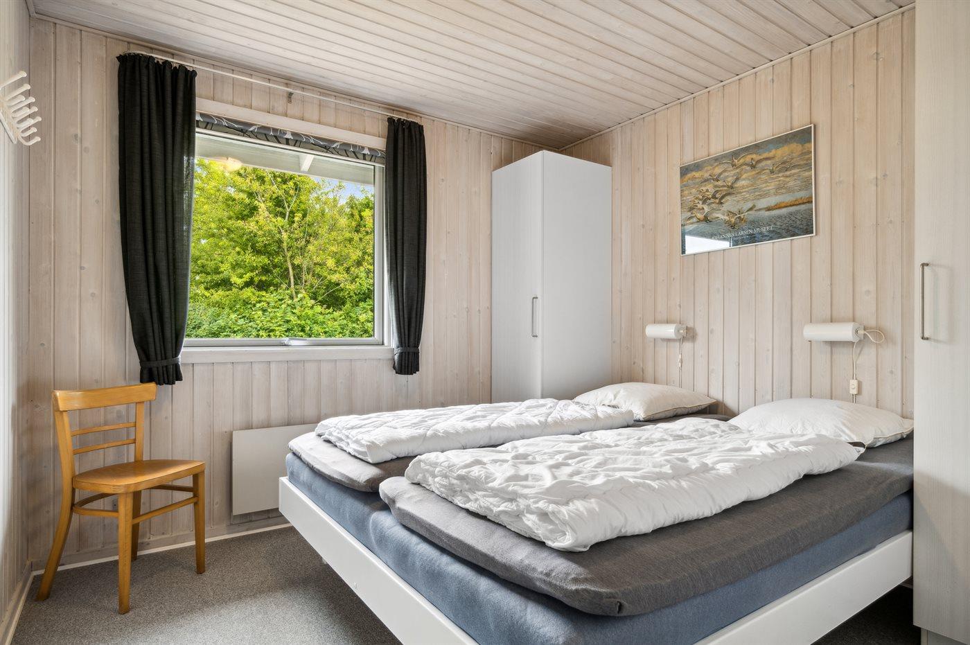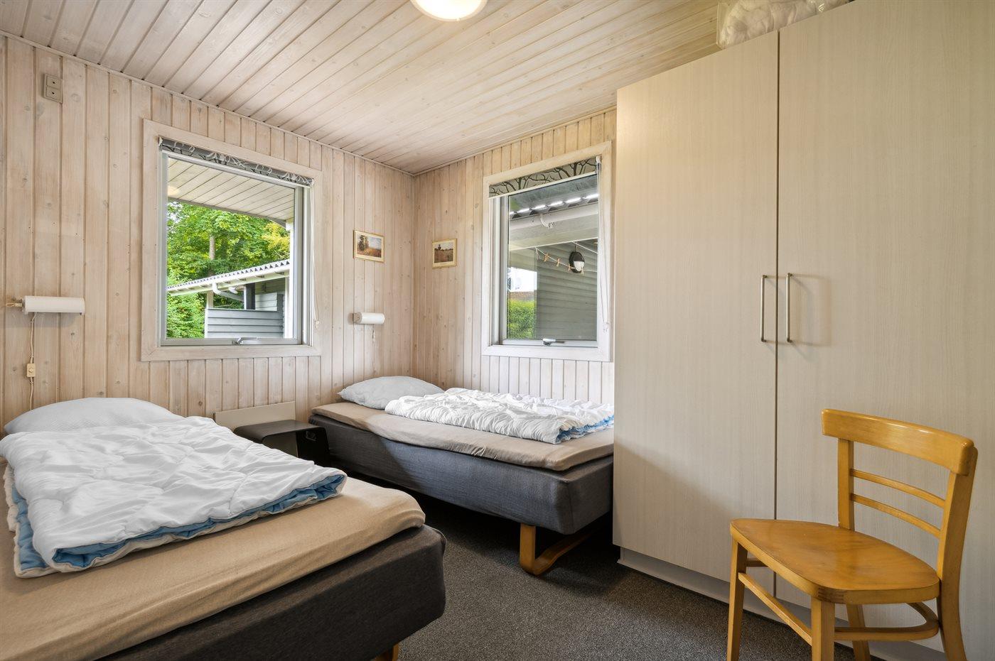 Der er i alt 4 soveværelser. Sovepladserne fordeler sig på: 4 sovepladser i dobbeltsenge. 4 sovepladser i enkeltsenge. Derudover er der 1 stk. barneseng.