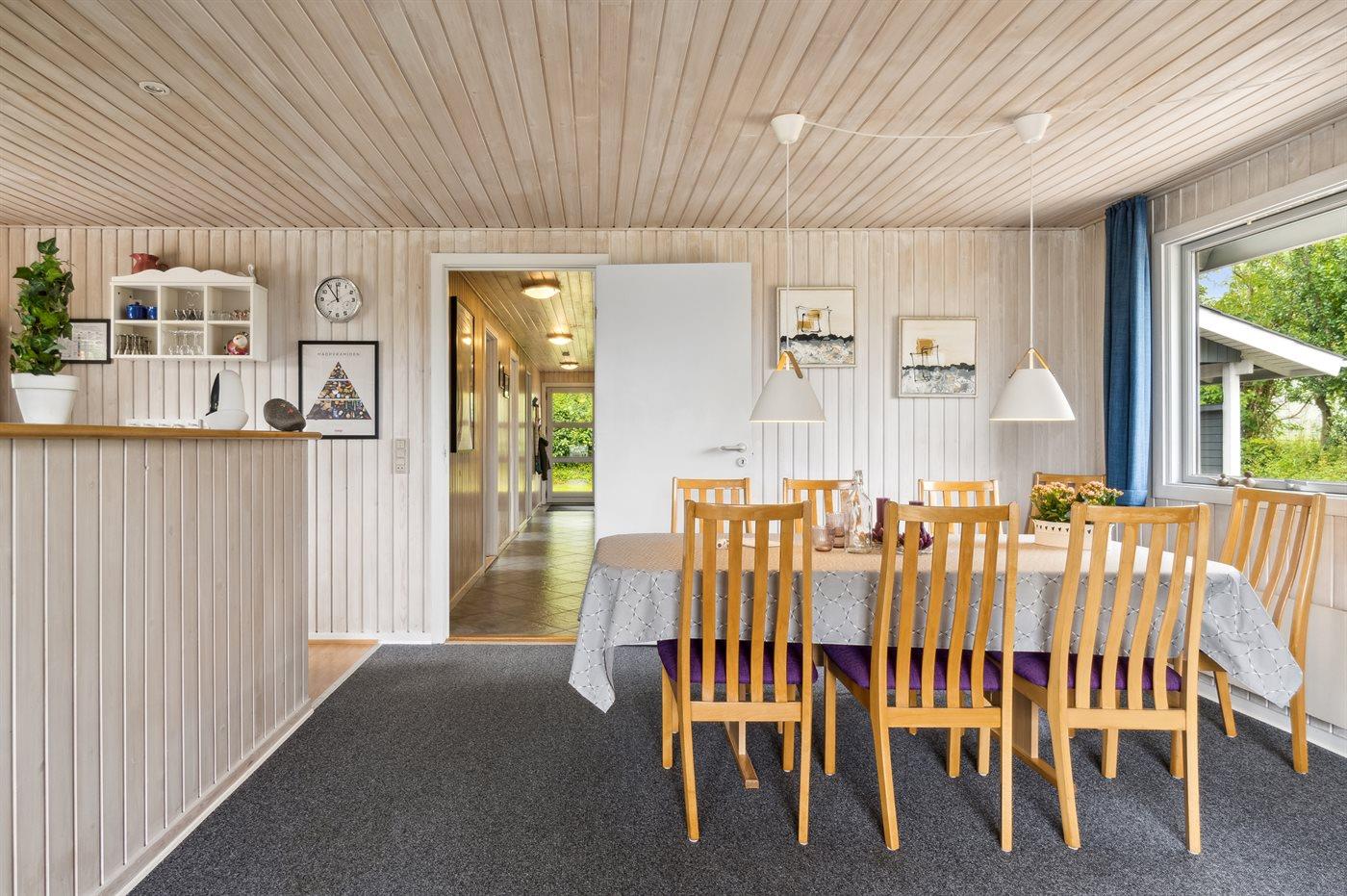 Sommerhuset egner sig til 8 personer samt 1 barn op til 3 år. Ferieboligen er på 102 m² og er bygget i 1972. I 1994 gennemgik ferieboligen en renovering. I 2021 gennemgik ferieboligen en delvis renovering. Det er tilladt at medbringe 1 husdyr. Ferieboligen er udstyret med 1 energibesparende luft til luft varmepumpe. Ferieboligen har vaskemaskine. Tørretumbler. Frysekapacitet på 100 liter. Der er desuden brændeovn. Til de små er der 1 stk. barnestol.