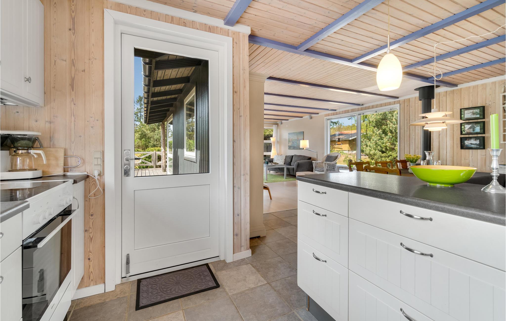 Velholdt og flot renoveret feriehus med en pragtfuld stor opholdsstue med komfortable møbler og udgang til en skøn, stor træterrasse. Huset indeholder også et lyst og moderne åbent køkken samt 3 hyggelige soveværelser og et lyst badeværelse med fliser. I kan nyde de mange feriestunder på husets 2 dejlige terrasseområder. Selve omegnen er meget børnevenlig og ligger tæt ved den dejlige sandstrand. Fra feriehuset er der havkig, og I har også kort afstand til det hyggelige fiskerleje 'Bakkene Havn' og Bakkerøgeriet, hvor der kan købes lækre bornholmske fiskespecialiteter. Et hyggeligt og velindrettet feriehus - uanset årstid.