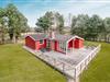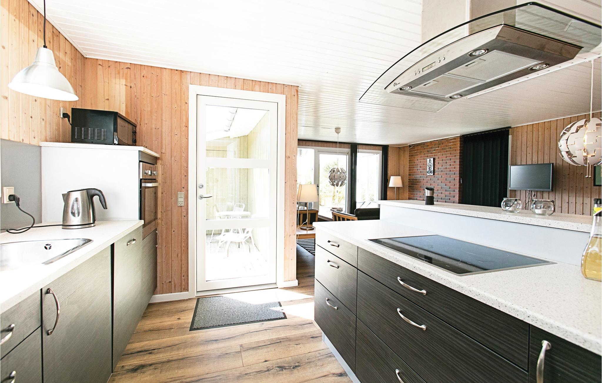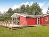 Hyggeligt træsommerhus nær strand med moderne køkken, stor terrasse og brændeovn i Aakirkeby.