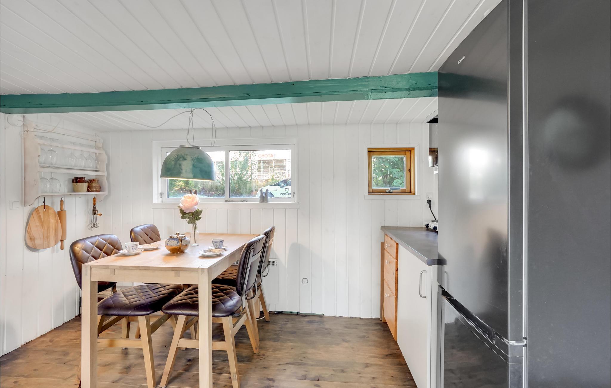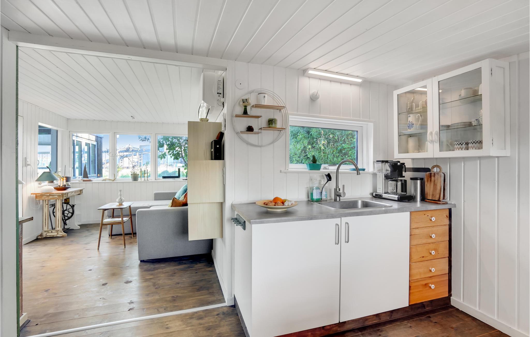 Bemærk venligst, at der er skrå lofter i køkkenet, hvilket betyder, at loftshøjden visse steder kun er 1,70 meter.
