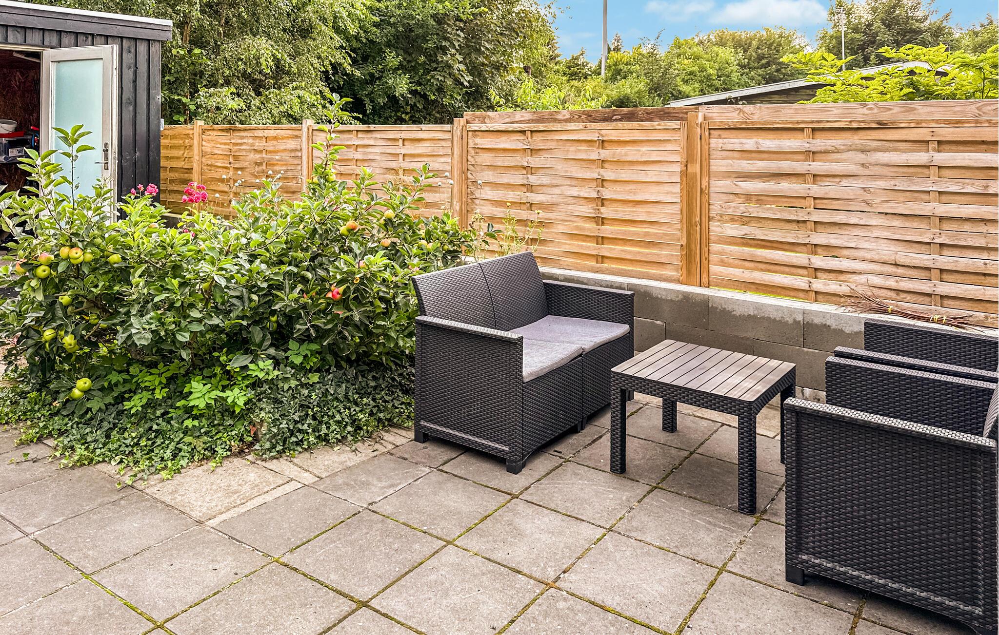 Dæk op på terrassen til feriens måltider og gør klar til lækre grillmiddage om aftenen. Vejen bagved huset er traffikeret, men når I sidder på den store hyggelige terrasse og kigger på vandet, flyttes fokus automatisk.