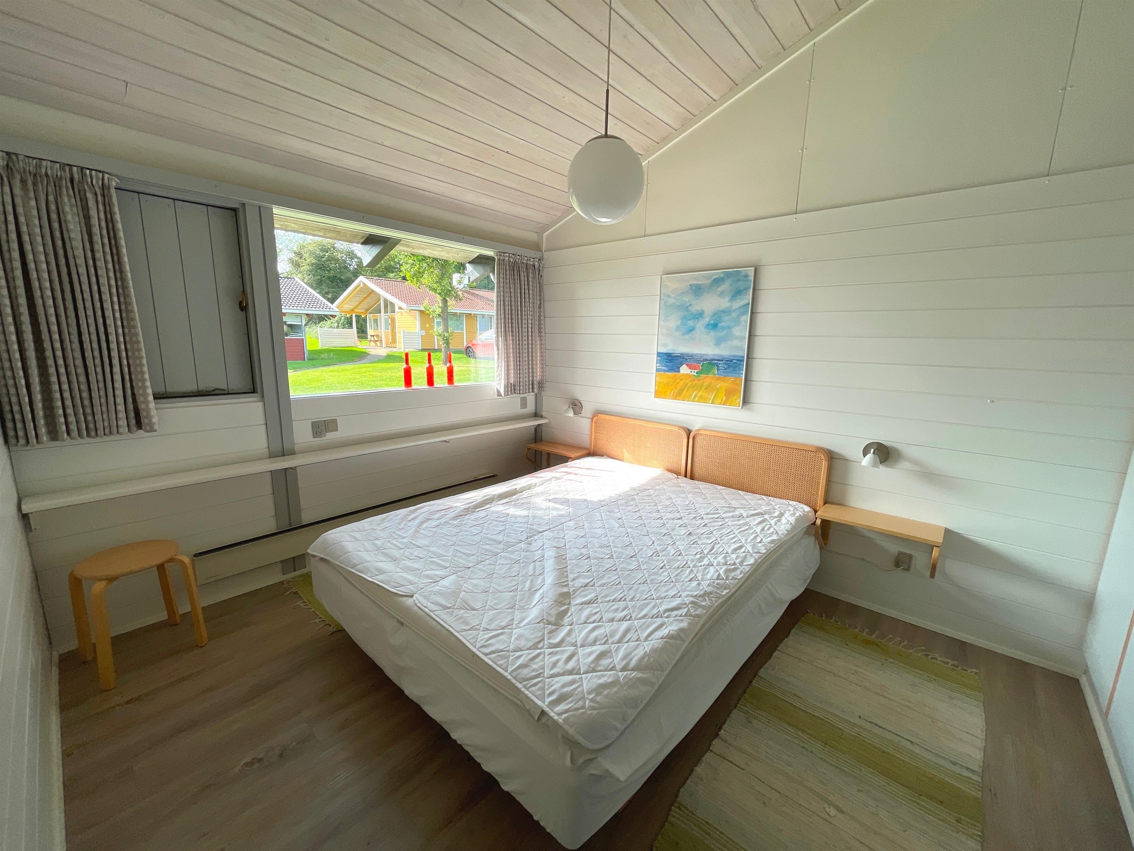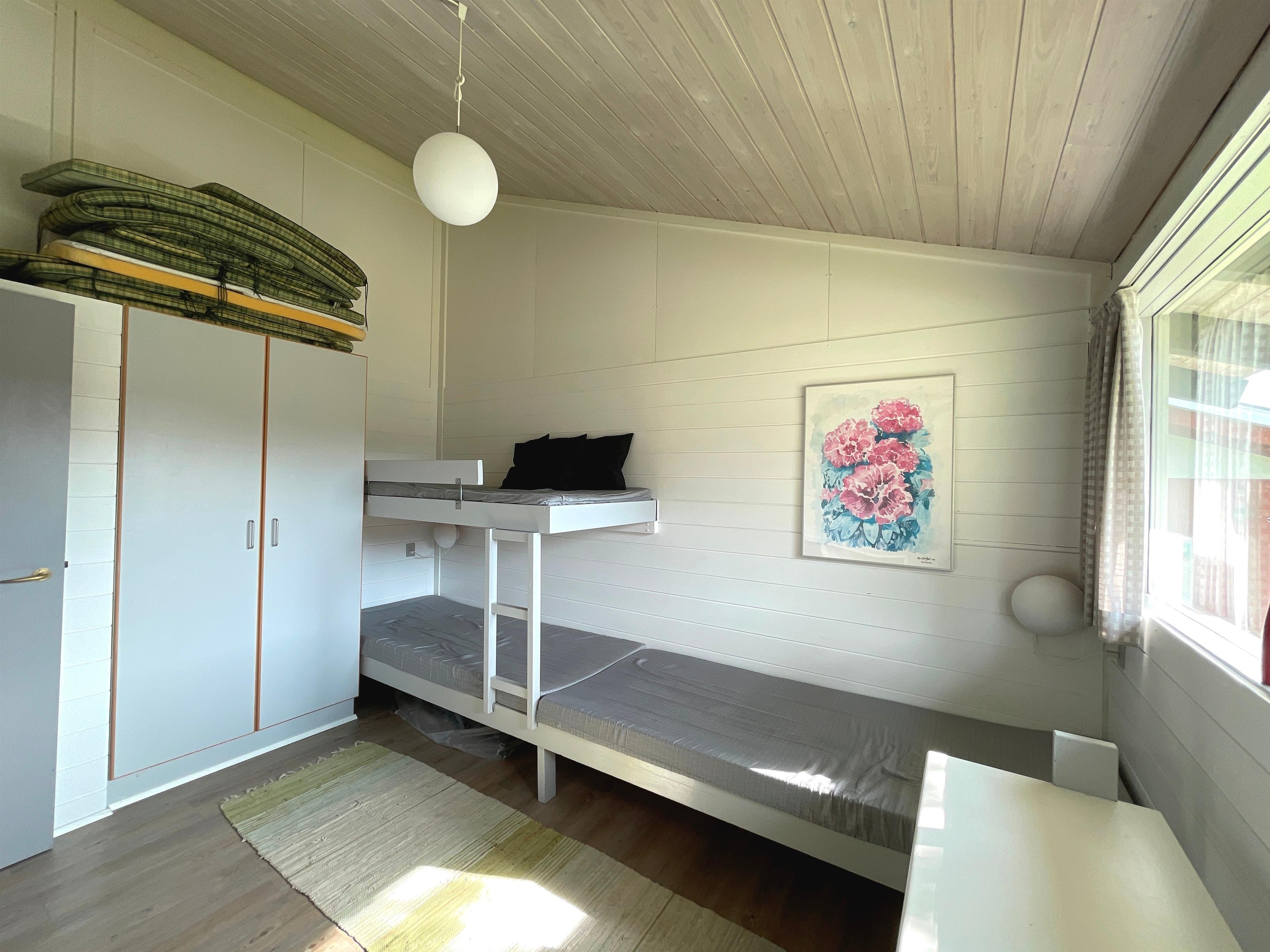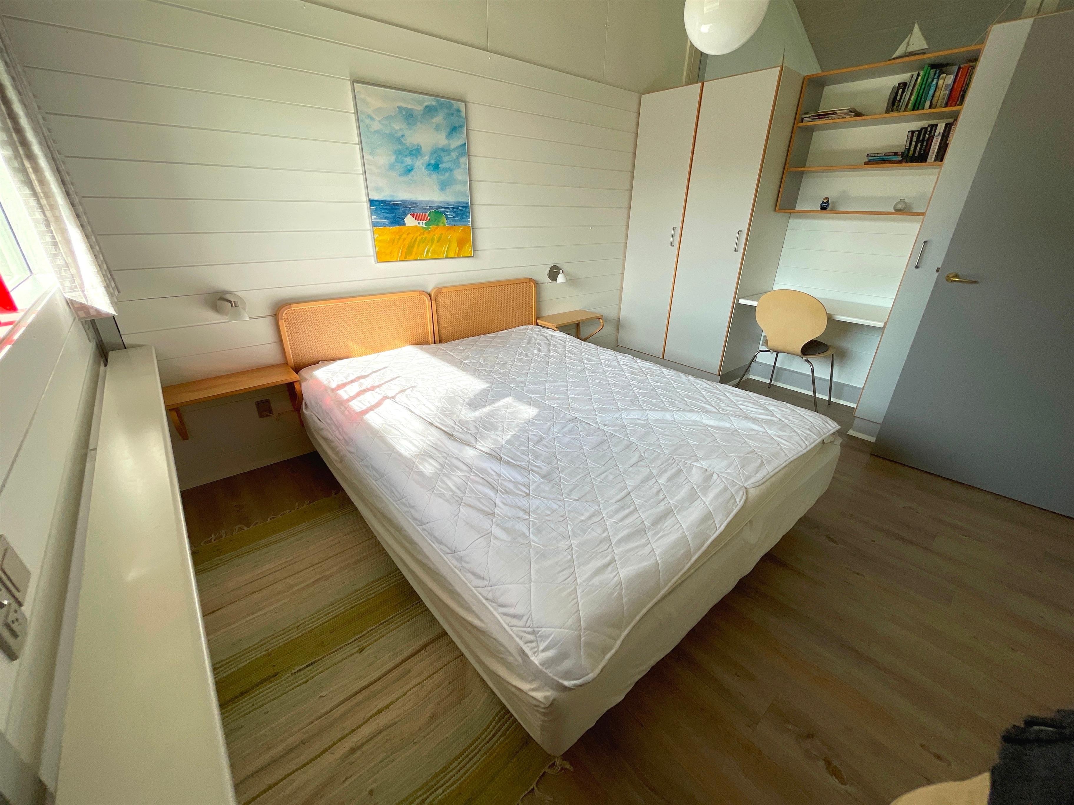 Insgesamt verfügt das Ferienhaus über fünf Schläfplätze verteilt auf Schlafzimmer mit Doppeltbett, Zimmer mit drei Betten, davon ein Etagenbett. Badezimmer mit Dusche und Fussbodenheizung.