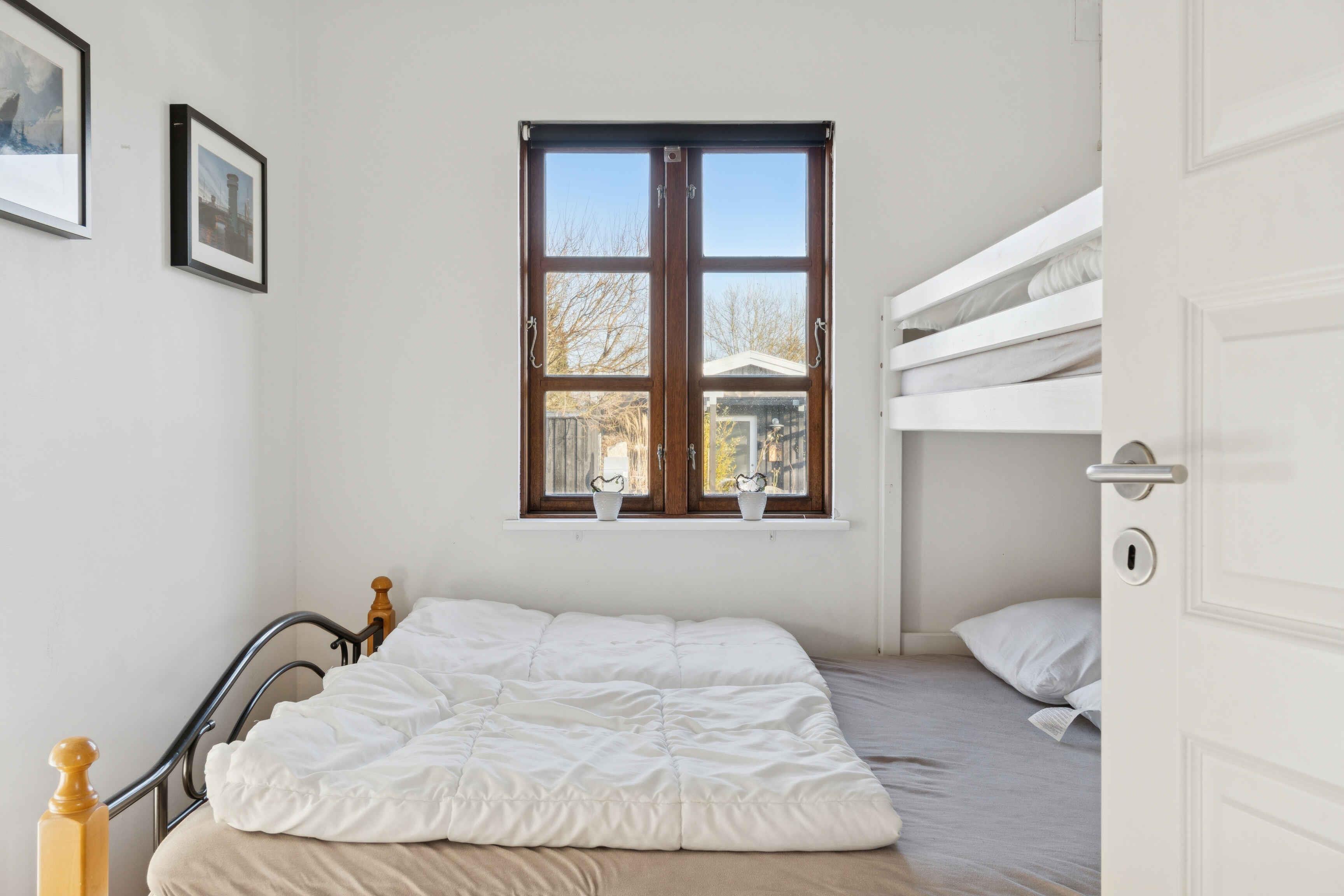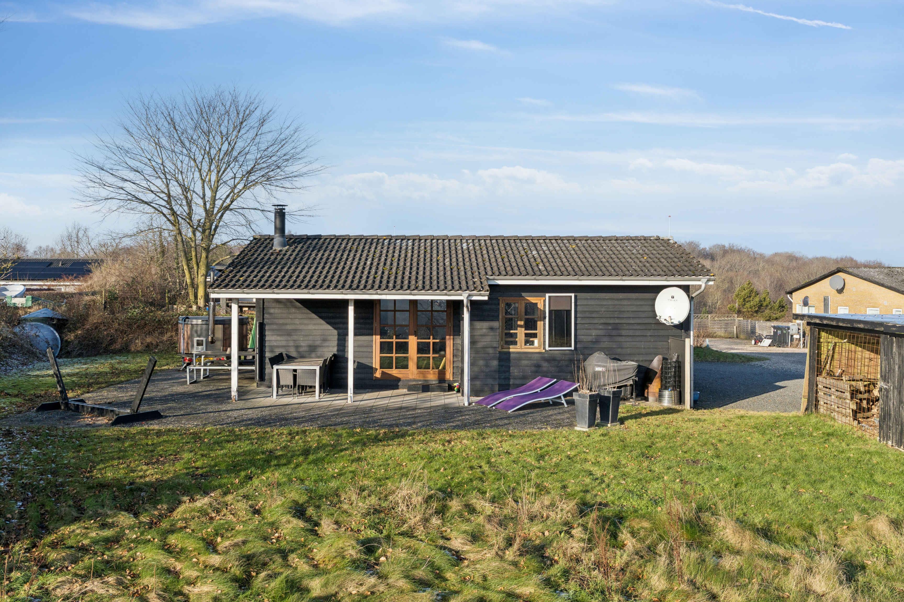 Moderne sommerhus på 75 m² med plads til 4. To soveværelser. Hyggelig stue med brændeovn og Chromecast. Solarium. Fuldt udstyret køkken, have med bålplads og shelter. 500 m til strand og skov.