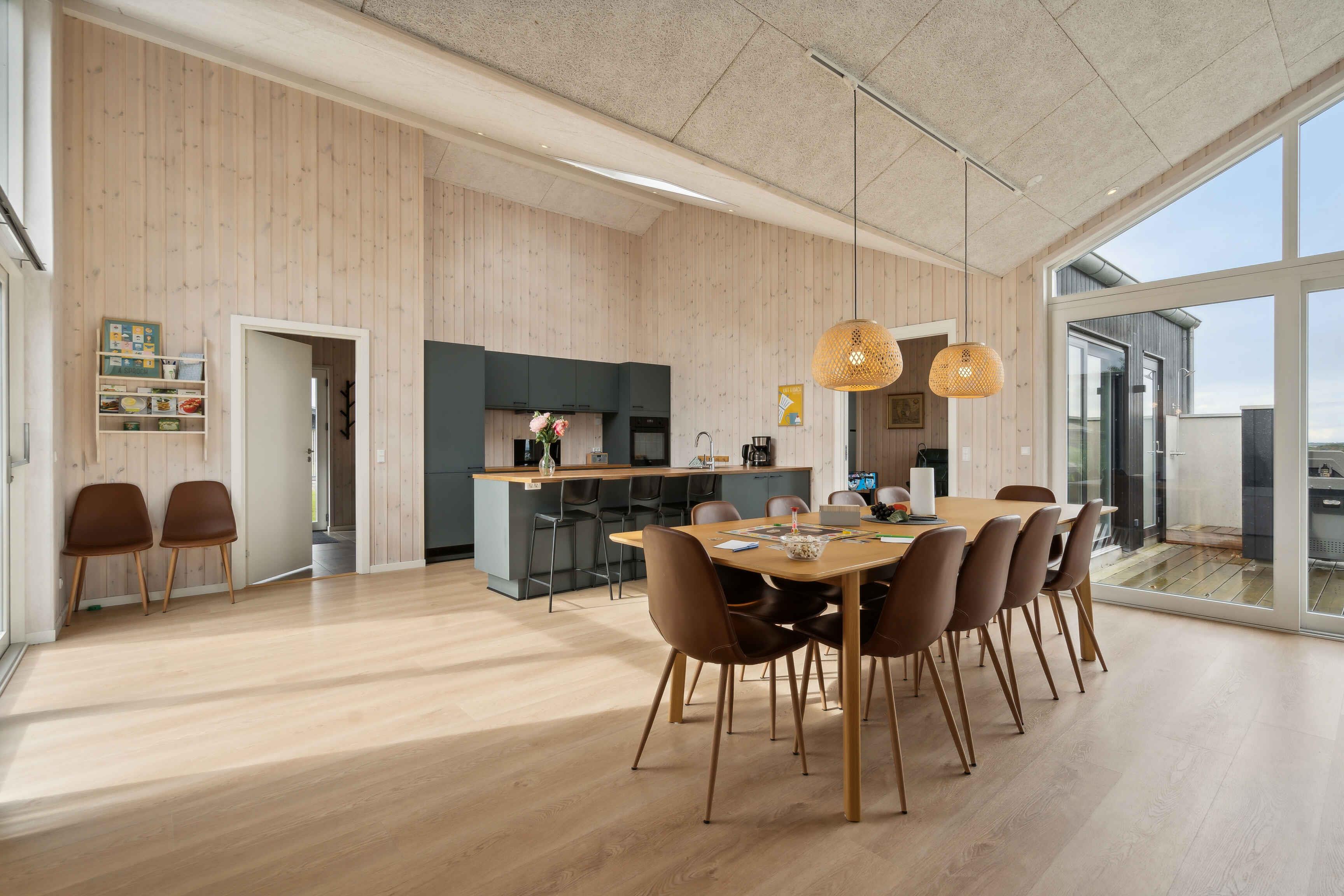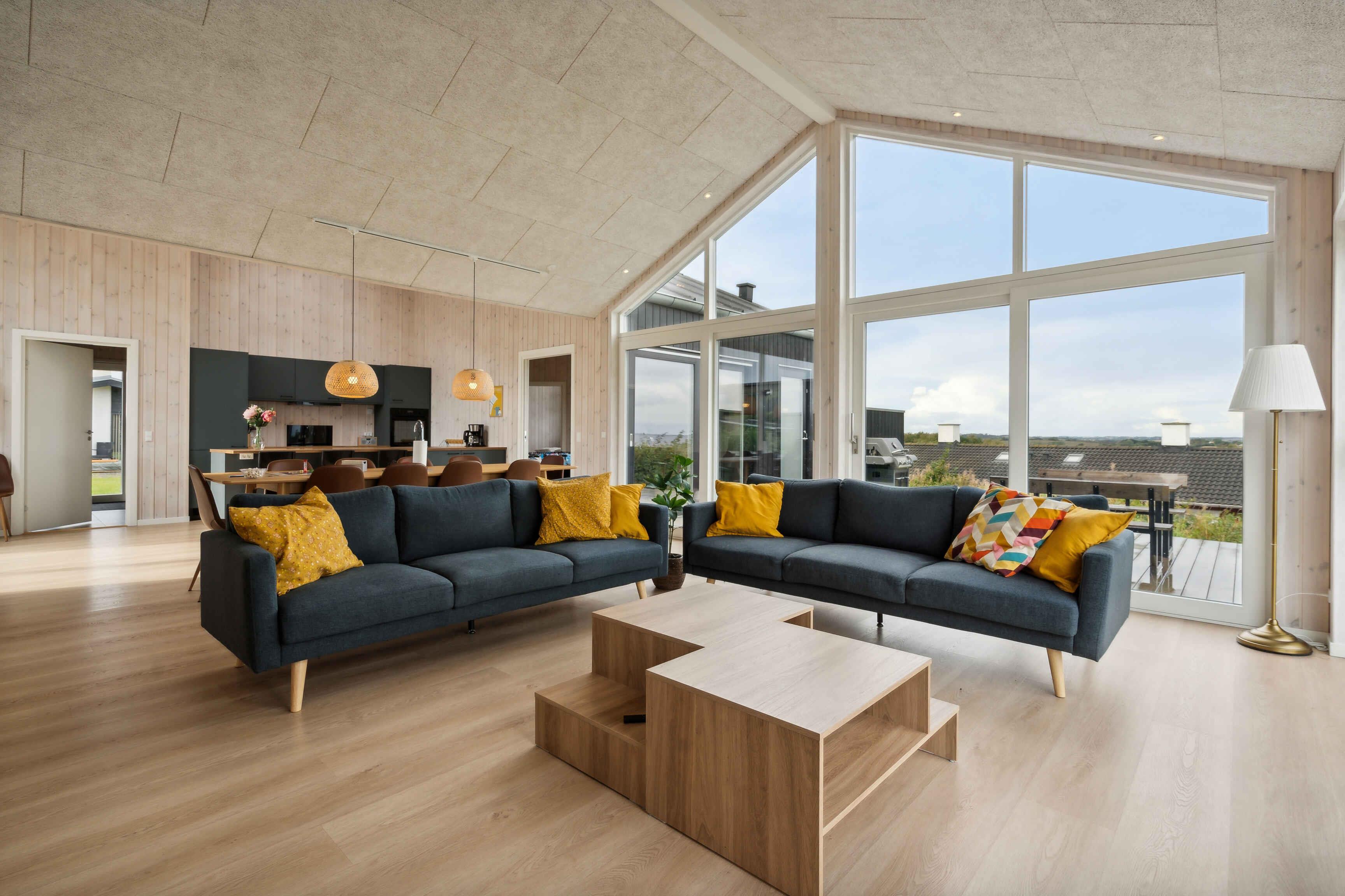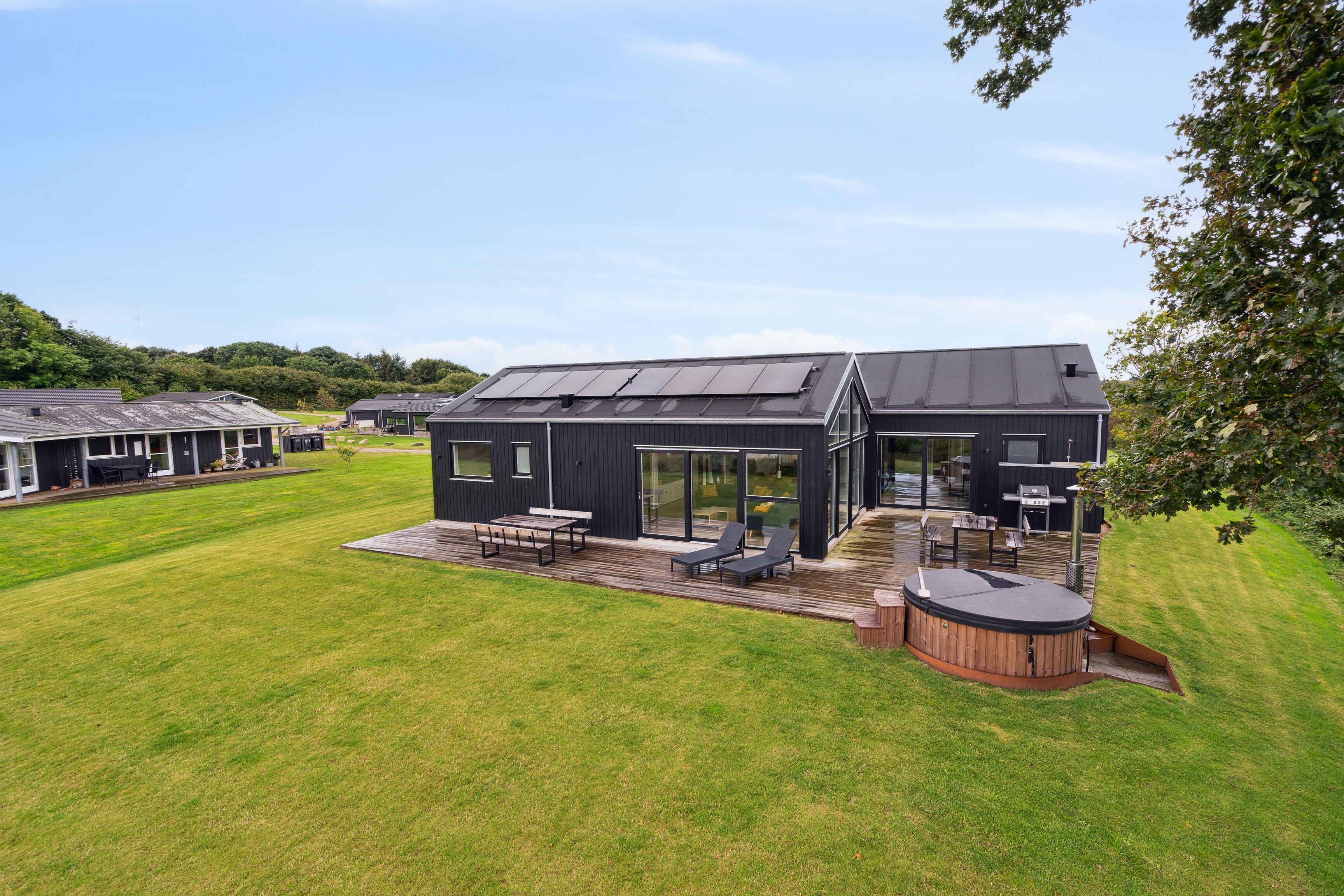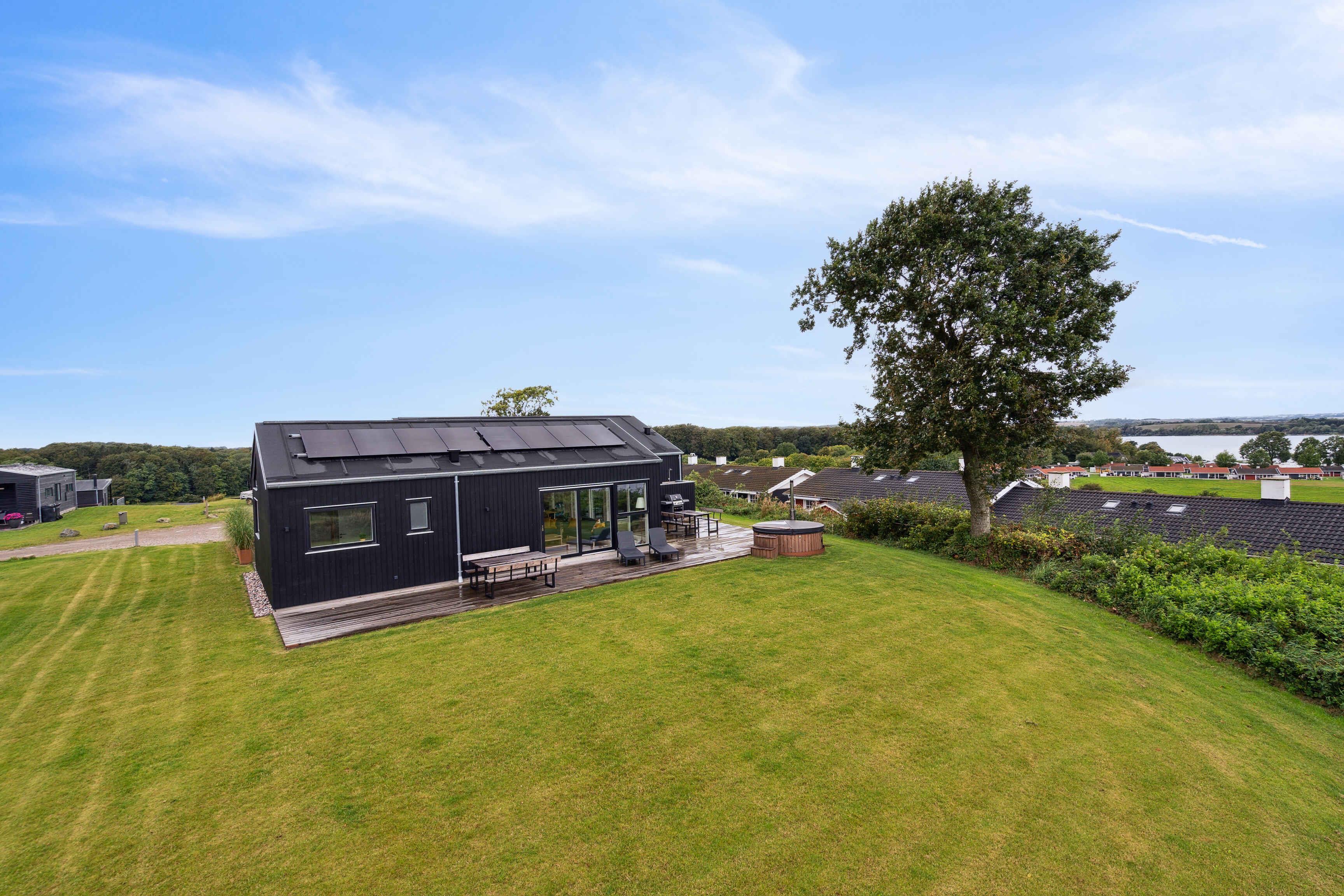 Nybygget lækkert sommerhus fra 2023. Nyd den fantastiske havudsigt fra stuen, køkkenet, terrassen eller fra vildmarksbadet. Tæt på skov og strand. Med plads til 4-12 personer.