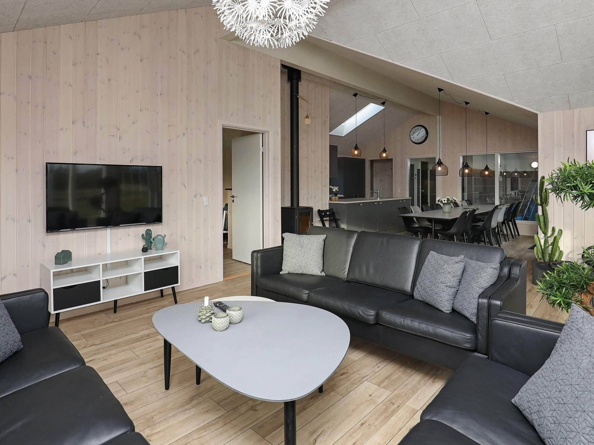 Huset er yderst rummeligt og veldimensioneret og bygget op omkring to separate soveafdelinger. Hver afdeling har et badeværelse og ekstra badeværelse i forbindelse med poolafdelingen. Spise-/opholdsrum er smagfuldt indrettet med stereoanlæg med cd-afspiller, tv, dvd-afspiller, høj barnestol, sofaafdeling og brændeovn.