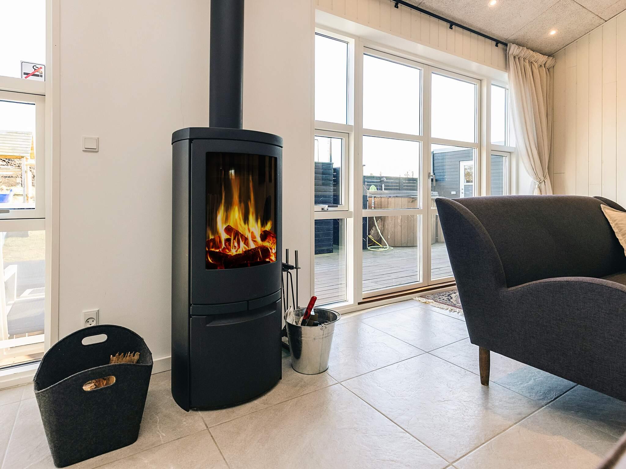 1 Opholdsstue: Brændeovn, tv, Bluetooth