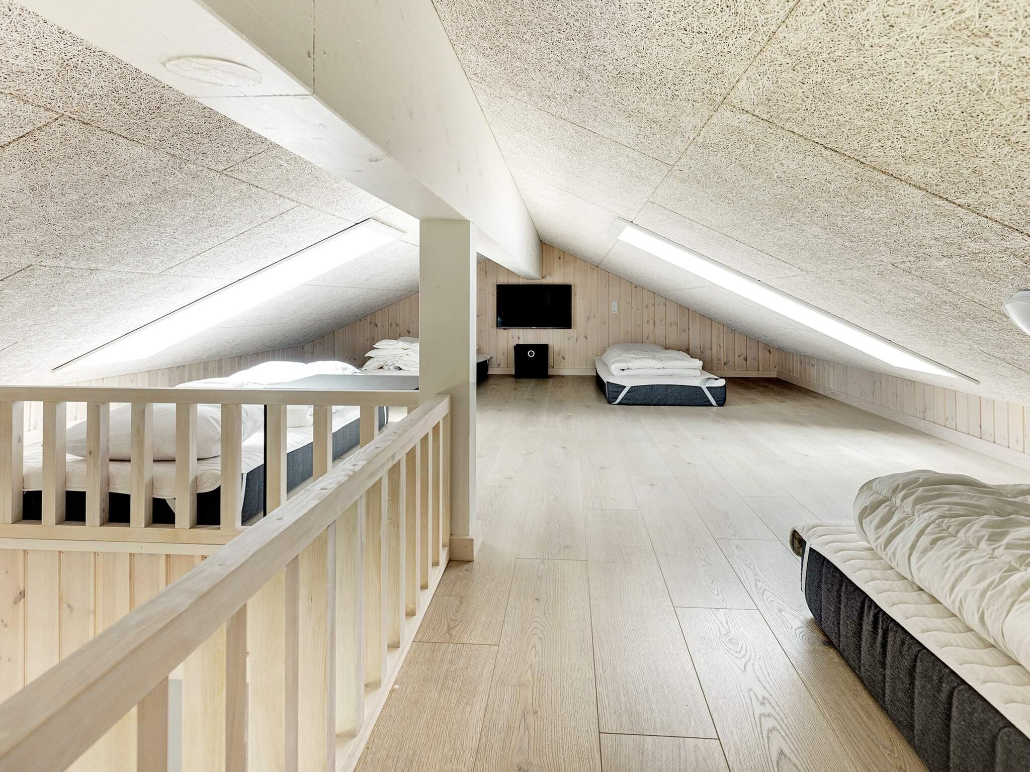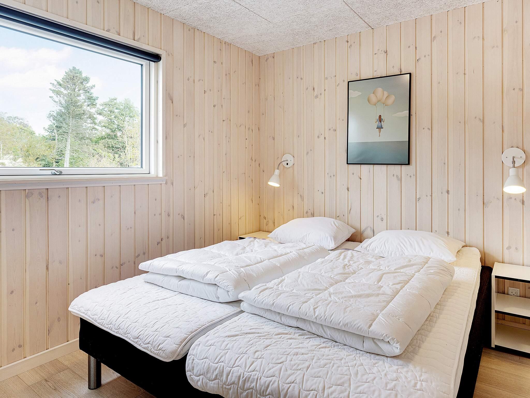 Sommerhuset har syv gode soveværelser fordelt i begge ender af huset. Hemsen har fire senge, som børnene helt sikkert vil elske. I alt har sommerhuset tre badeværelser.