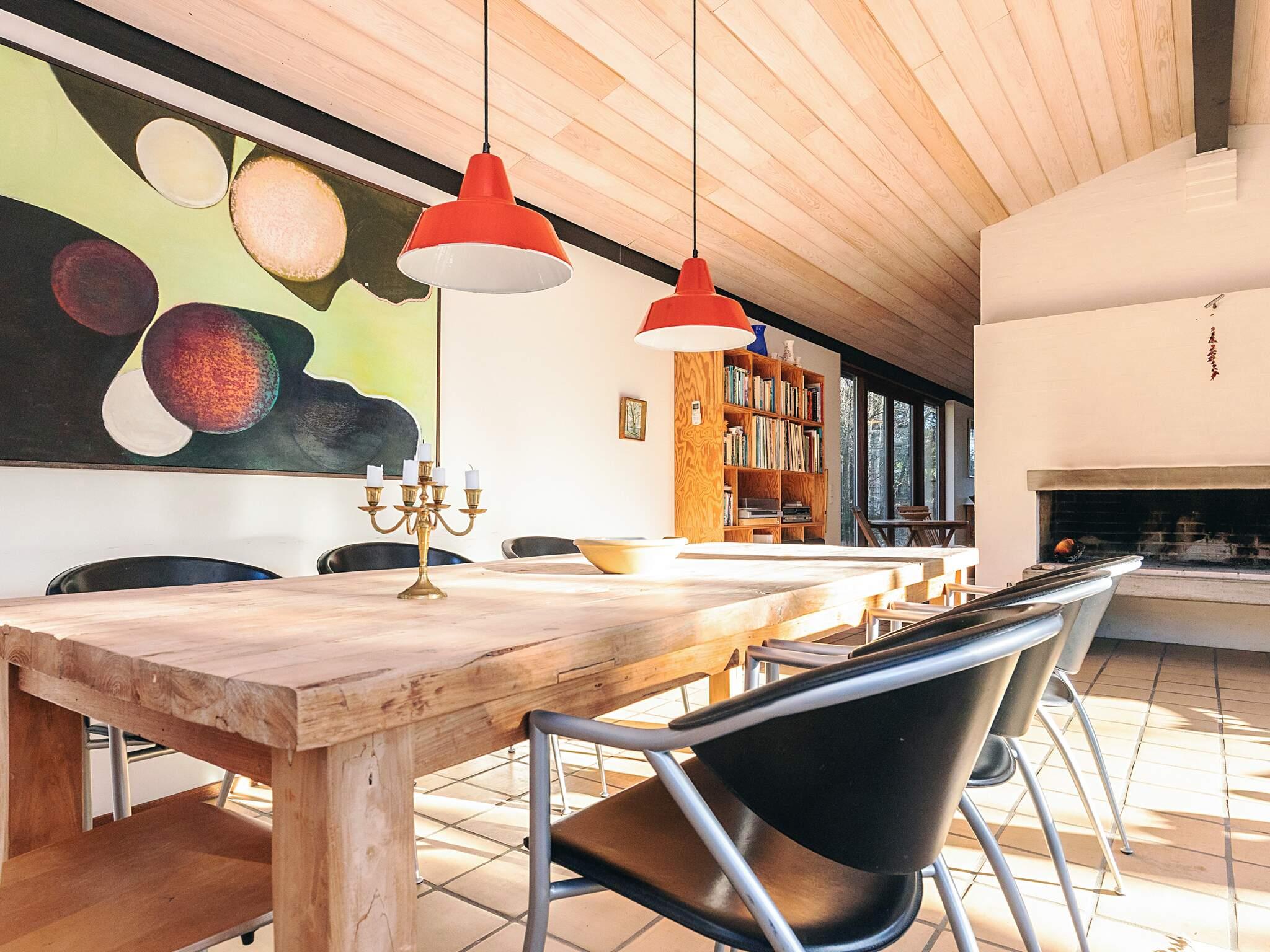 Den store, lyse stue er hjertet i sommerhuset. De store vinduespartier skaber et smukt lysindfald og inviterer naturen indenfor. Midt i rummet er en imponerende pejs, som sørger for hygge på kølige aftener. Køkkenet er fuldt udstyret med alt hvad du behøver for at tilberede lækre måltider.