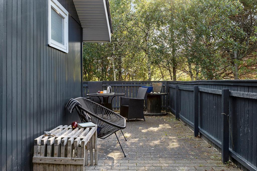 Sommerhusets store terrasseområder indbyder til at bruge mange timer under åben himmel. Der er god plads til både morgenkaffe i solens første stråler, frokost i det fri og lange sommeraftener med grill og hyggesnak. Terrassen er omkranset af den smukke naturgrund, der giver en fredelig og ugeneret stemning – perfekt til både afslapning og leg. Her kan børnene boltre sig frit, mens de voksne nyder roen og fuglesangen. Skovens dufte og lyde skaber en særlig feriestemning, der gør det nemt at koble helt af fra hverdagens travlhed. Og med husets beliggenhed midt i naturen, kan du altid finde en stille krog, hvor du bare kan være til stede i nuet.