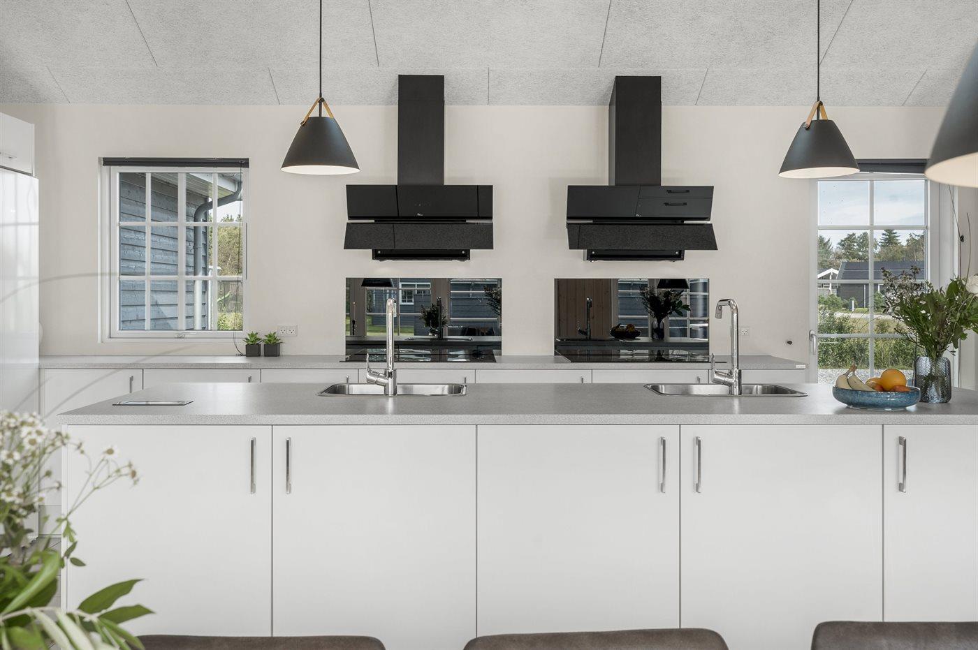 I det veludstyrede køkken findes der selvfølgelig både 2 opvaskemaskiner, 2 ovne, 2 køkkenvaske og 2 køleskabe. Madlavning til mange mennesker skal både være nemt og sjovt – det er der faciliteter til her. Køkkenet ligger i åben forbindelse med det lyse opholdsrum og stuen, hvor der også findes en brændeovn, som sørger for hygge på kølige dage.