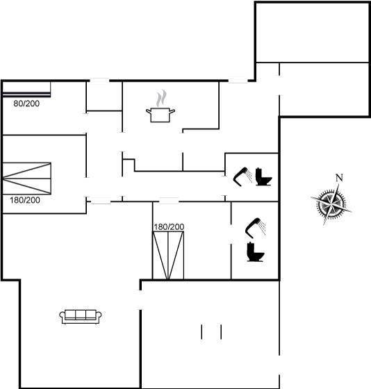 Der er 2 badeværelser med bruseniche og 2 toiletter. Der er gulvvarme på 2 badeværelser.