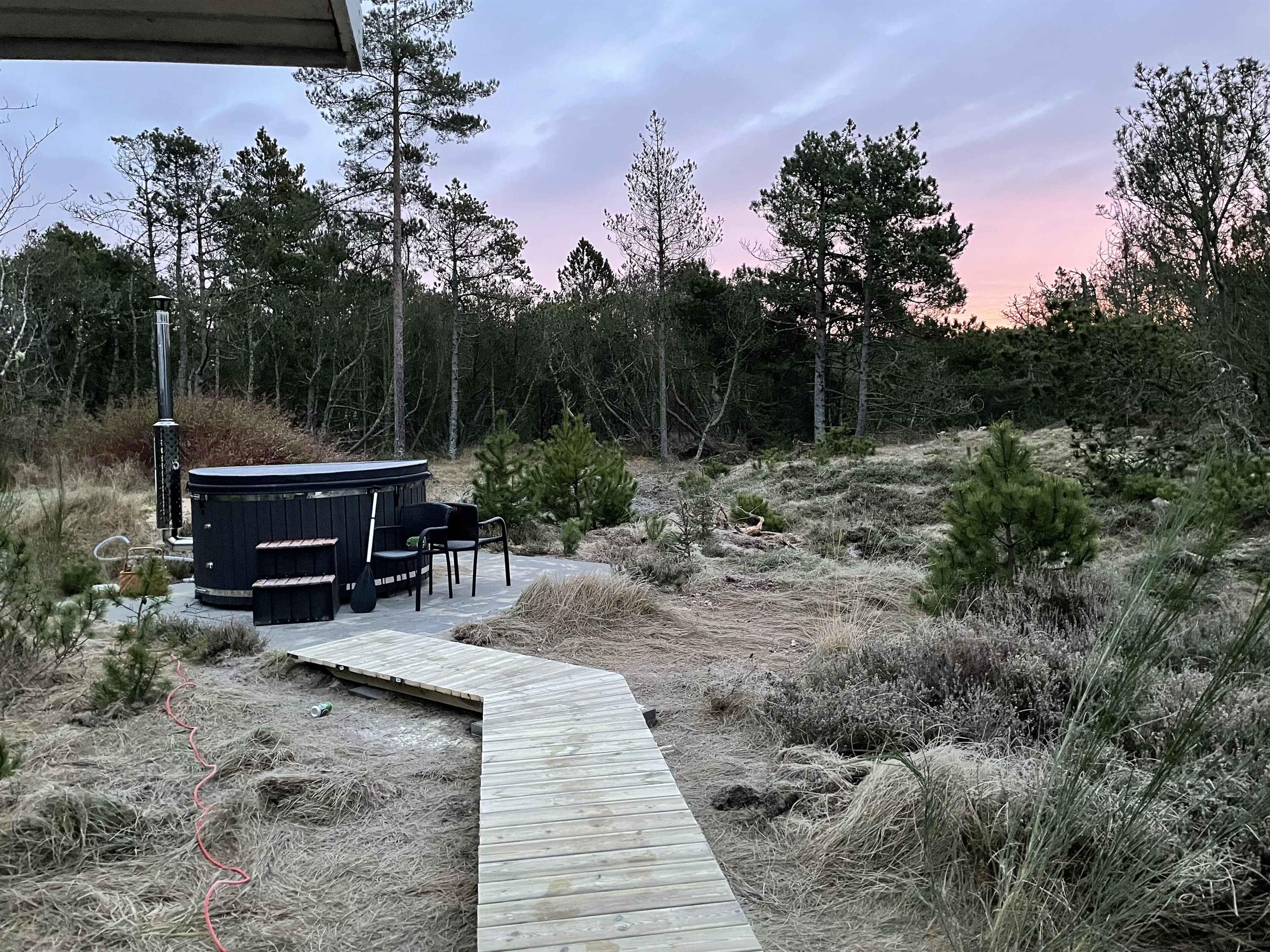Velkommen til dette charmerende træhus, der ligger på en 8000 m2 stor naturgrund for enden af en lukket vej med god afstand til naboerne. Huset er 60 m2 og nyrenoveret med smagfuld indretning og nyere møbler. Huset har tre soveværelser og fem sovepladser, ideelt til en familieferie. . De store vinduespartier giver et fantastisk lysindfald og en vidunderlig udsigt over grunden. Den store terrasse indbyder til afslapning hele dagen med mulighed for sol og flere lækroge. Her kan I nyde måltider udendørs og føle jer midt i naturen. Området omkring sommerhuset byder på en række fantastiske ferieoplevelser. Vesterhavet er kun 4 km fra huset, og til Kattegat er der kun 3 km. Råbjerg Mile kan nås på 5 km på cykel, en unik naturoplevelse for hele familien. Skagen ligger kun 20 minutter væk i bil, hvor I kan opleve det specielle lys og den charmerende by. Nordsøen Oceanarium er 25 minutter væk, perfekt for en dagstur med spændende indblik i livet under havoverfladen. Der er også gode muligheder for vandreture og cykelture i den omkringliggende natur. Den store grund inviterer til udendørs aktiviteter og leg for både børn og voksne. Her er der plads til boldspil, solbadning og afslapning i naturskønne omgivelser. Der kommer også ofte besøg af rådyr på grunden. Dette sommerhus tilbyder alt, hvad I behøver for en afslappende og mindeværdig ferie. Book jeres ophold nu og oplev alt, hvad dette skønne område har at byde på. Obs, udlejes ikke til erhversmæssigt brug.
