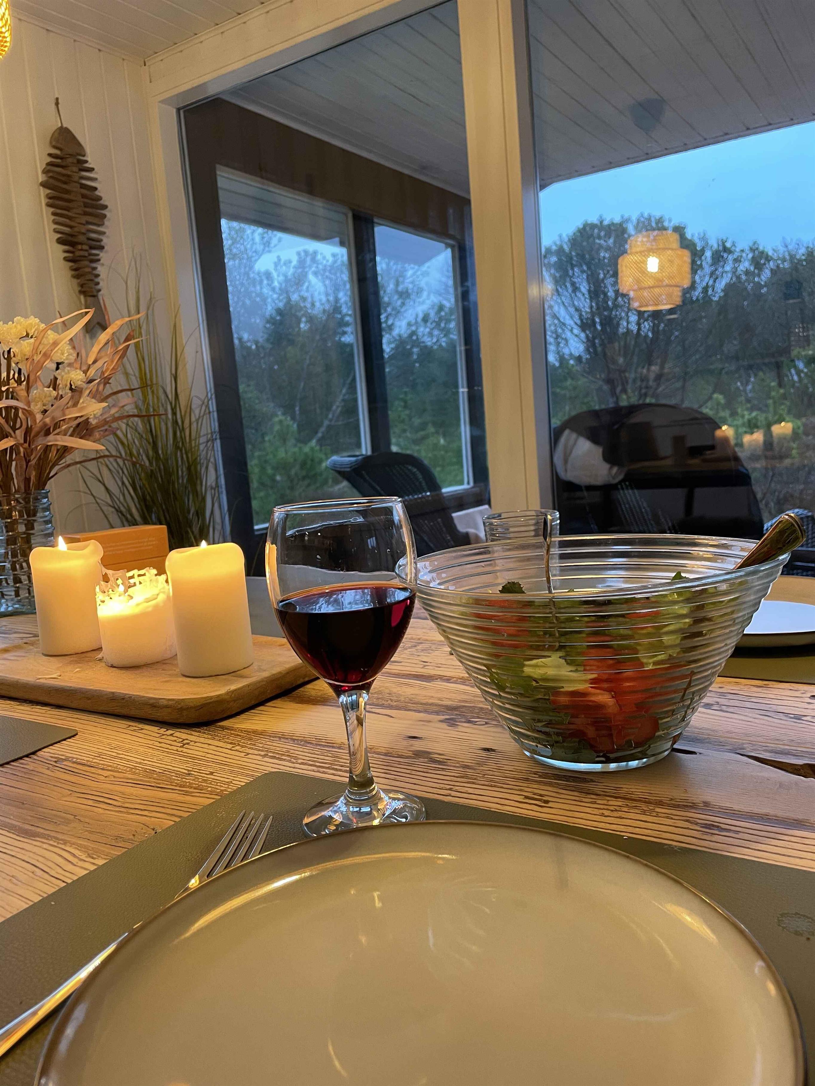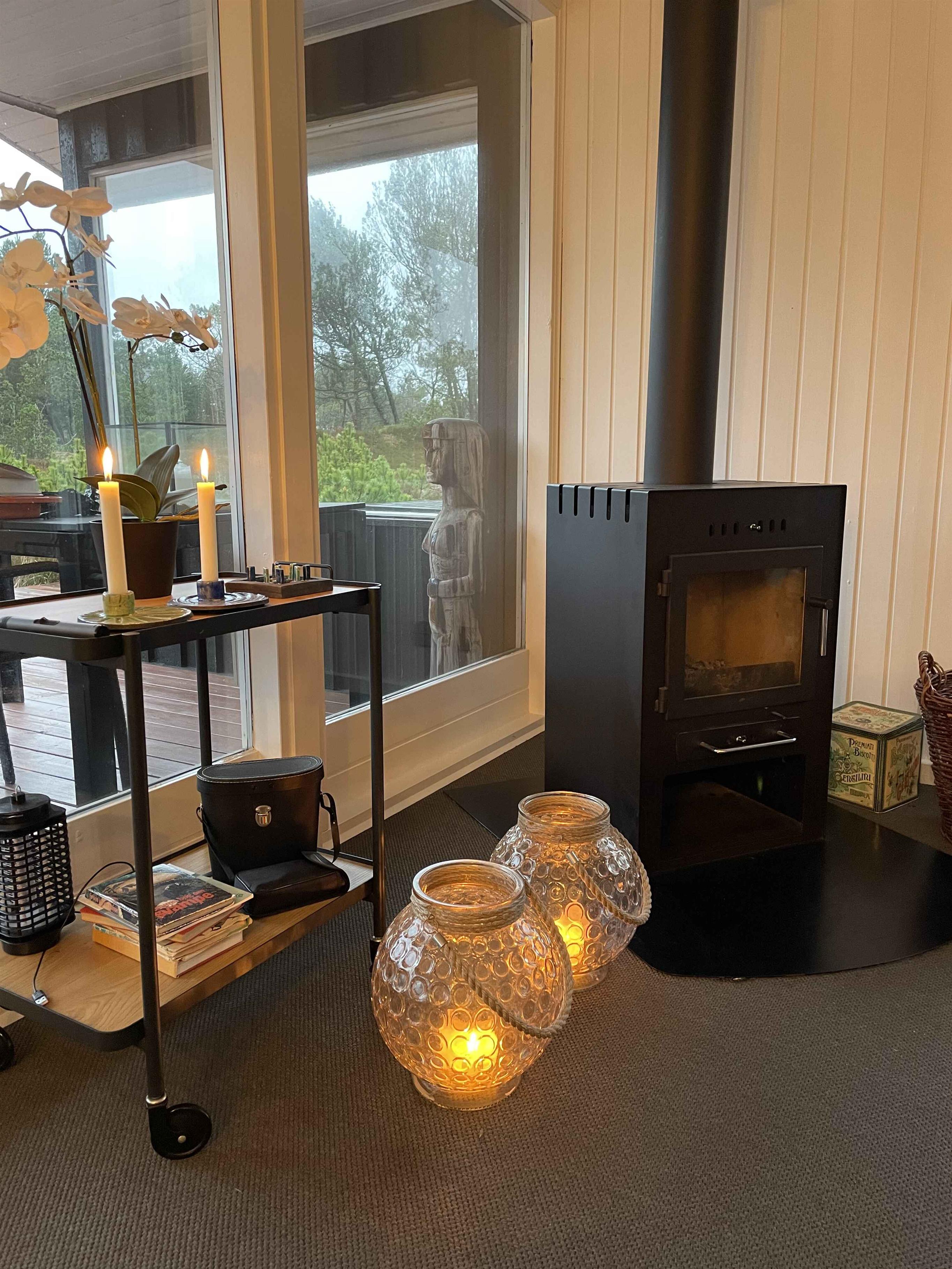 Skønt træhus med enestående udsigt til naturen. Se rådyrene gå rundt på grunden imens du sidder og nyder morgenkaffen, en øl på terrassen eller slikker sol på den ugenerte grund. 4 km til Vesterhavet og til Kattegat er der kun 3 km. LIVSNYDERGARANTI