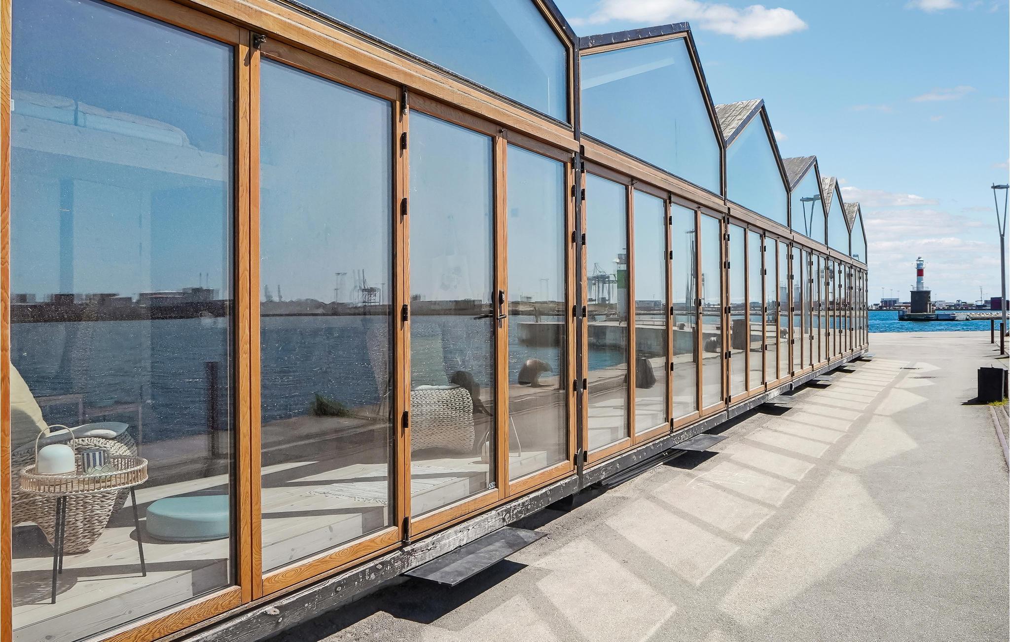 Tilbring jeres parferie på en førsteklasses beliggenhed ved vandet i denne kompakte og komfortable lejlighed. Den unikke lejlighed med vinduer fra loft til gulv er udstyret med alt, hvad I behøver til en varieret ferie. Her kan I nyde den flotteste udsigt fra stuen og hemsen. Når solen skinner, kan I åbne hele vinduespartiet ved hjælp af skydedøren og sætte jer udenfor med morgenkaffen.