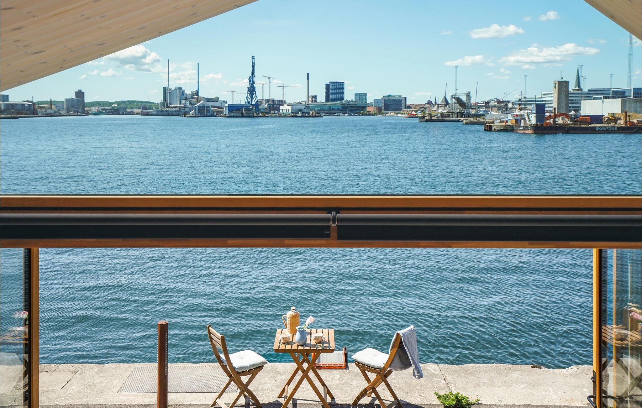 Velkommen til denne moderne studiolejlighed med en storslået panoramaudsigt over vandet i Aarhus Ø.