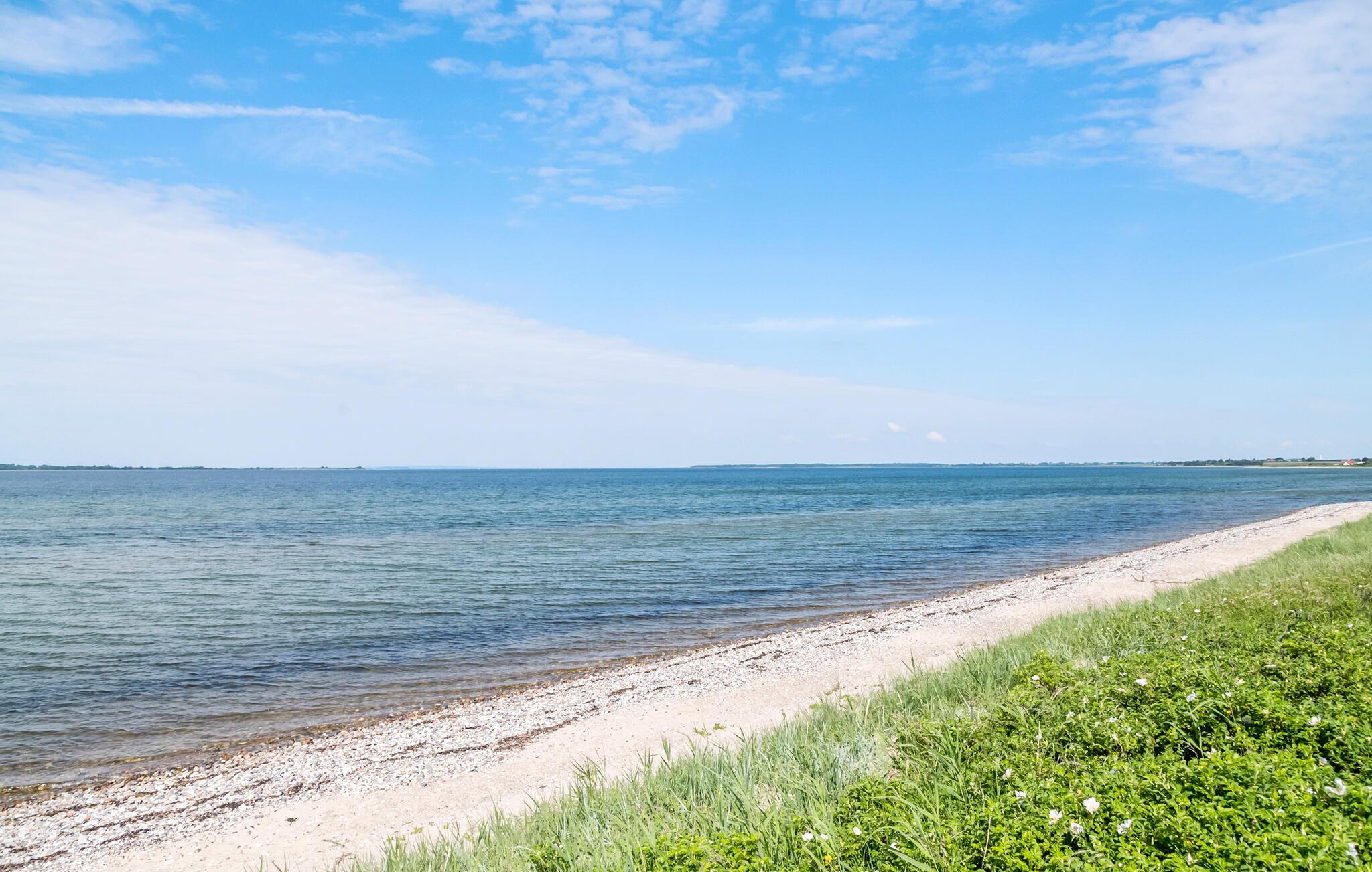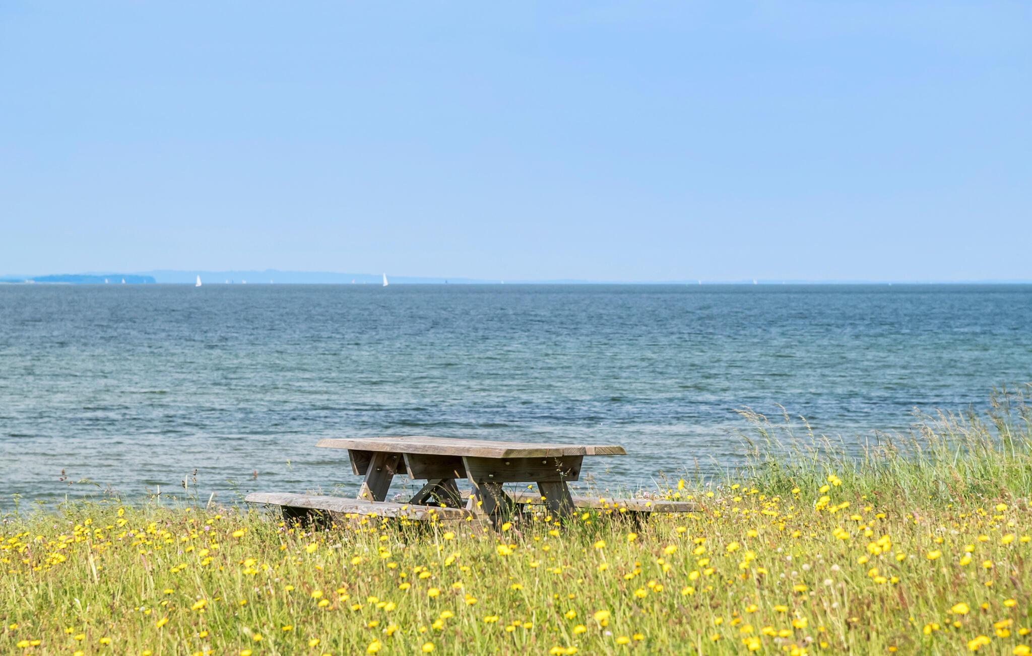 På de varme dage kan I nyde solen i fulde drag på den store terrasse med grill og gode møbler til solbadning en masse. Der er god plads for børnene at lege på på den store naturgrund, der går direkte ned til en stille strand med gode mulighed for dukkerter og gåture langs vandet.
